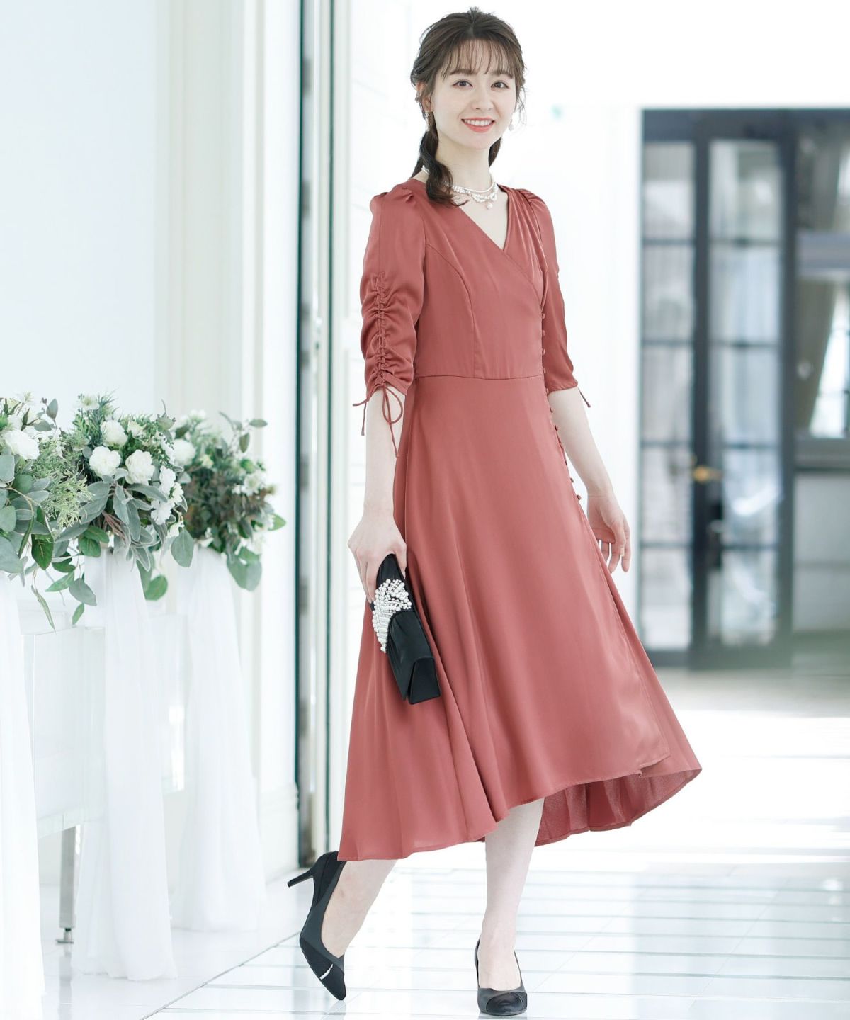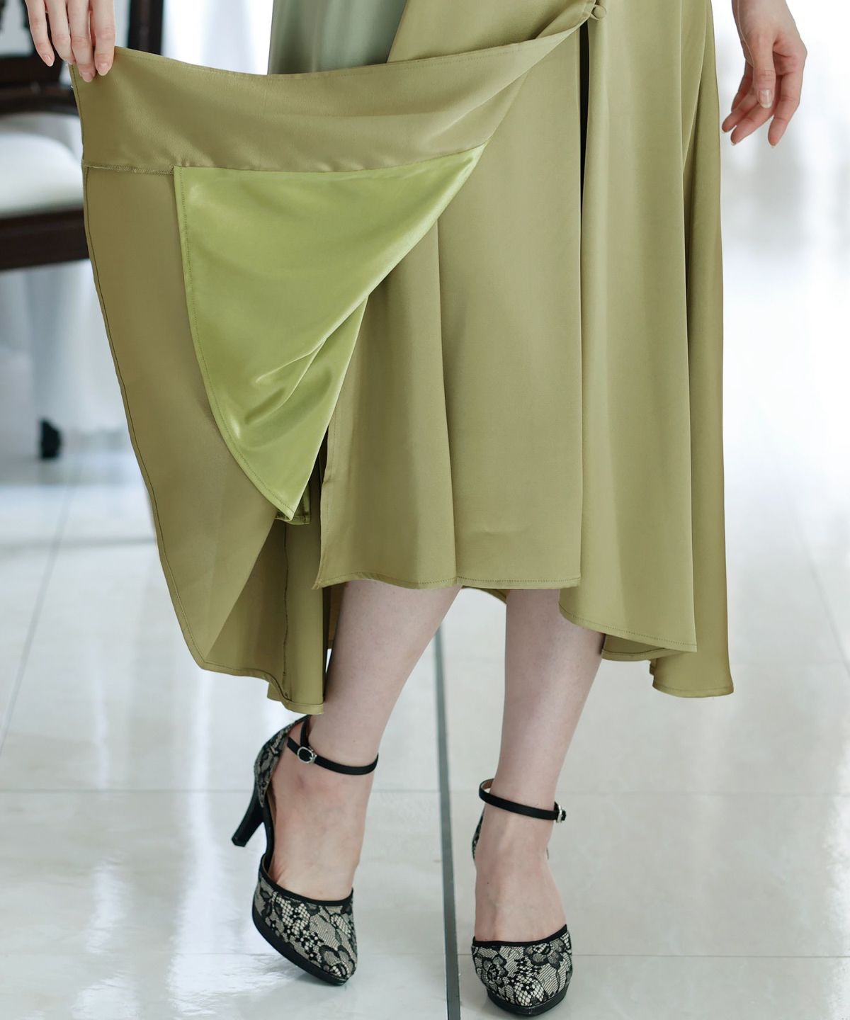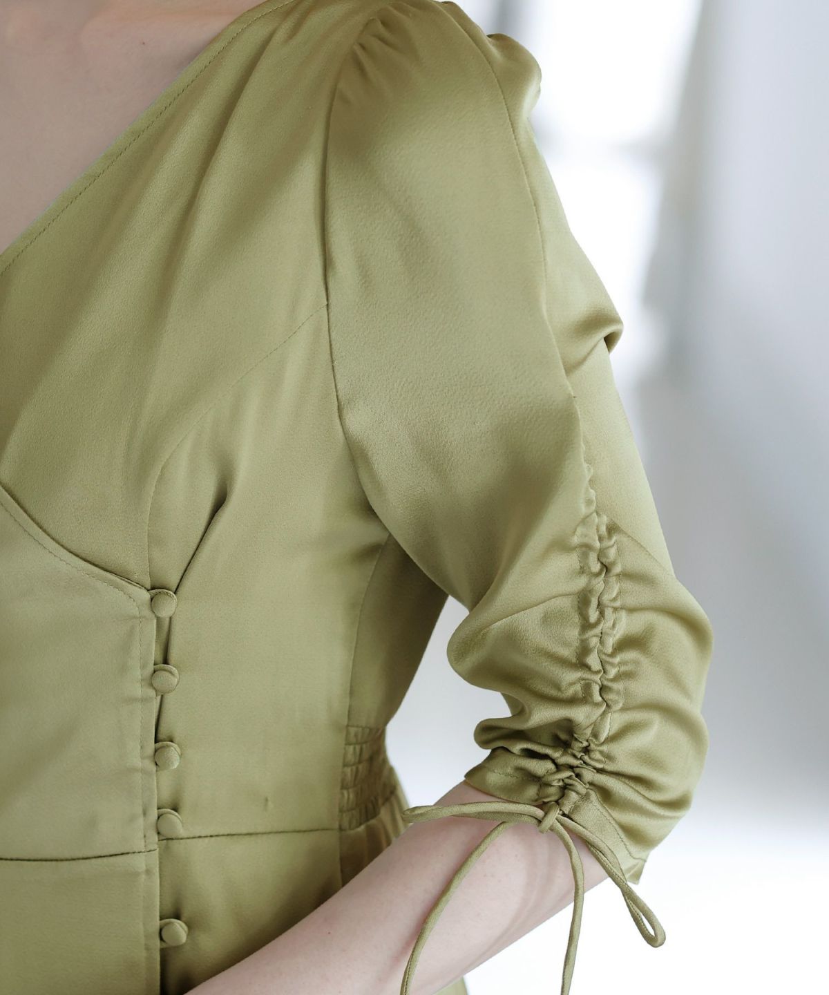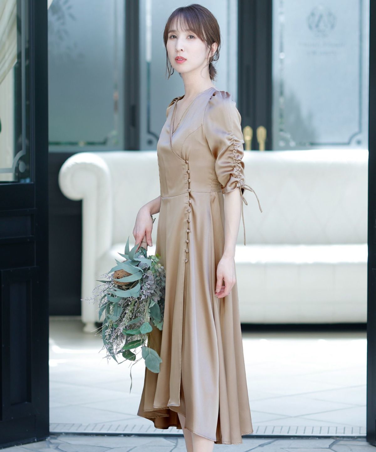 しなやかな落ち感と上品な光沢が魅力のサテンワンピース