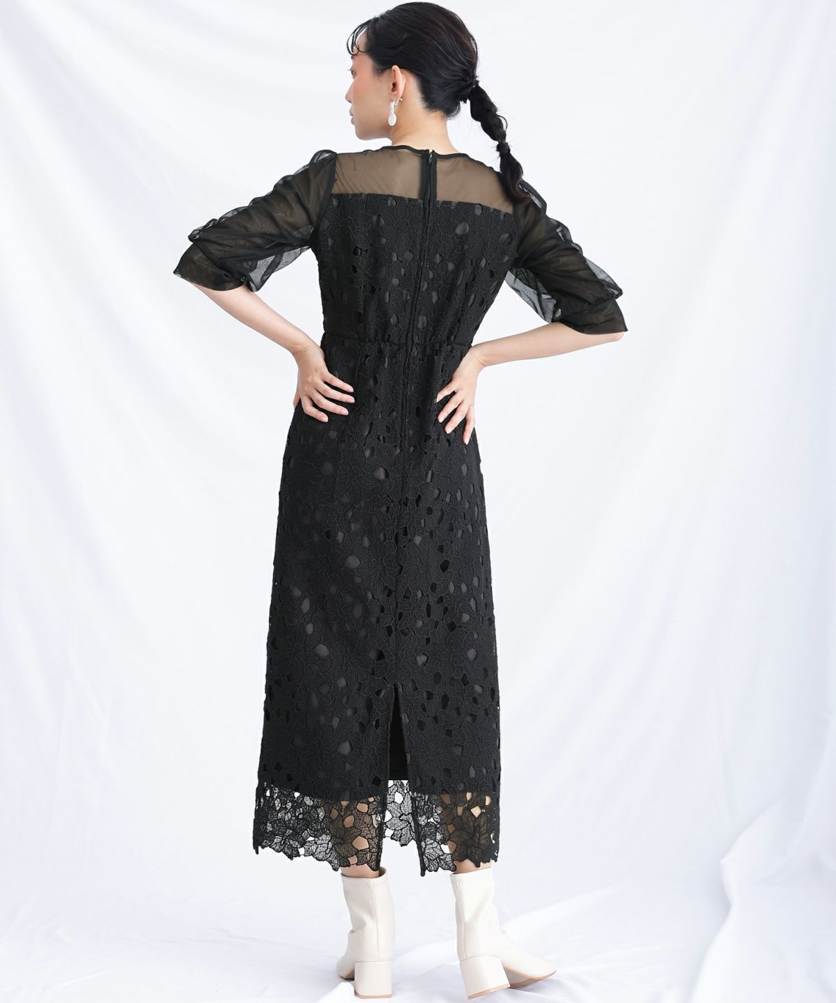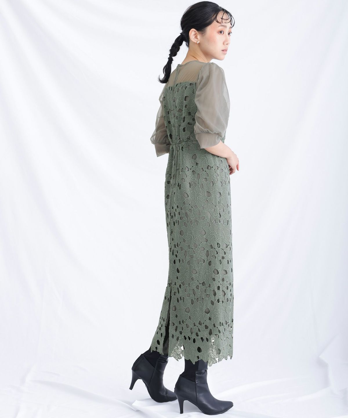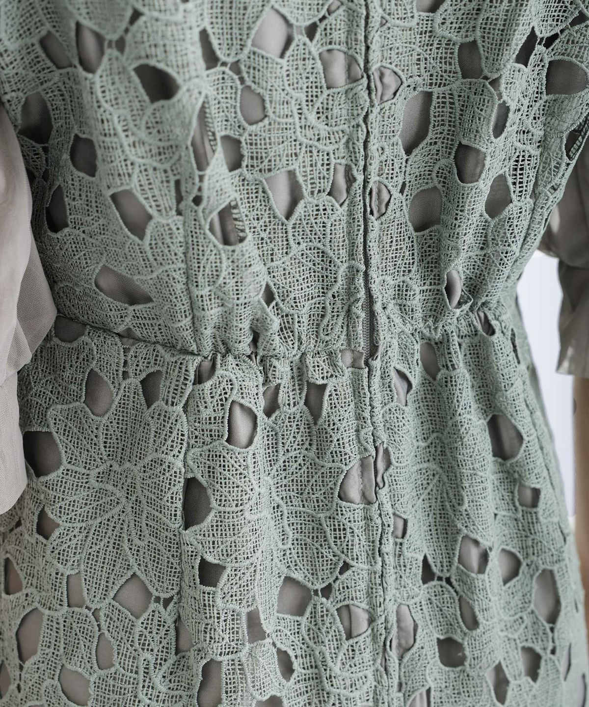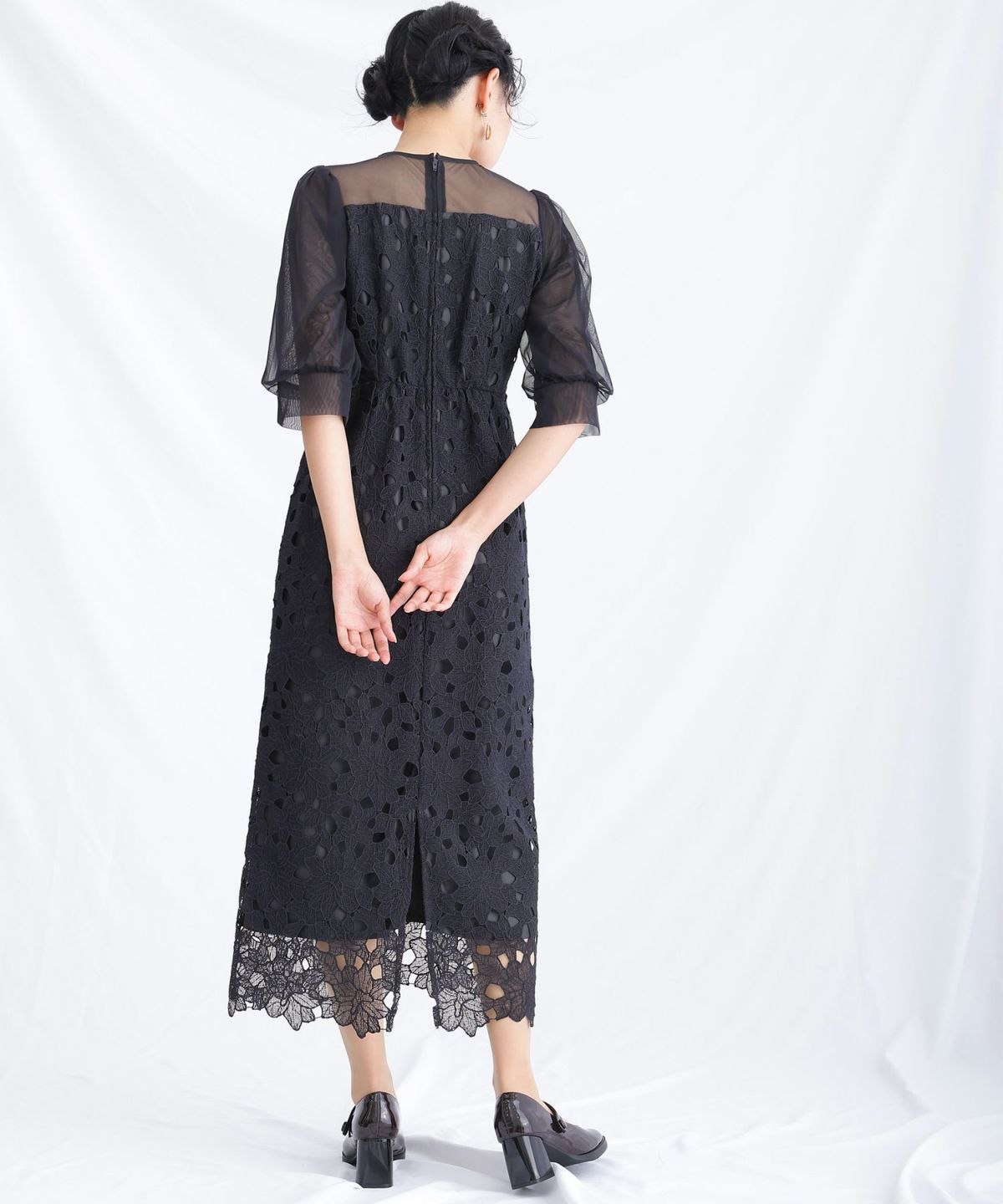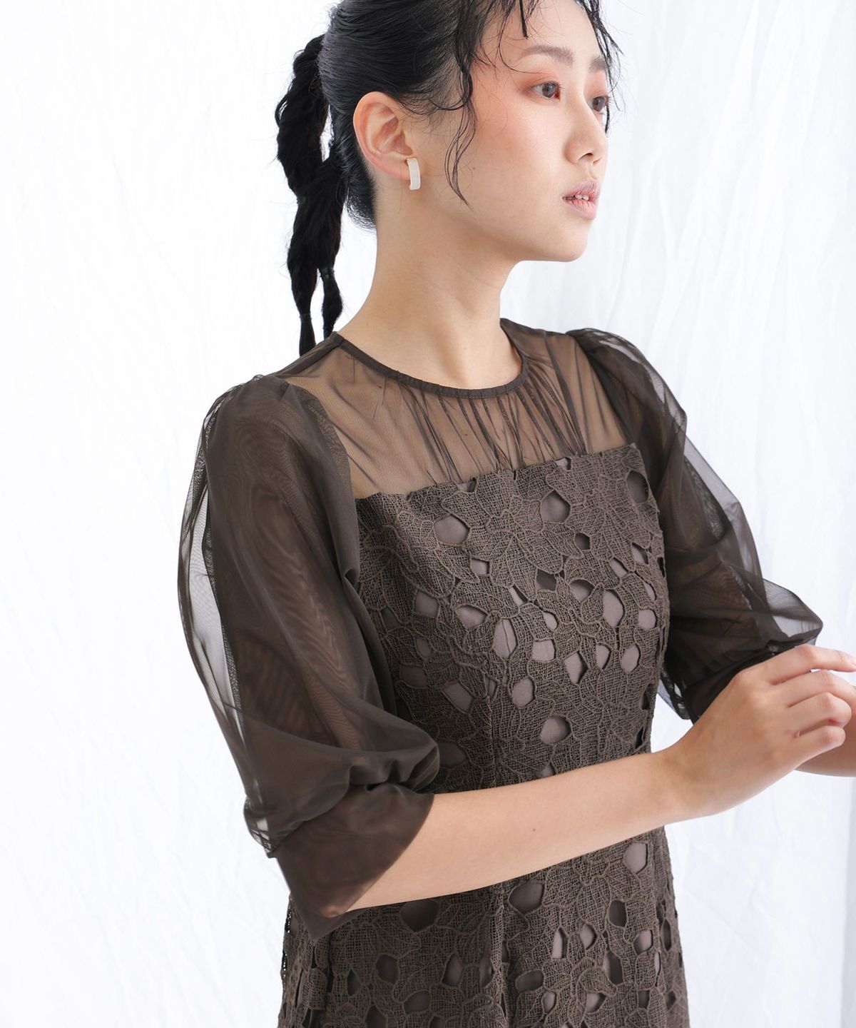 立体感があるケミカルレースとチュールが切り替えがお洒落なワンピース
