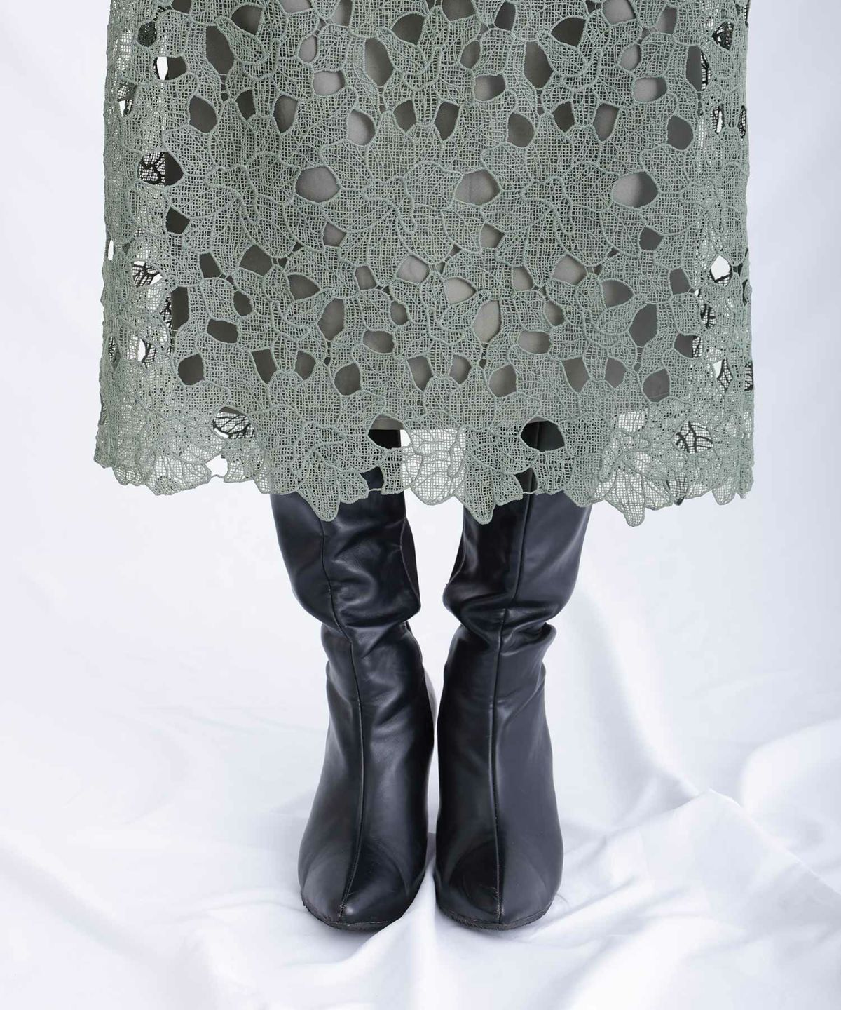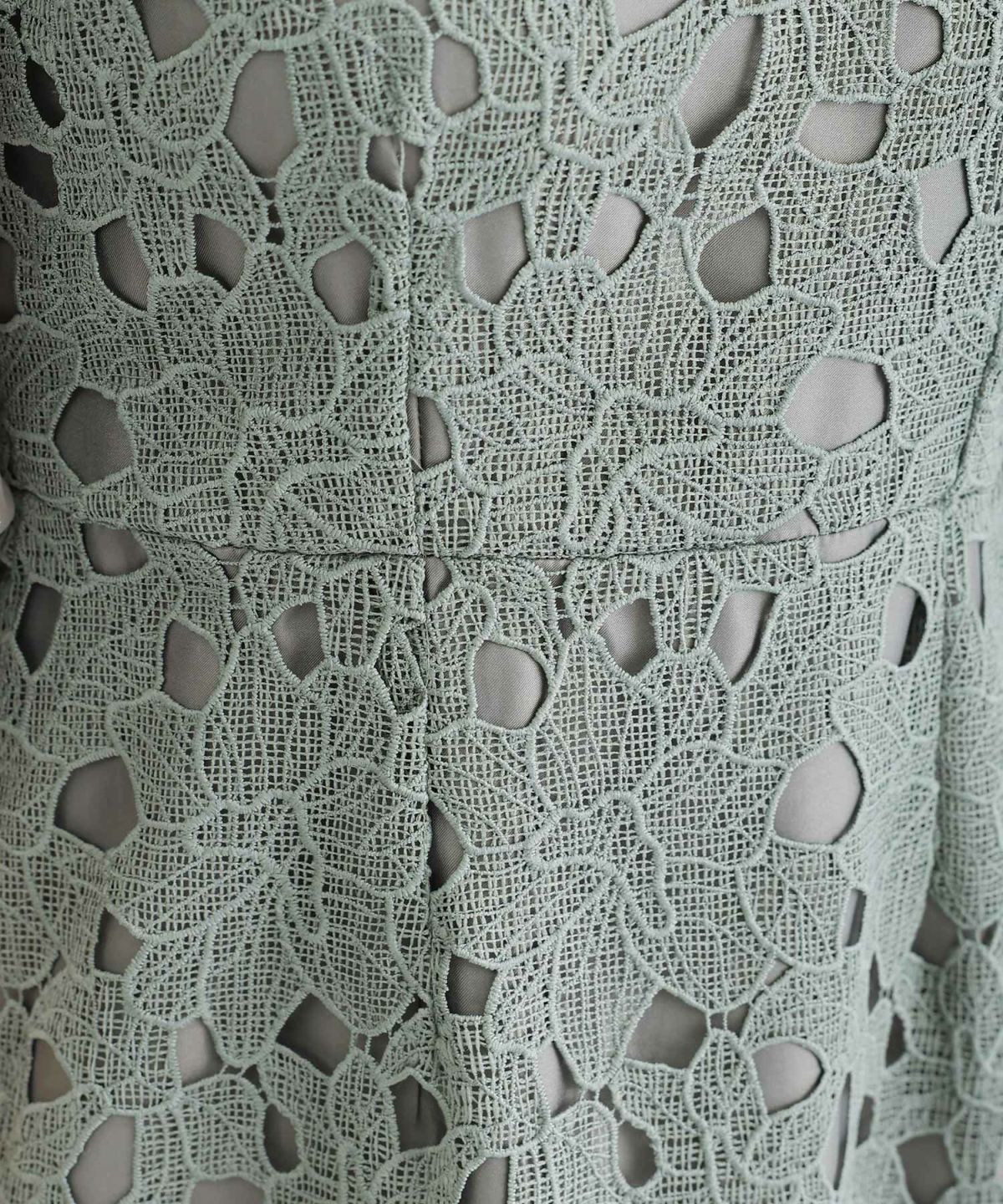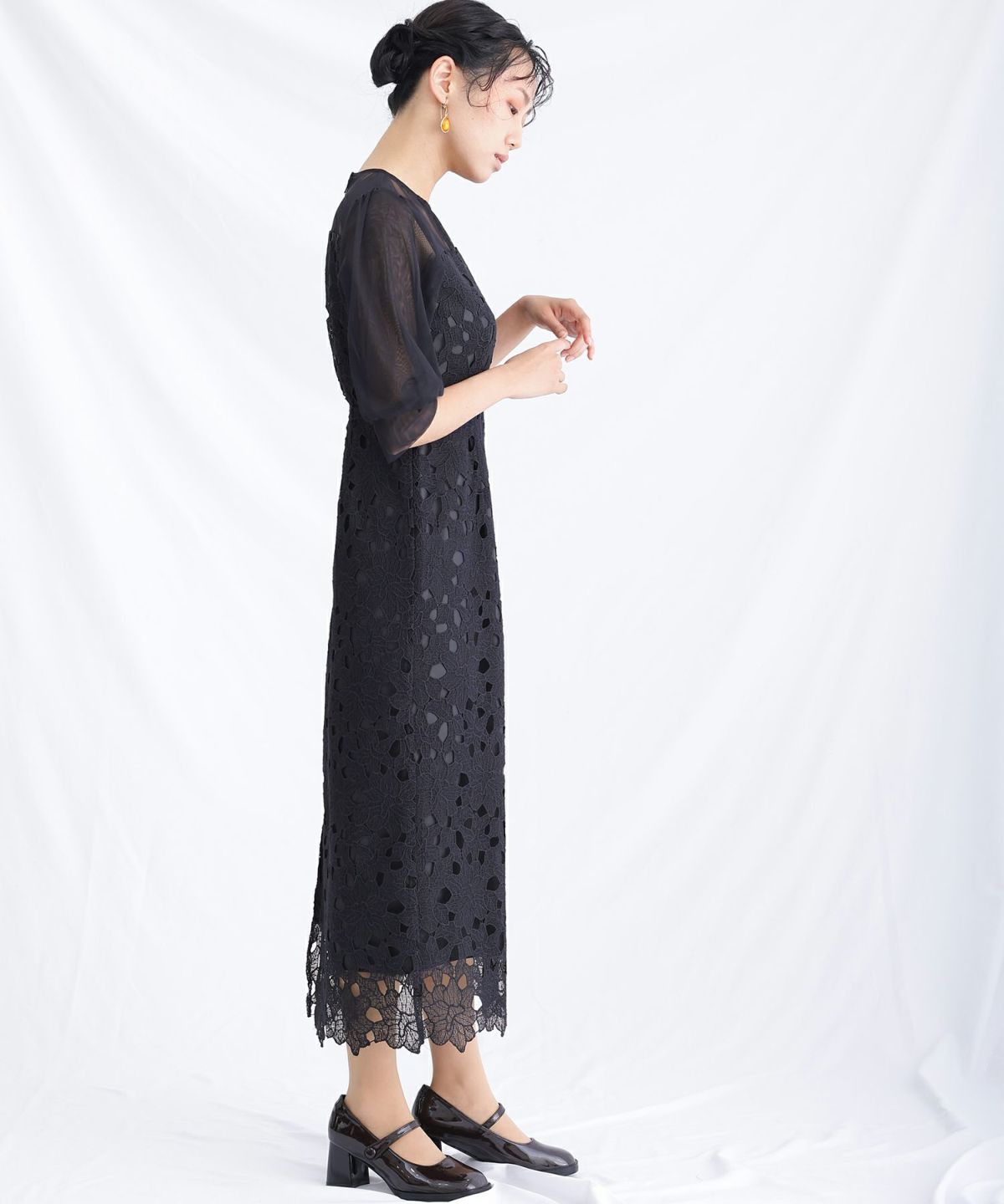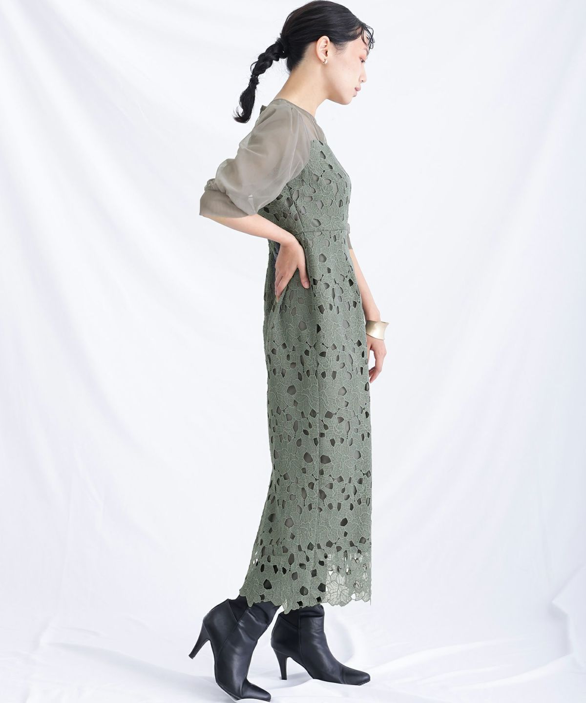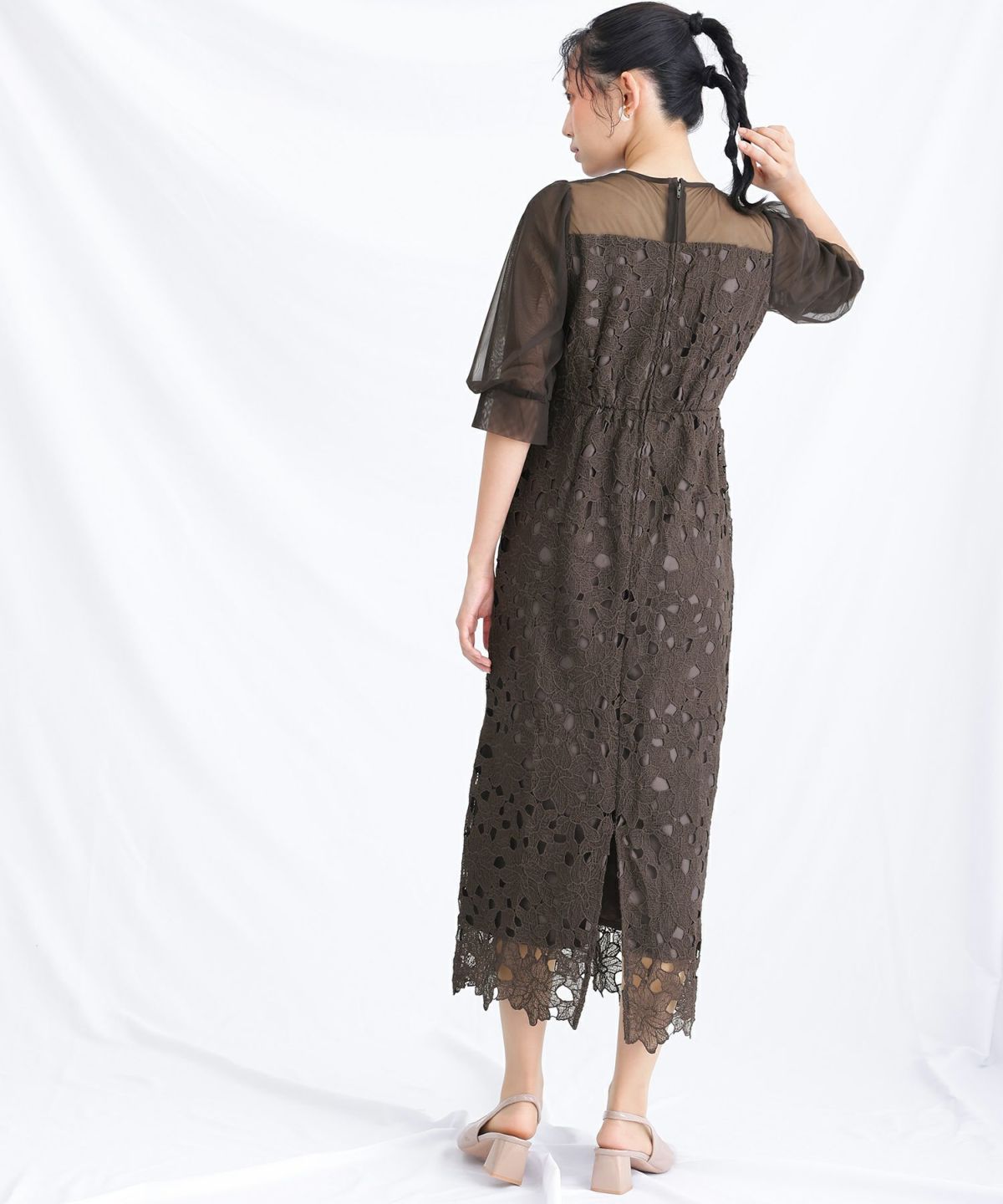 立体感があるケミカルレースとチュールが切り替えがお洒落なワンピース