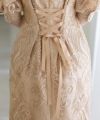グログランリボンを使用したスピンドルでウエスト調節も可能。シルエットの調節ができるので、お好きなサイズで着用できます。