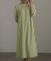 ■体型カバーポイント【二の腕】【脚】【ウエスト】【ヒップ】太めの袖から見える手首が華奢な印象を与えてくれます。ふわっと広がりのあるワンピースが気になるウエストやヒップ、太ももをカバーしてくれます。