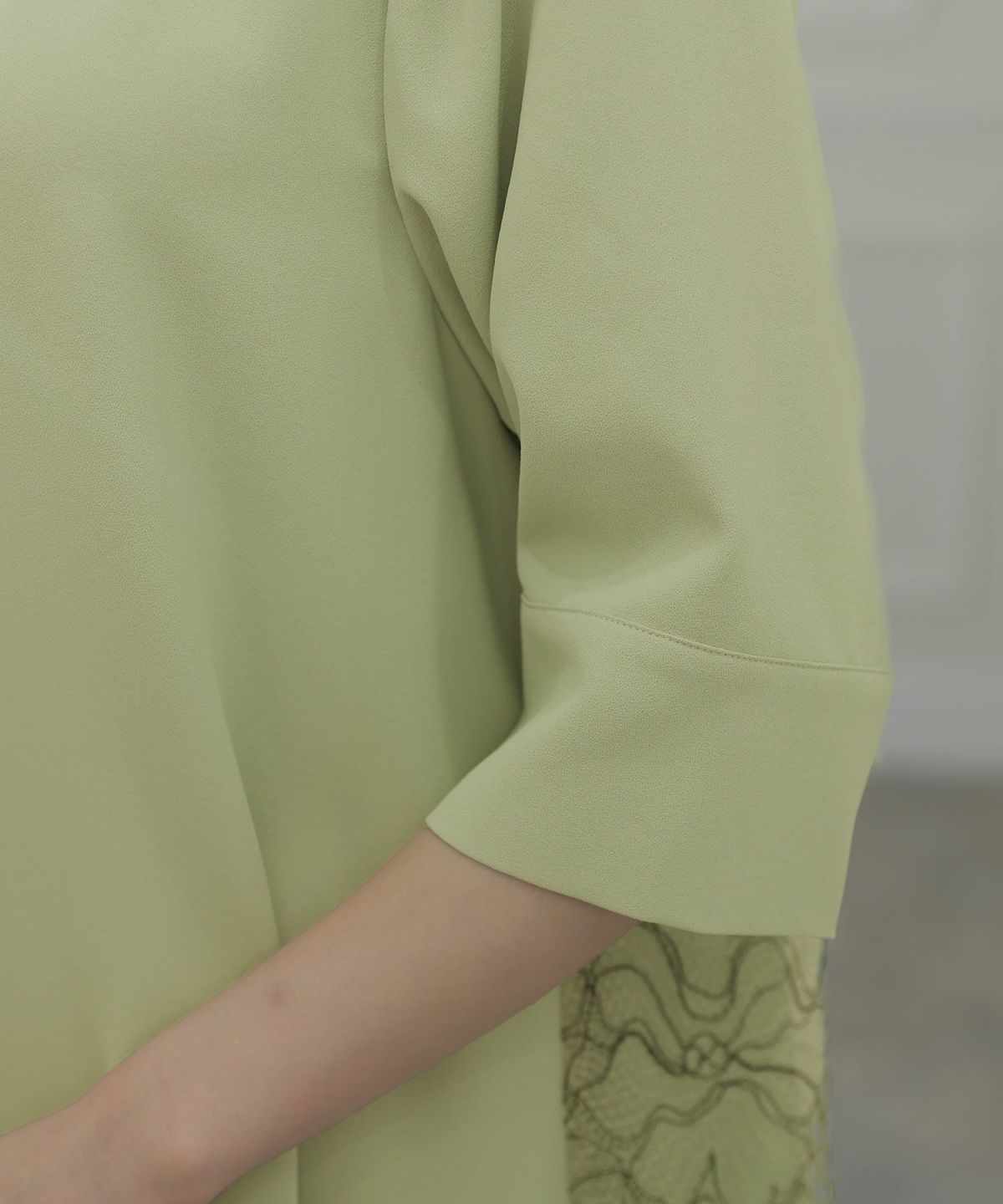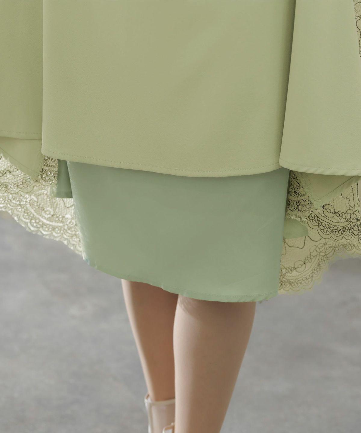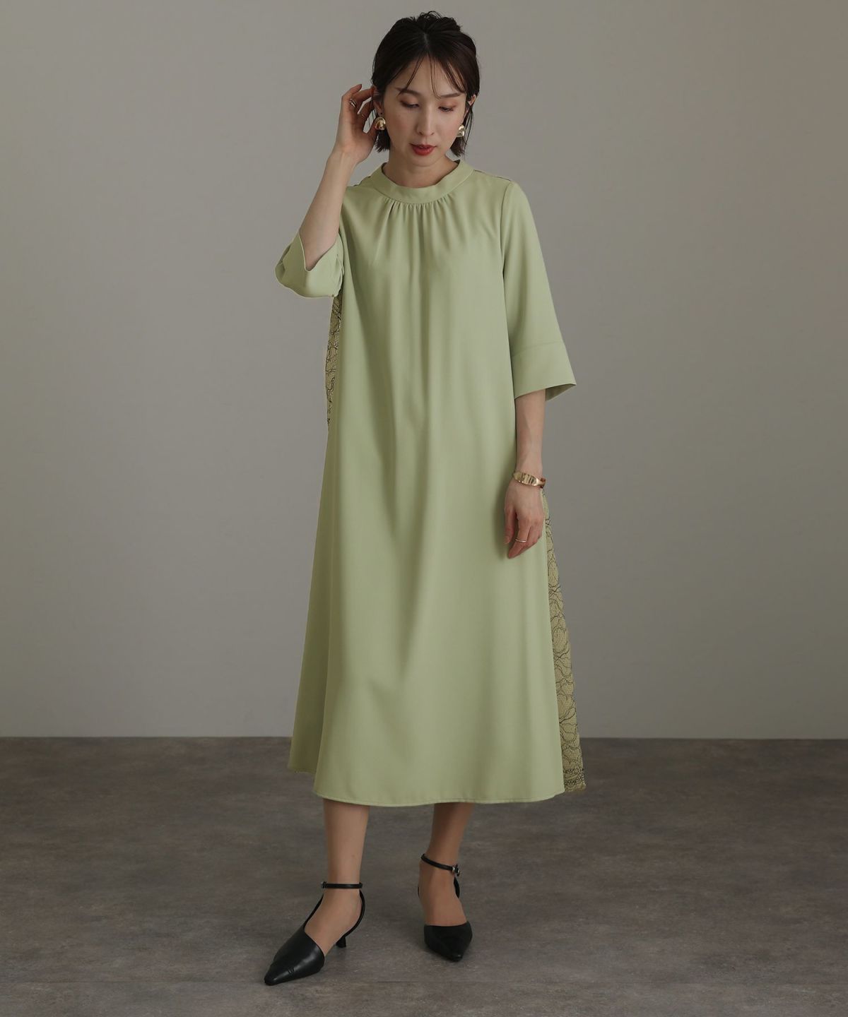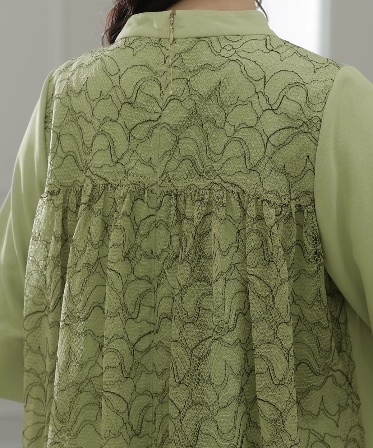 ■背面のレースが上品前から見るとシンプルですが後ろには大胆にレースがあしらわれています。セレモニー・オケージョンから女子会やお食事会などの普段使いまで幅広く対応できます。ワンピースのふんわりとしたシルエットが美しく、袖もしっかりあるので全身体型カバー出来ちゃう!お手持ちのベルトやアウター等でアレンジして楽しめます♪