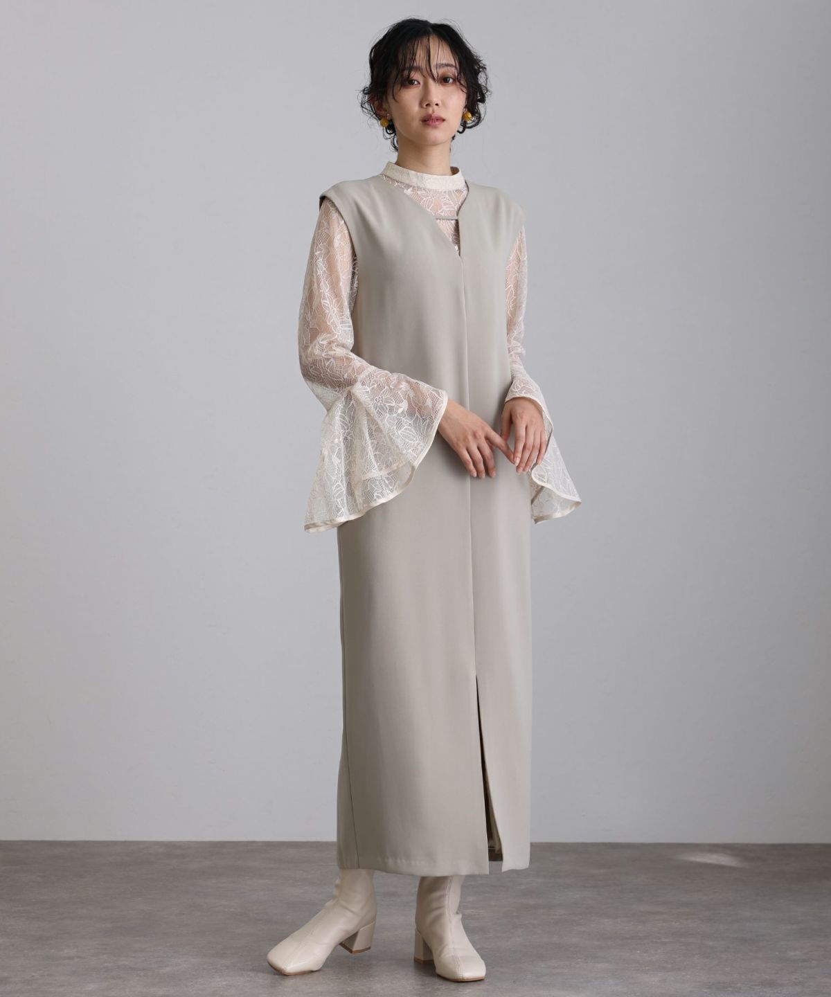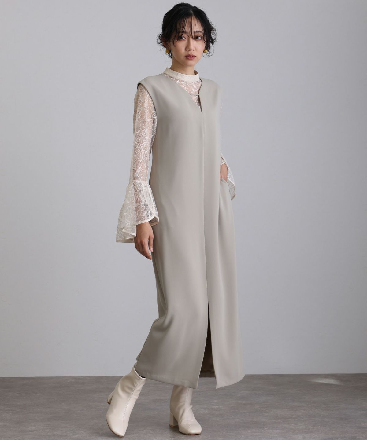 モードな印象のIラインジャンスカセットドレス