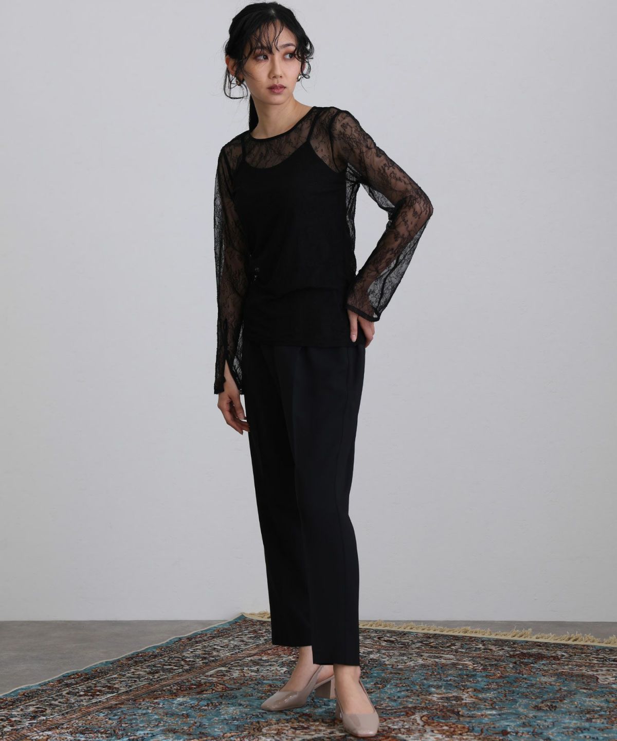 首回りはすっきりとしたラウンドネックでアクセサリーも合わせやすい