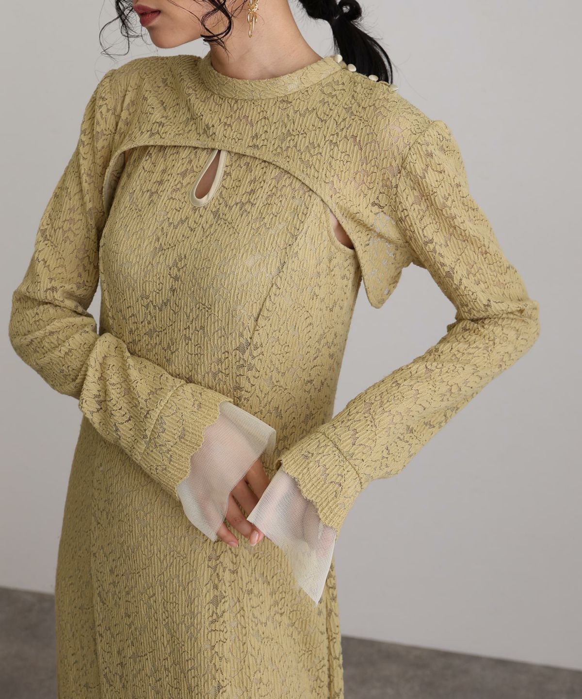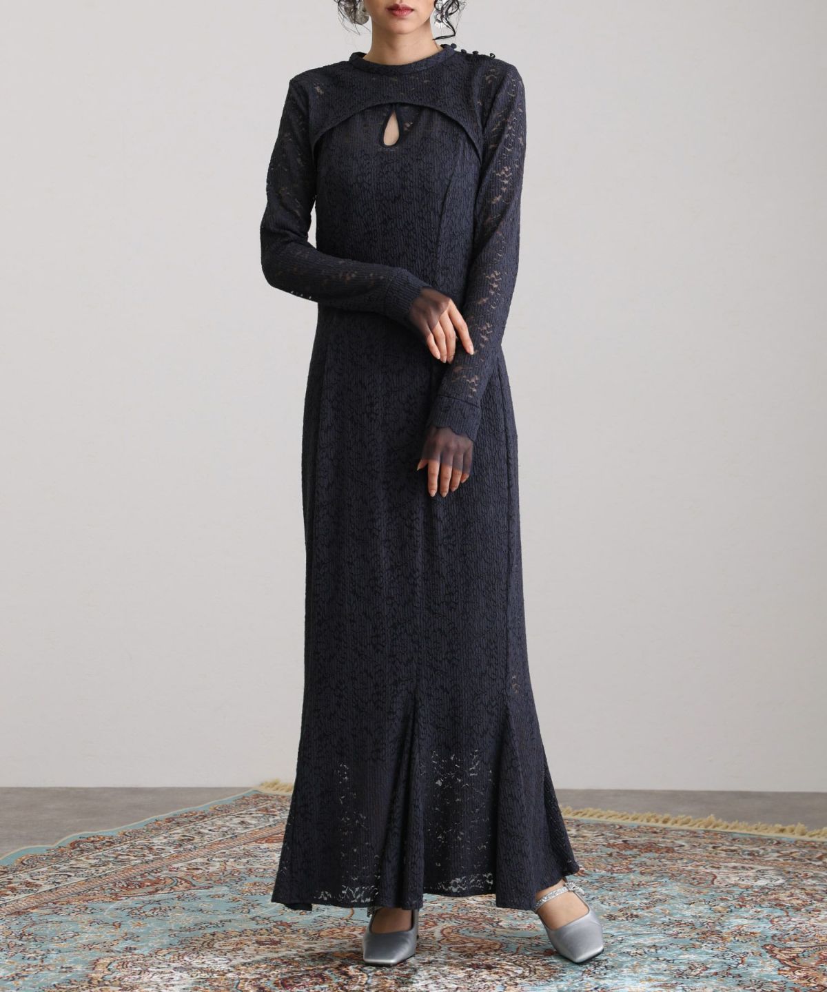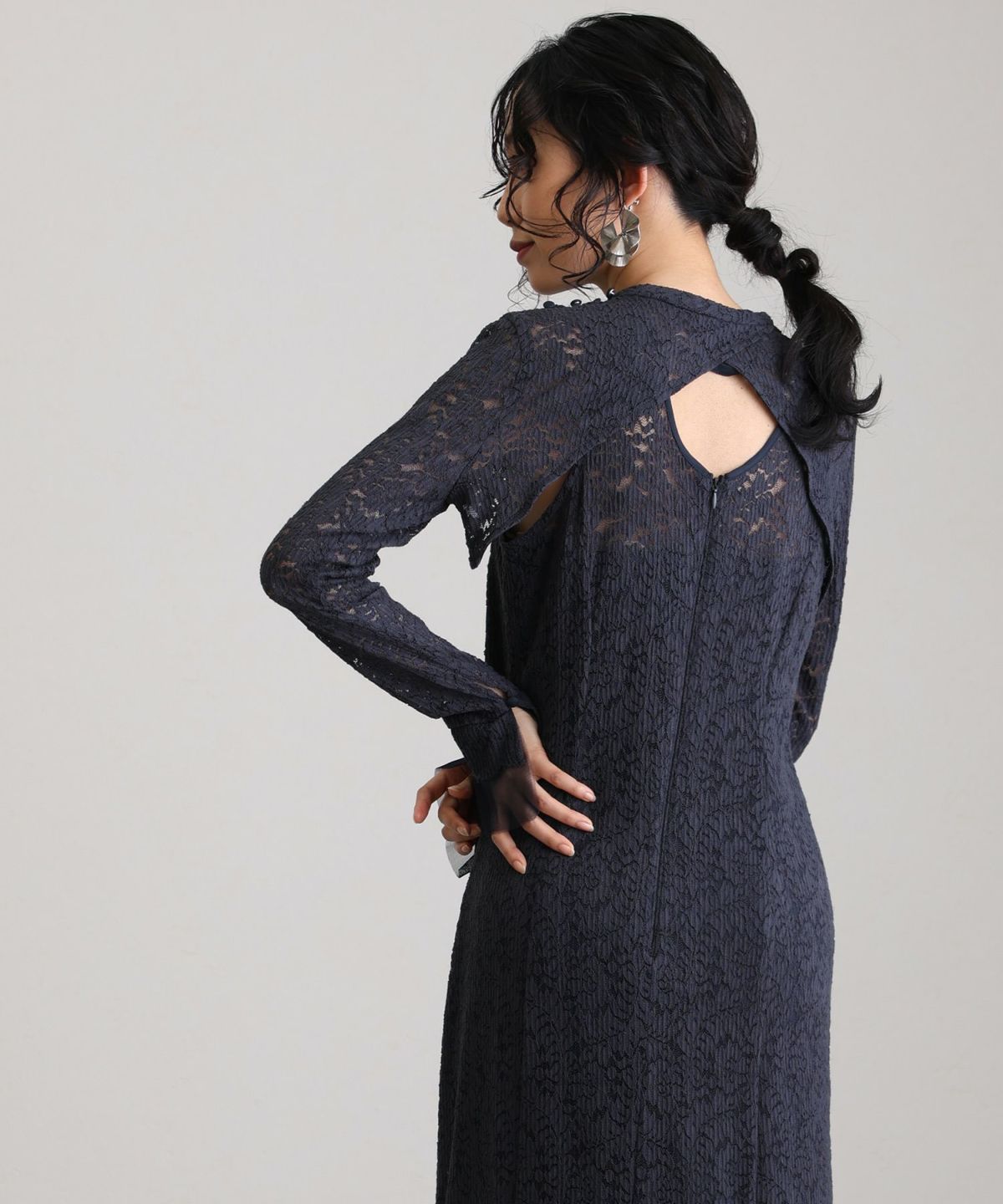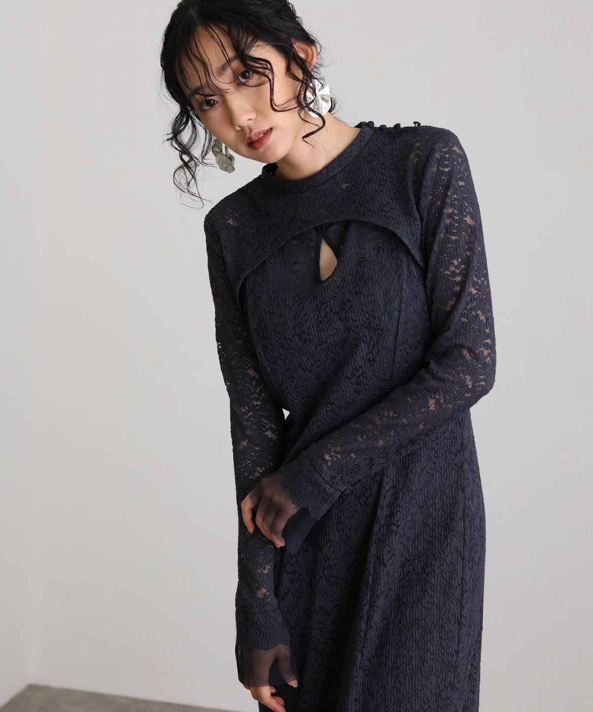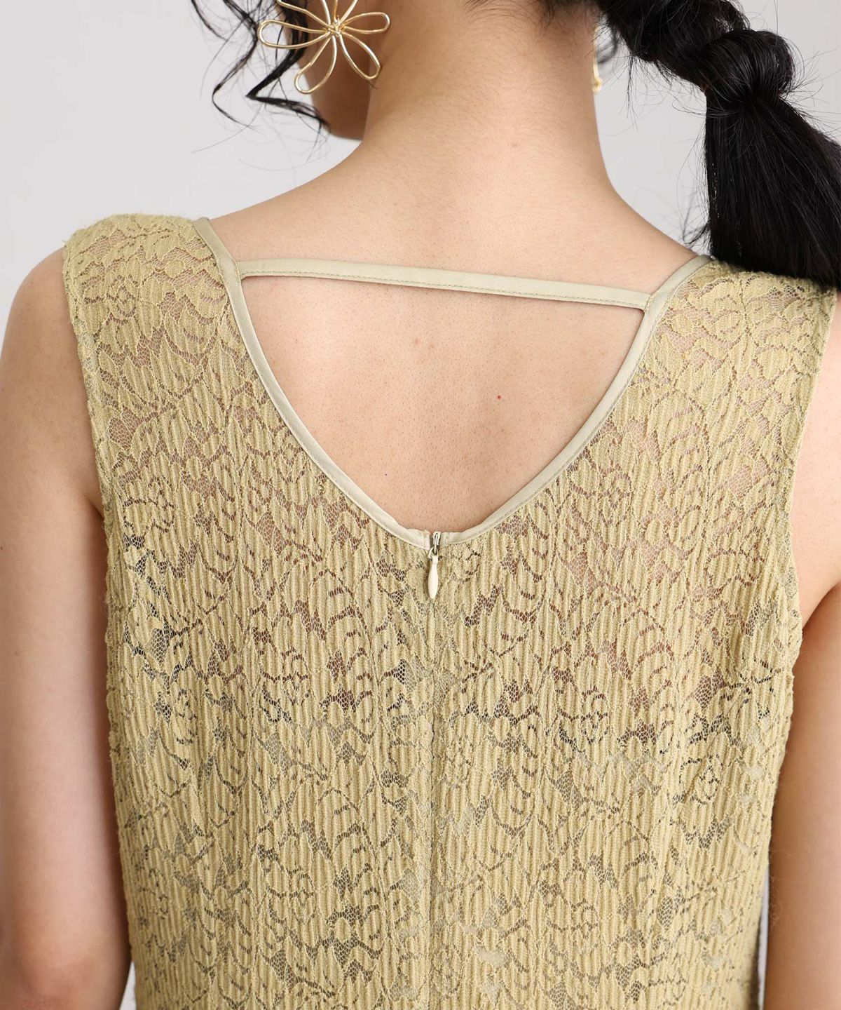 ワンピース裏地にはストレッチのないサテン生地を採用。