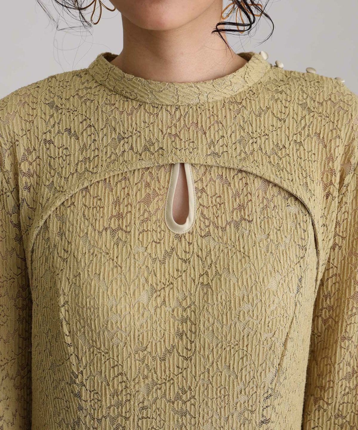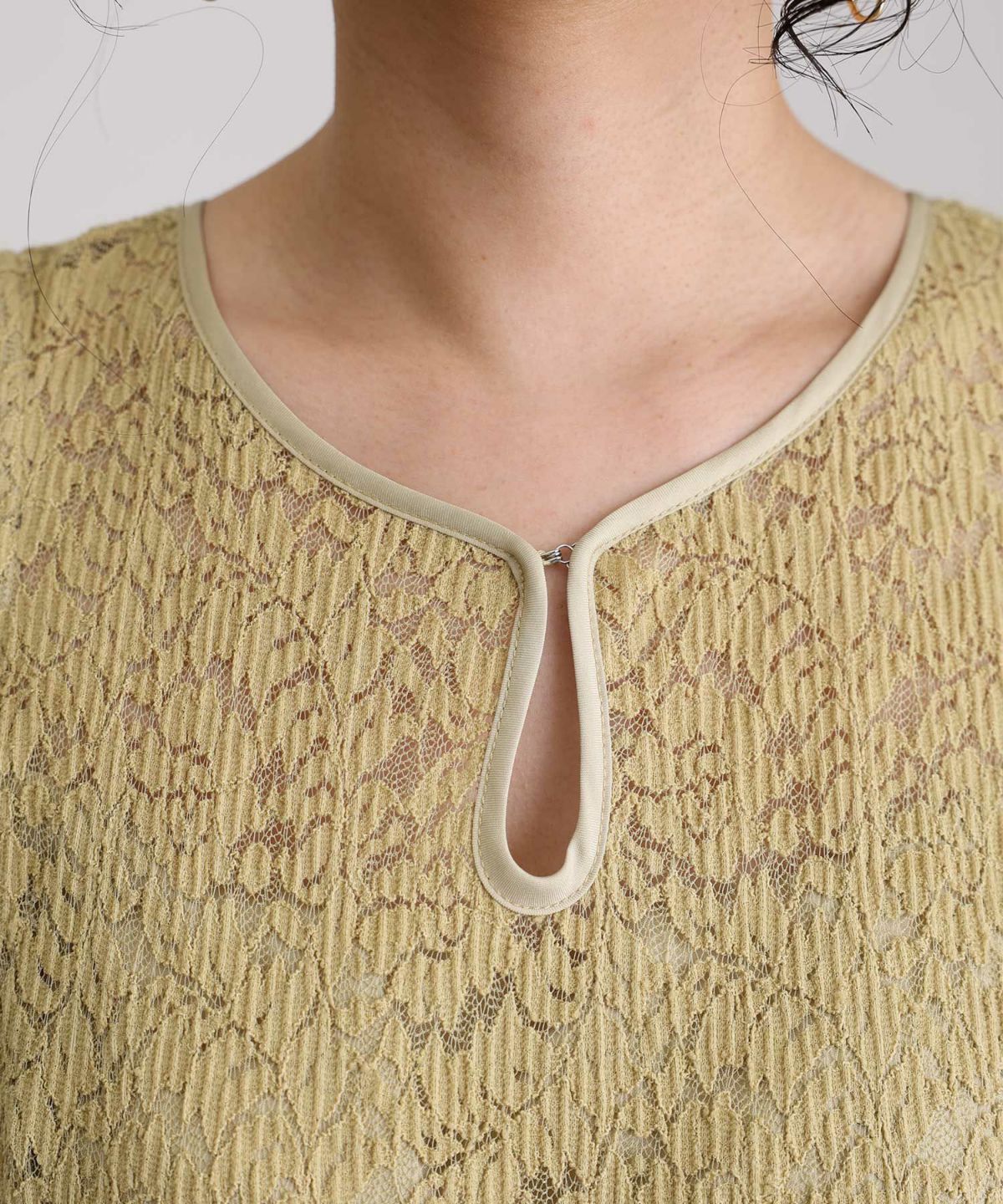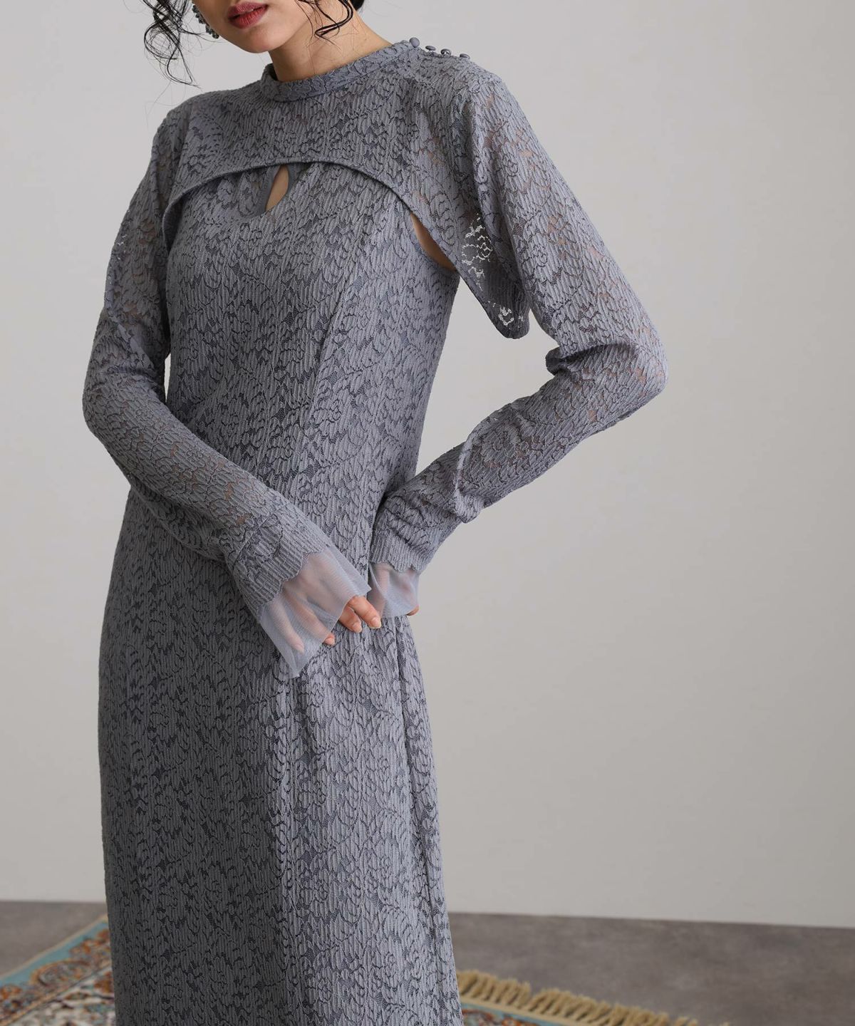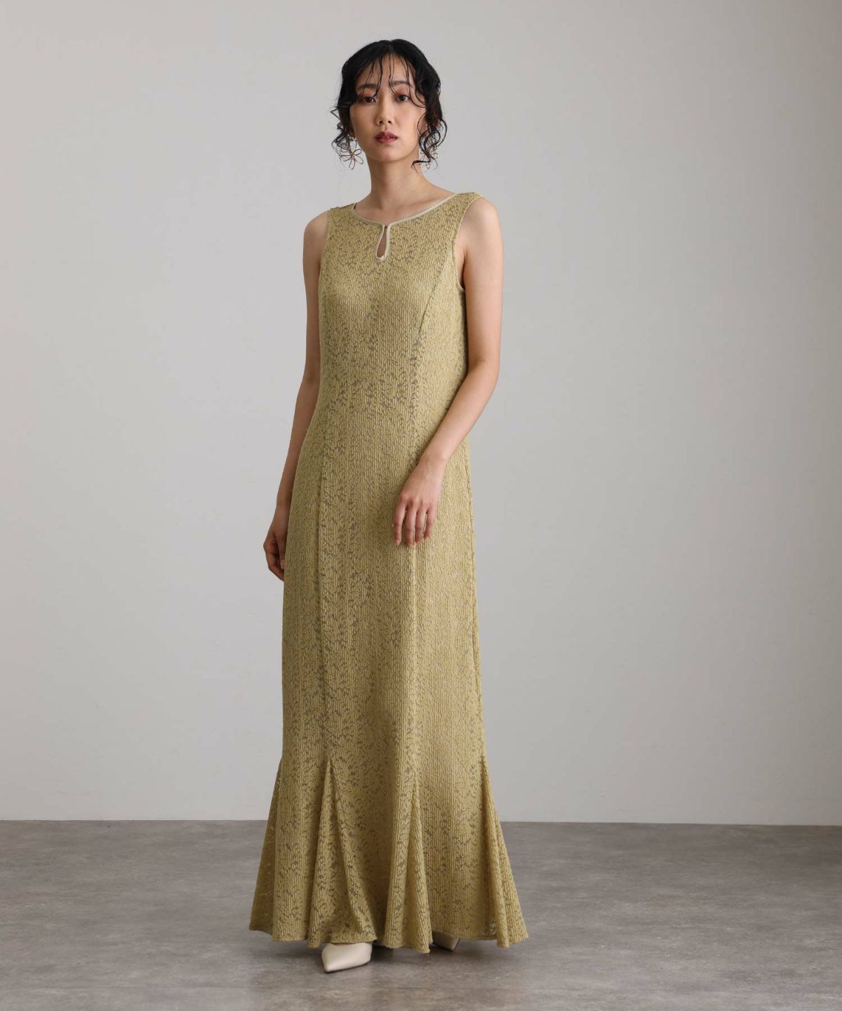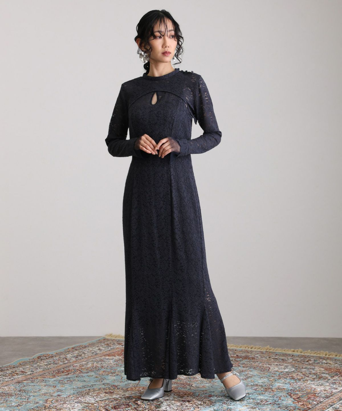 ワンピース裏地にはストレッチのないサテン生地を採用。