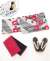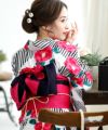 縞紅椿 浴衣4点セット(半巾帯)
