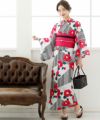商品仕様 ◆4点セット(浴衣/着付け本/半巾帯/下駄:フリーサイズ23cm~25cm)