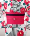 鮮やかなチェリーピンク×黒の帯は、アレンジ自在の半巾帯となっています。
