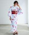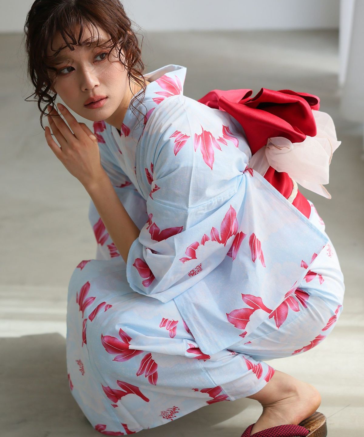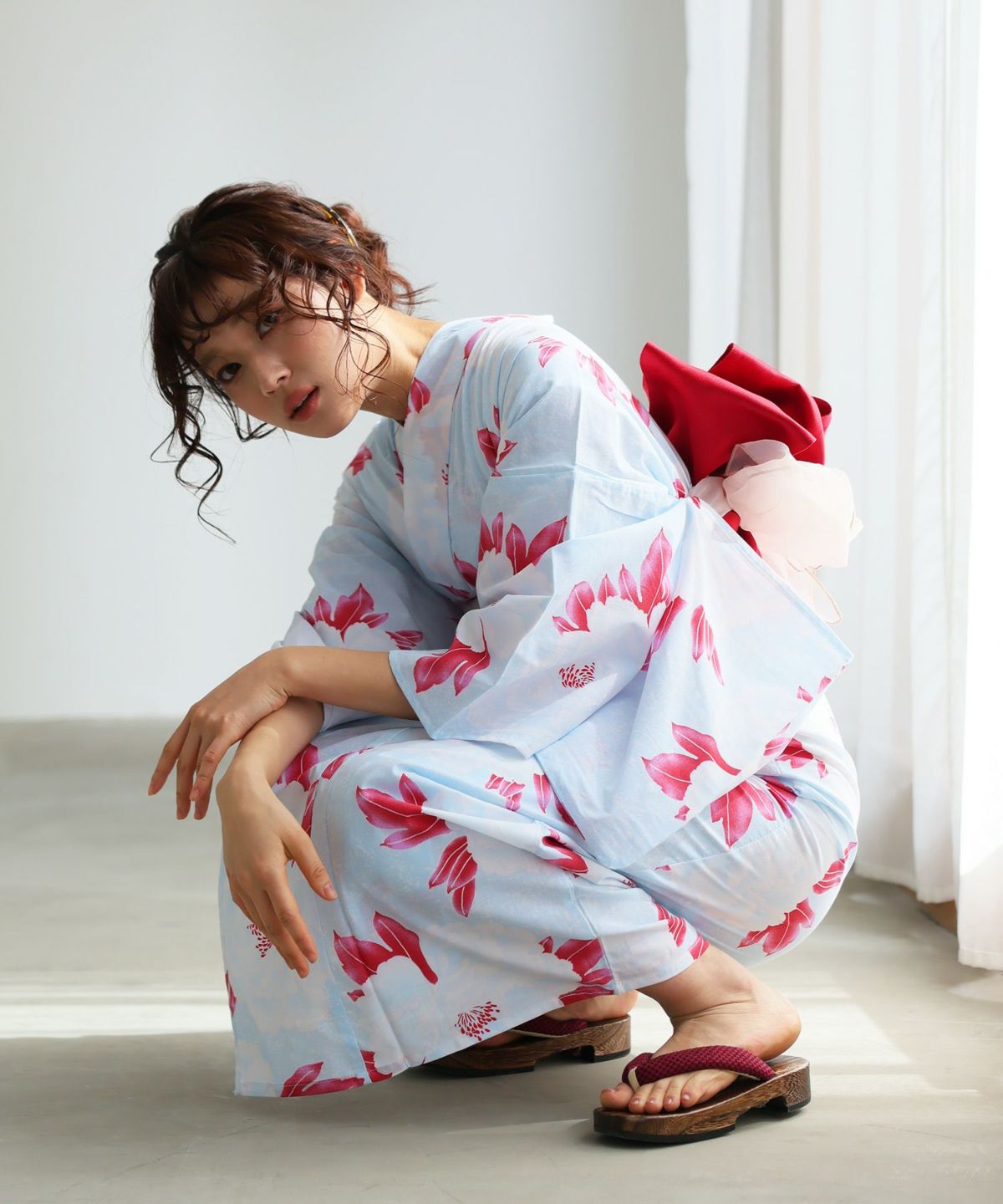 水彩の優美な花が描かれた、大人可愛い浴衣。