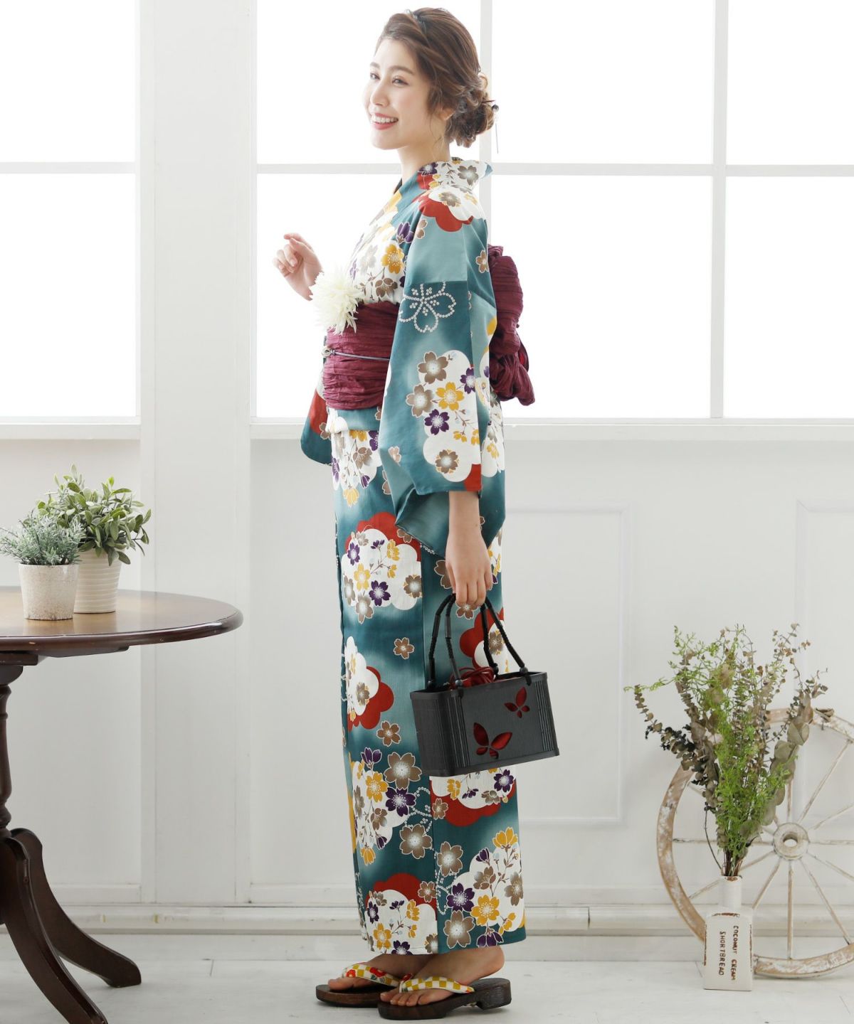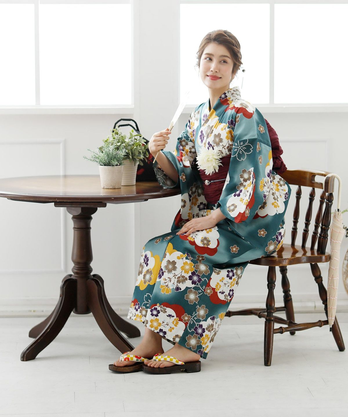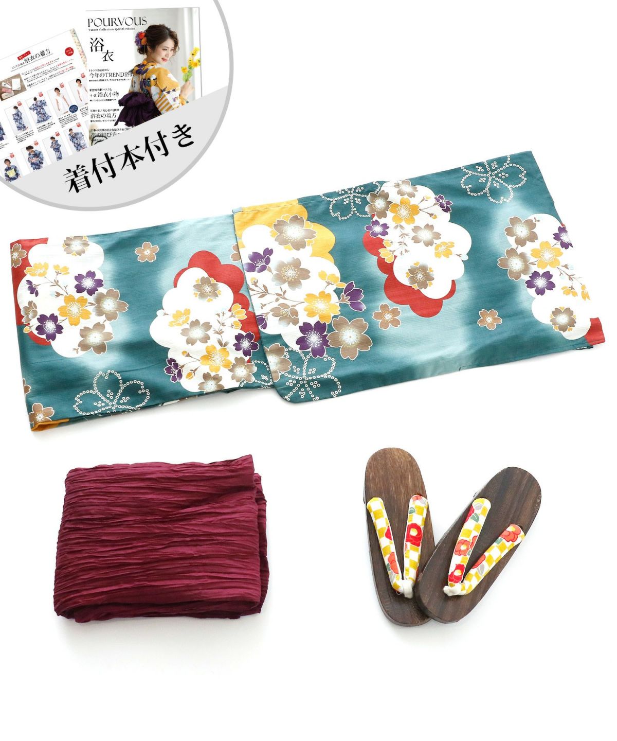 ◆4点セット(浴衣/着付け本/兵児帯/下駄:フリーサイズ23cm~25cm)