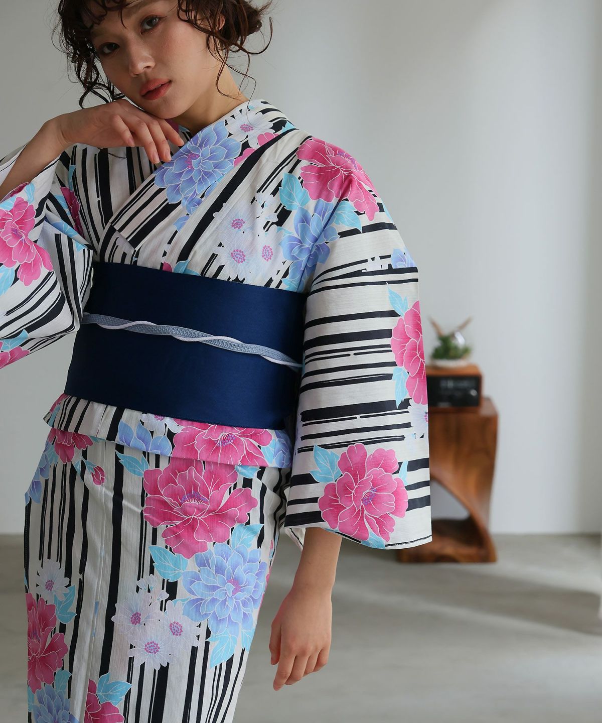 カーニバル×百花 縞模様百花 浴衣2点セット(半巾帯)