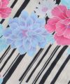 白地に映える黒のストライプと美しい花が、夏に特別な輝きを与えます。