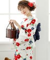 乙女心をくすぐる椿柄 赤と青の椿 浴衣4点セット(兵児帯)