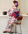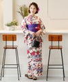 様々な種類の鮮やかな草花や扇が舞う、とっても華やかな浴衣♪