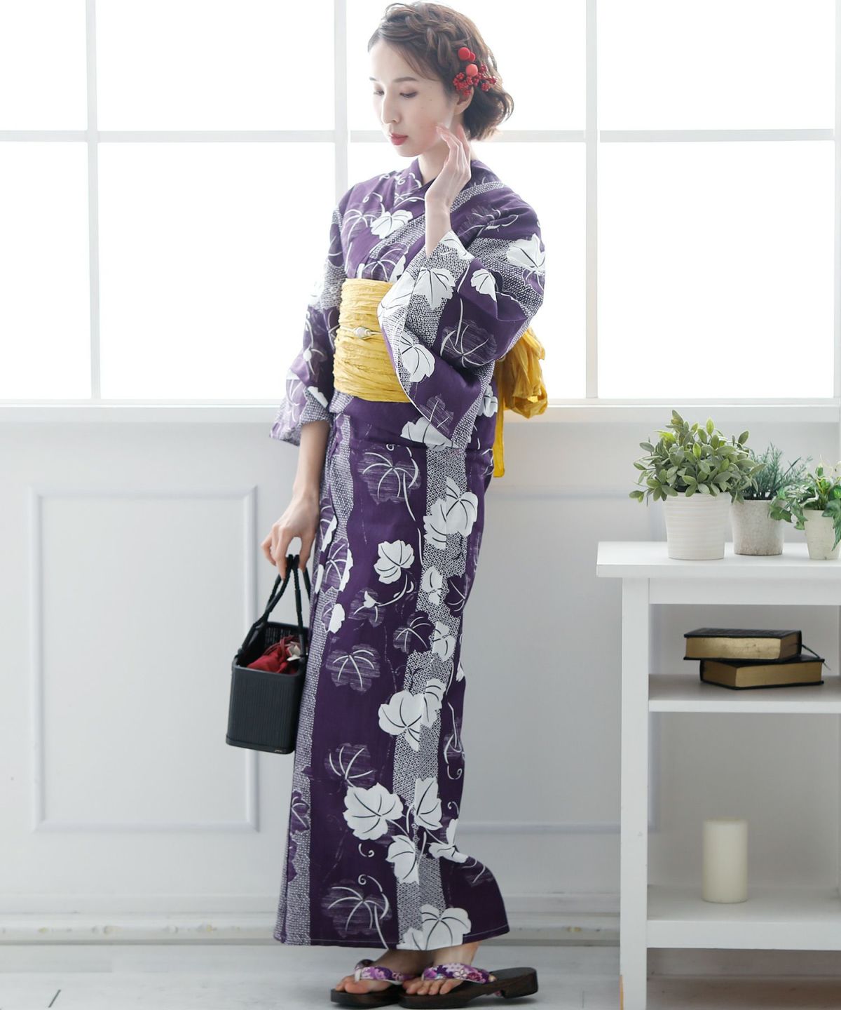 商品仕様 ◆4点セット(浴衣/着付け本/兵児帯/下駄:フリーサイズ23cm~25cm)