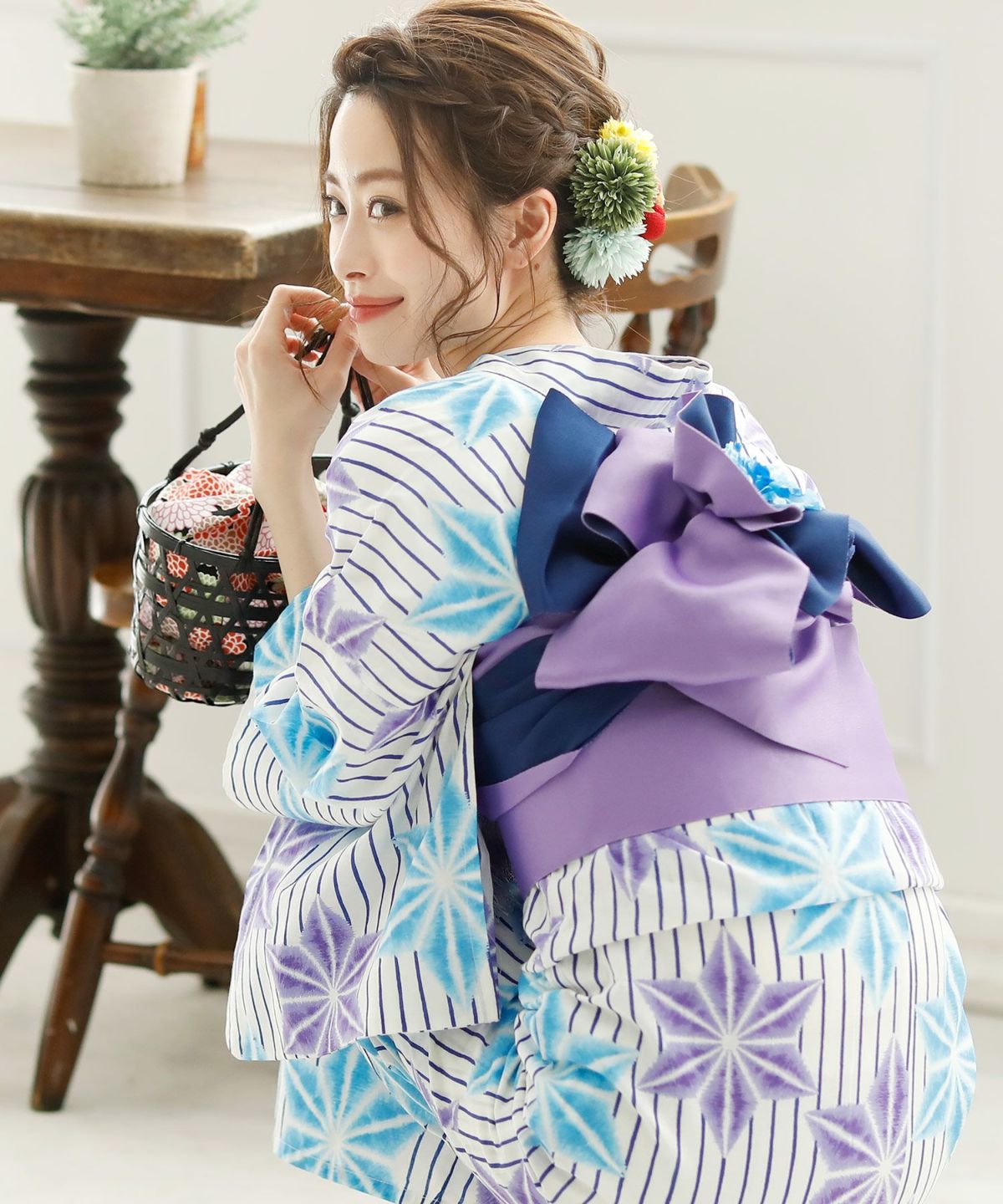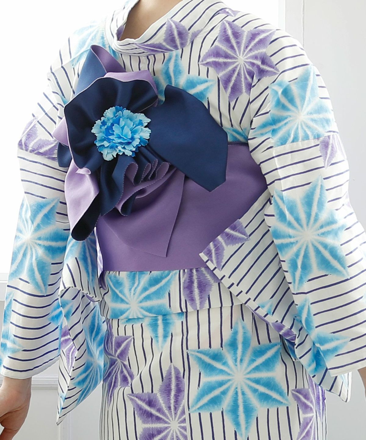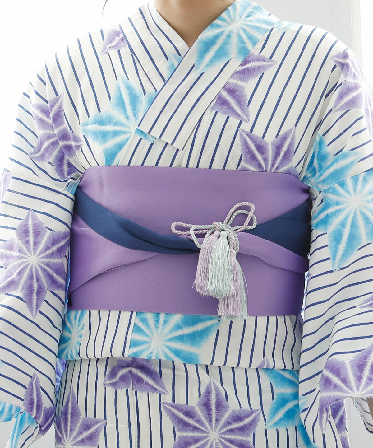寒色系の爽やかな色の帯は、アレンジ自在の半巾帯となっています。