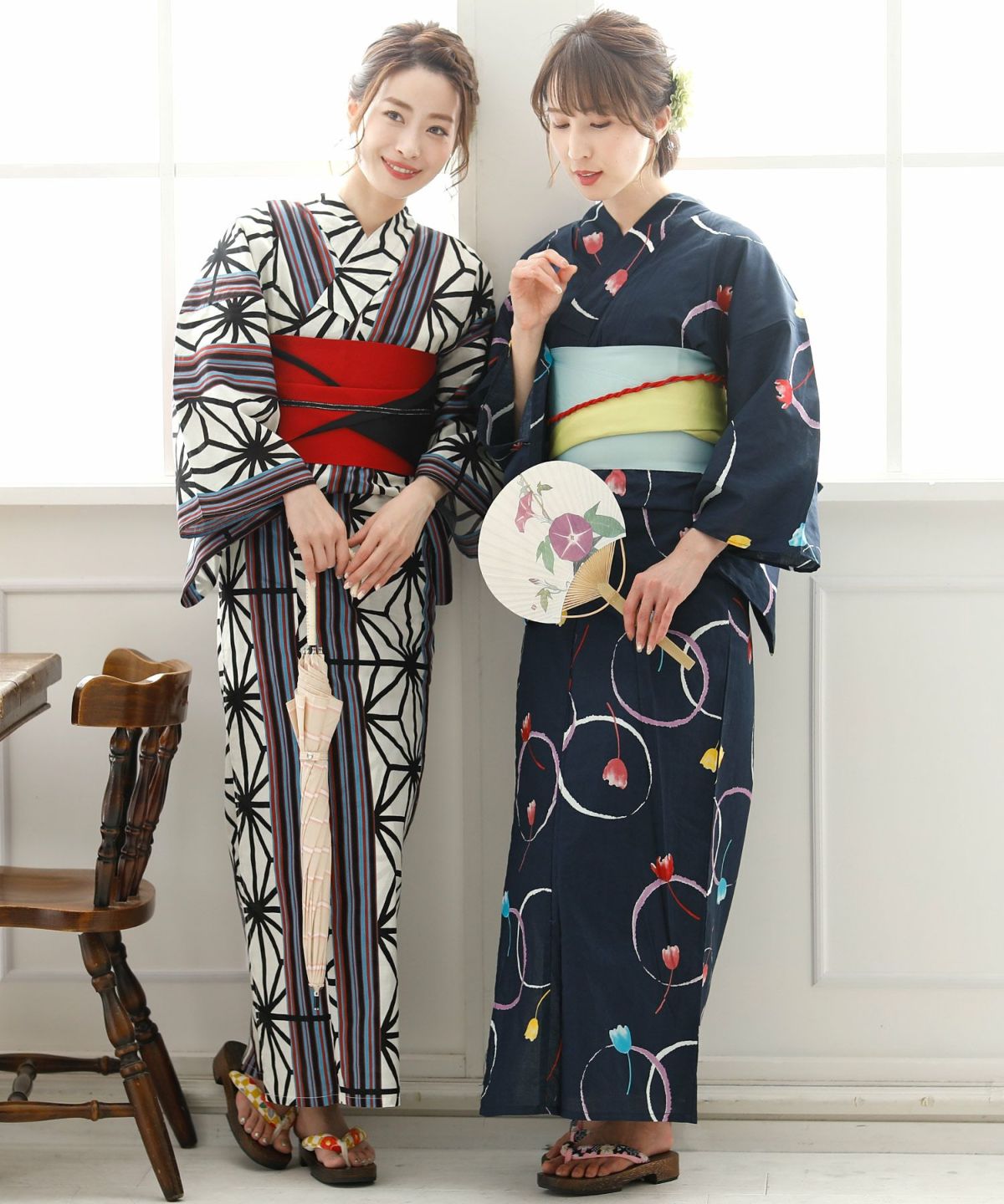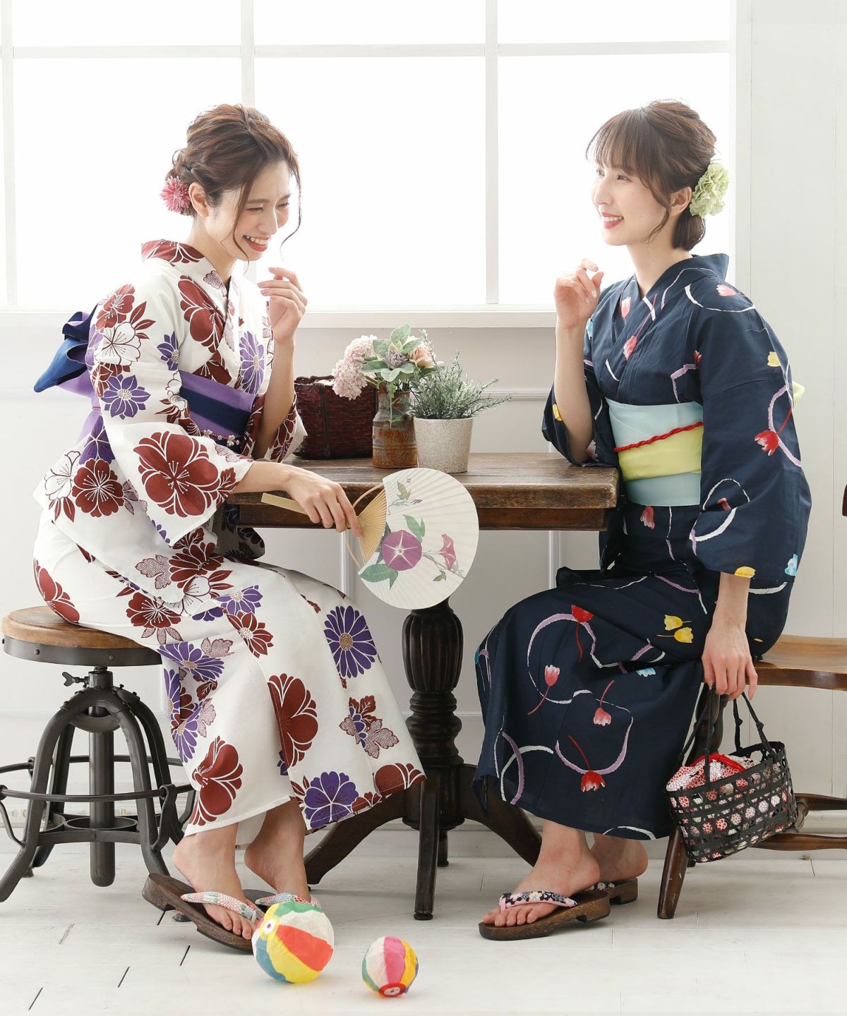 商品仕様 ◆4点セット(浴衣/着付け本/半巾帯/下駄:フリーサイズ23cm~25cm)