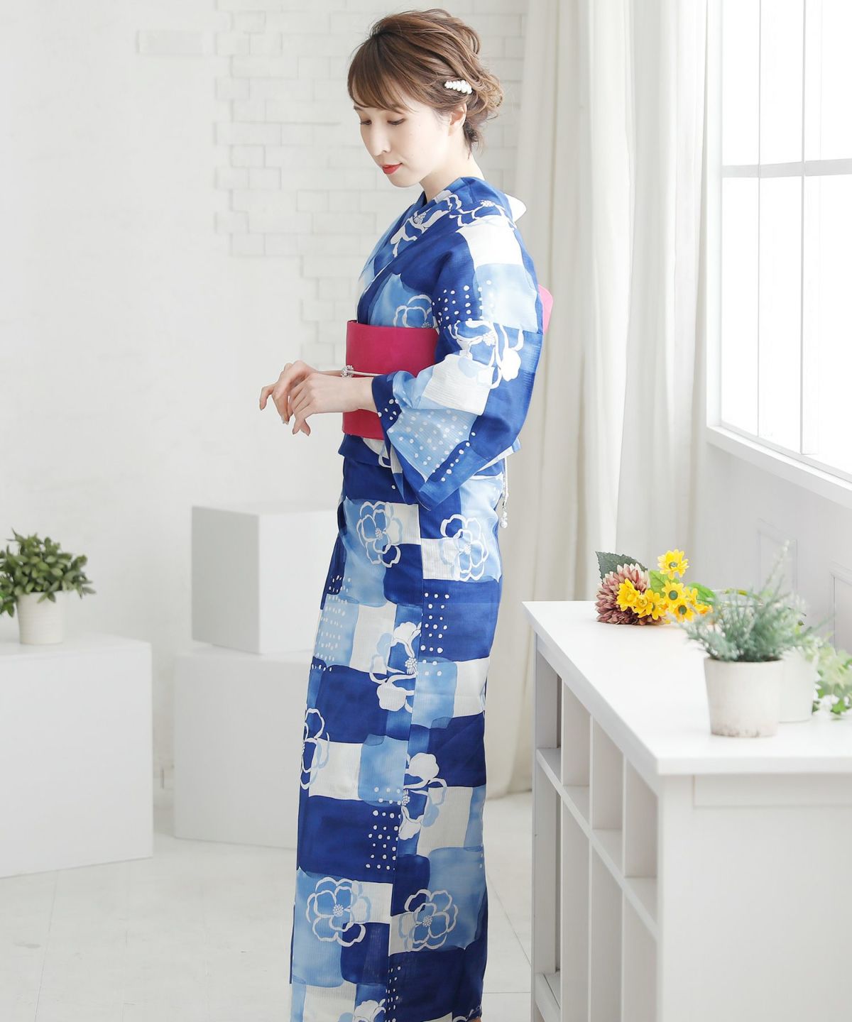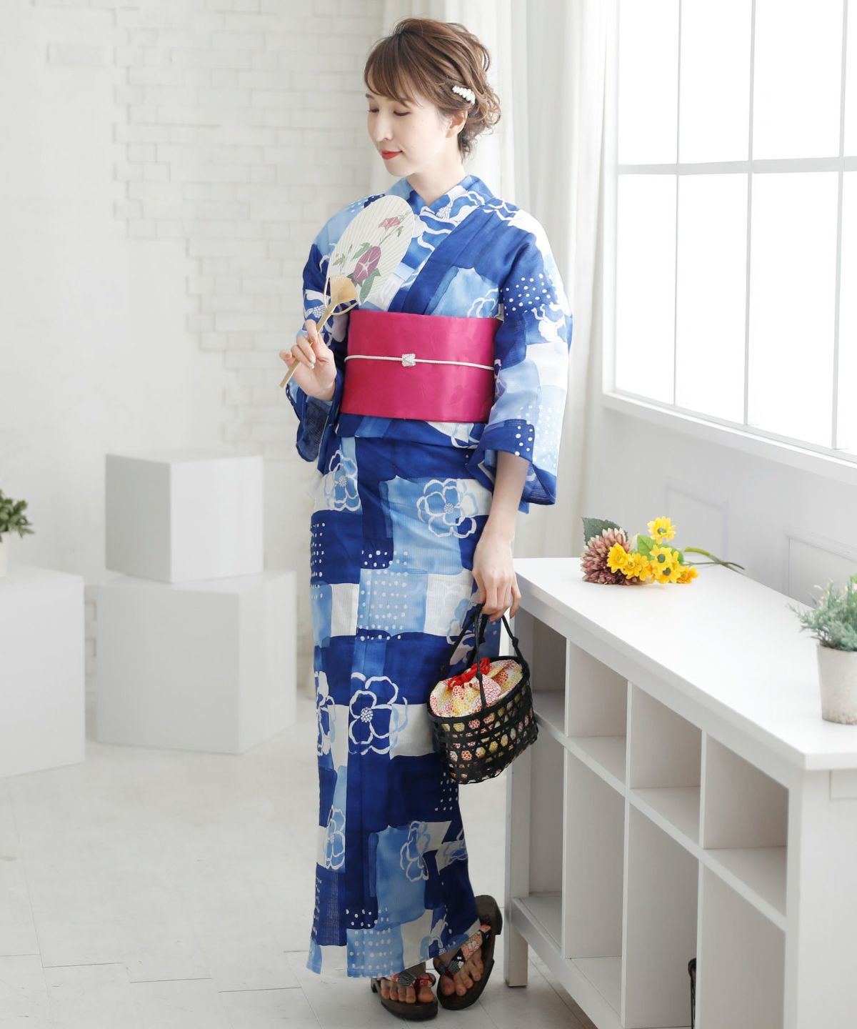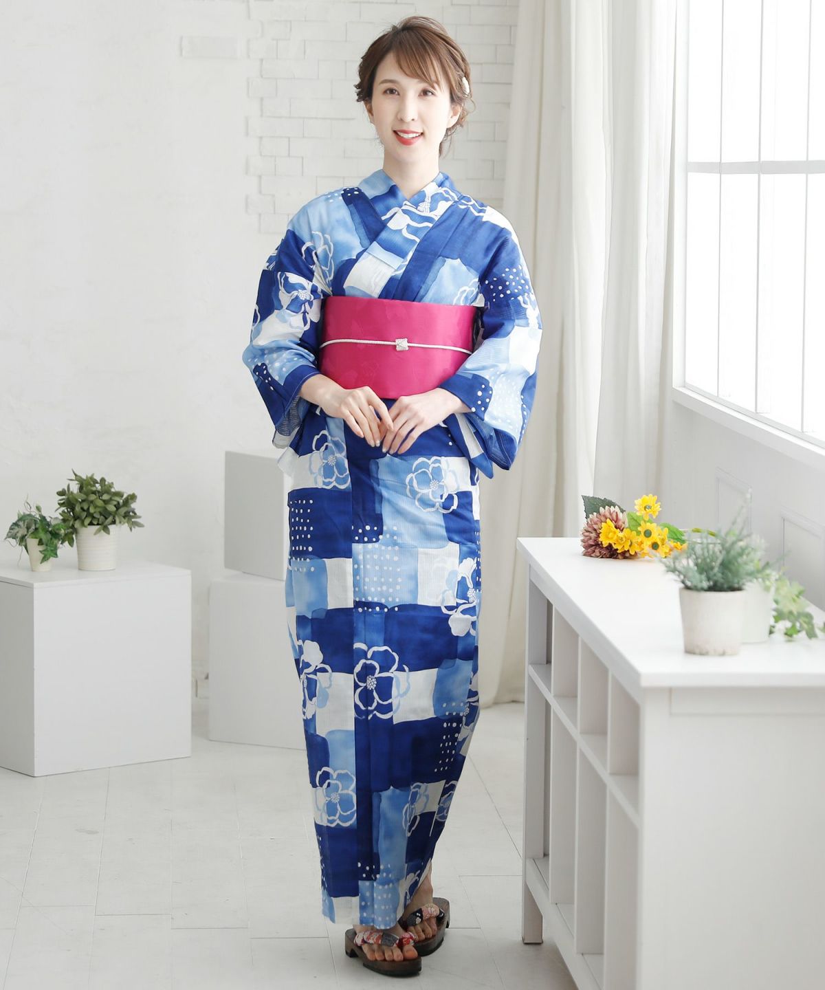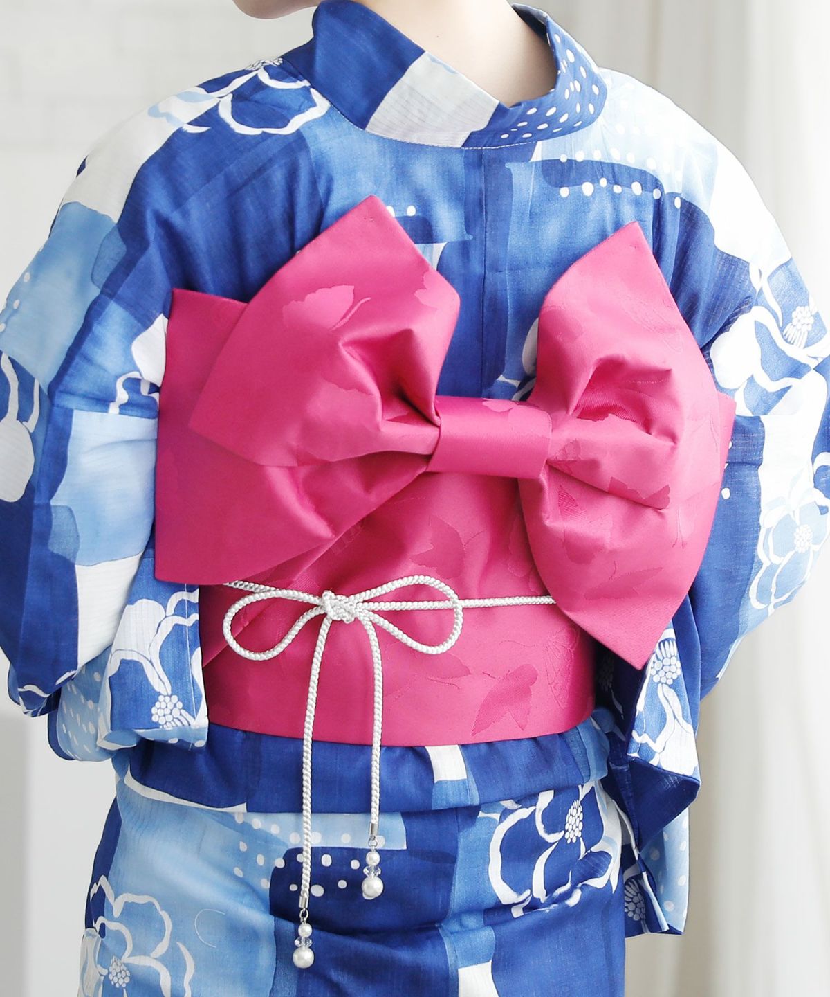 ◆浴衣素材:綿100%、帯素材:ポリエステル100% モデル参考 備考 ※浴衣の【しつけ糸】を切った場合は、【返品交換不可】となります。予めご了承ください。
