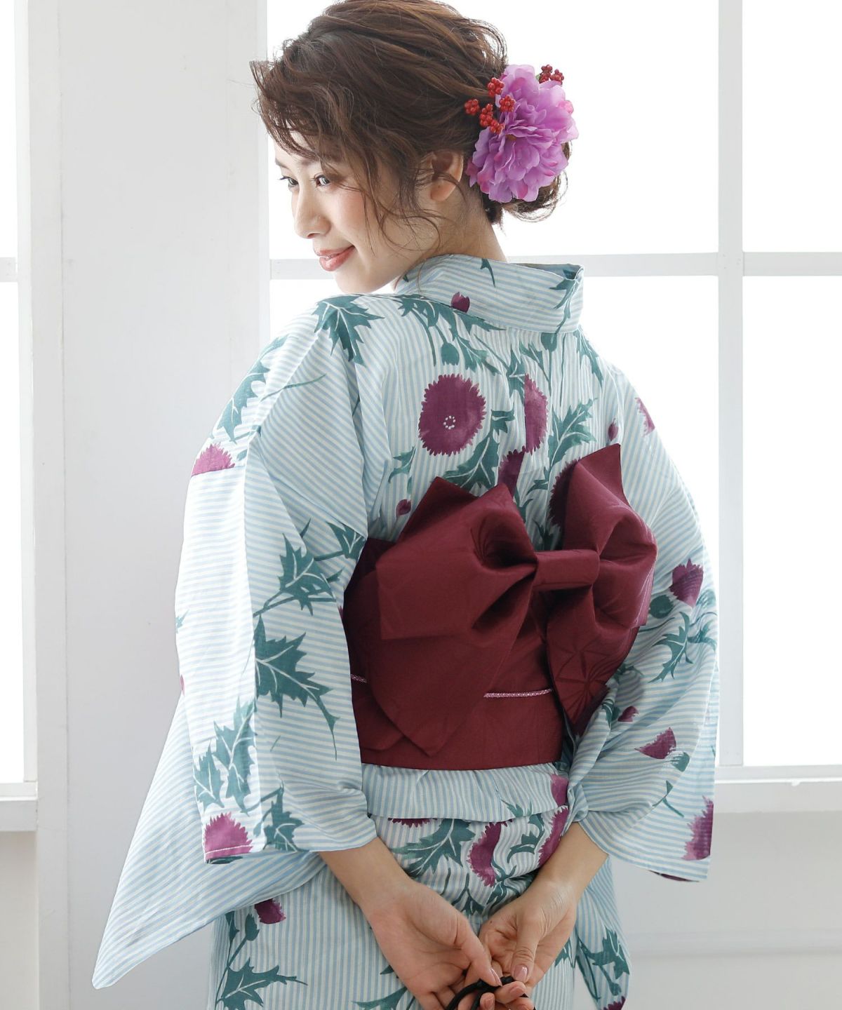 ワイン色の帯で大人っぽい雰囲気に格上げ。