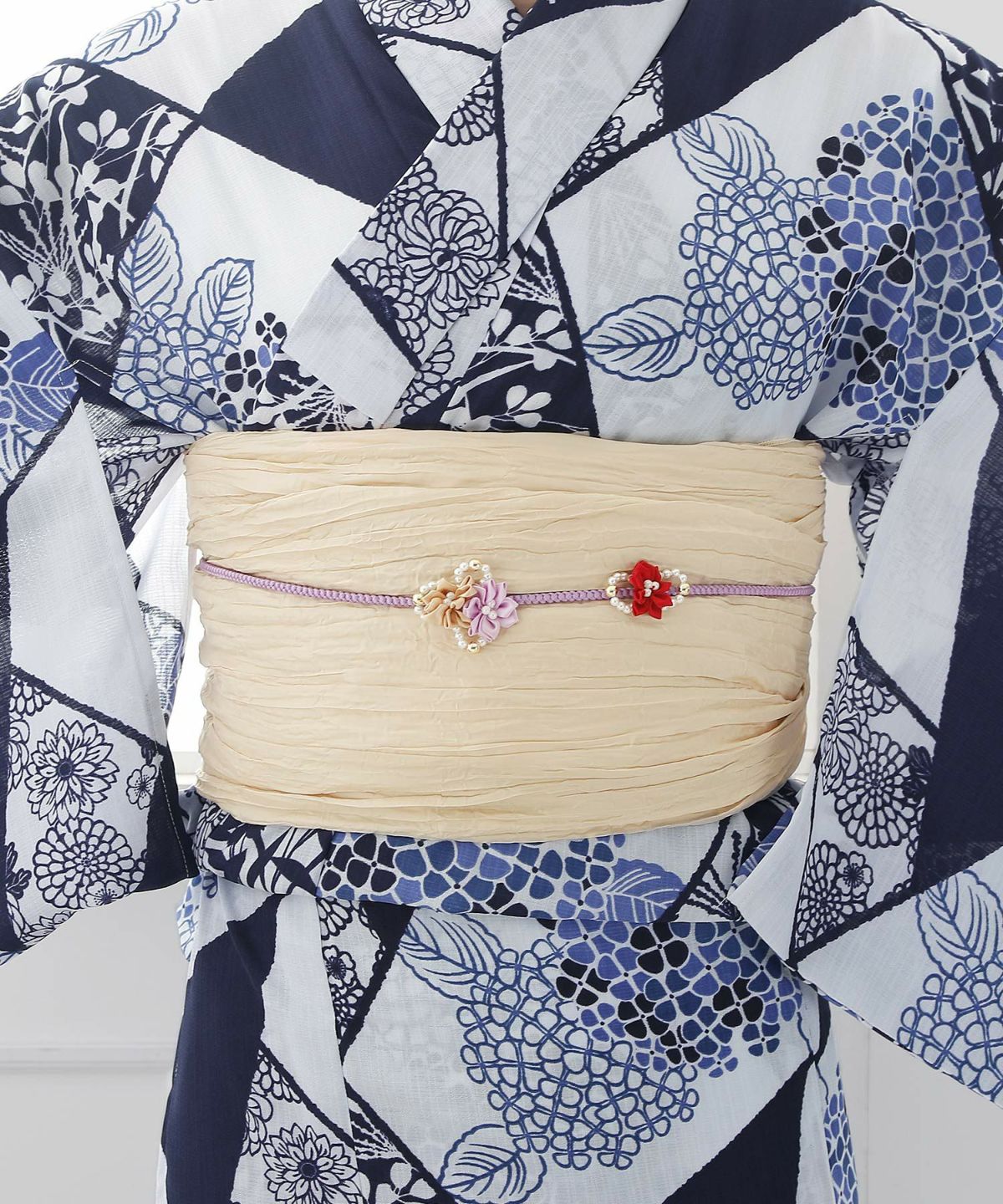 くしゅくしゅした素材の帯は、アレンジ自在のオシャレな兵児帯となっています♪