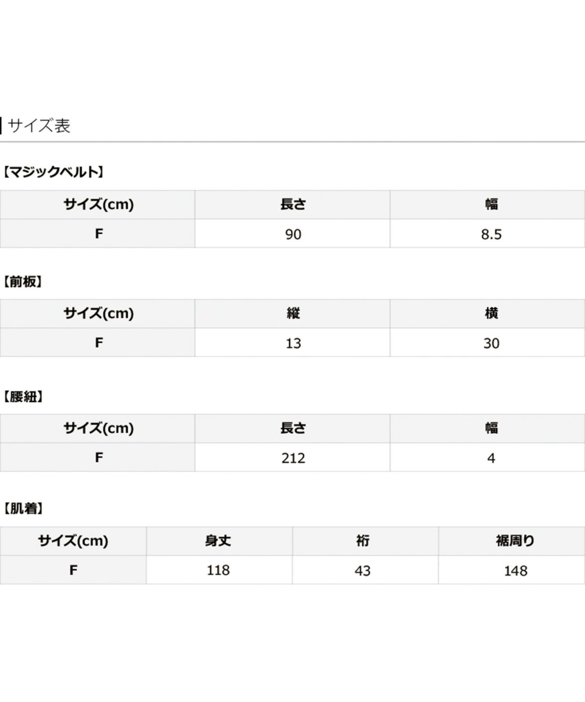 マジックベルト/前板/腰ひも/肌着のセット商品。
