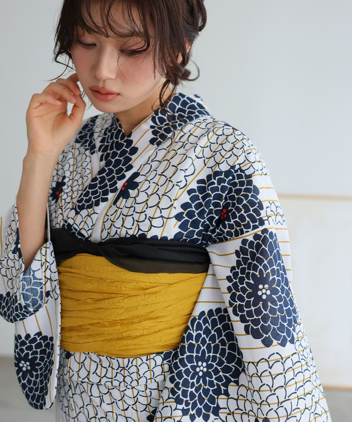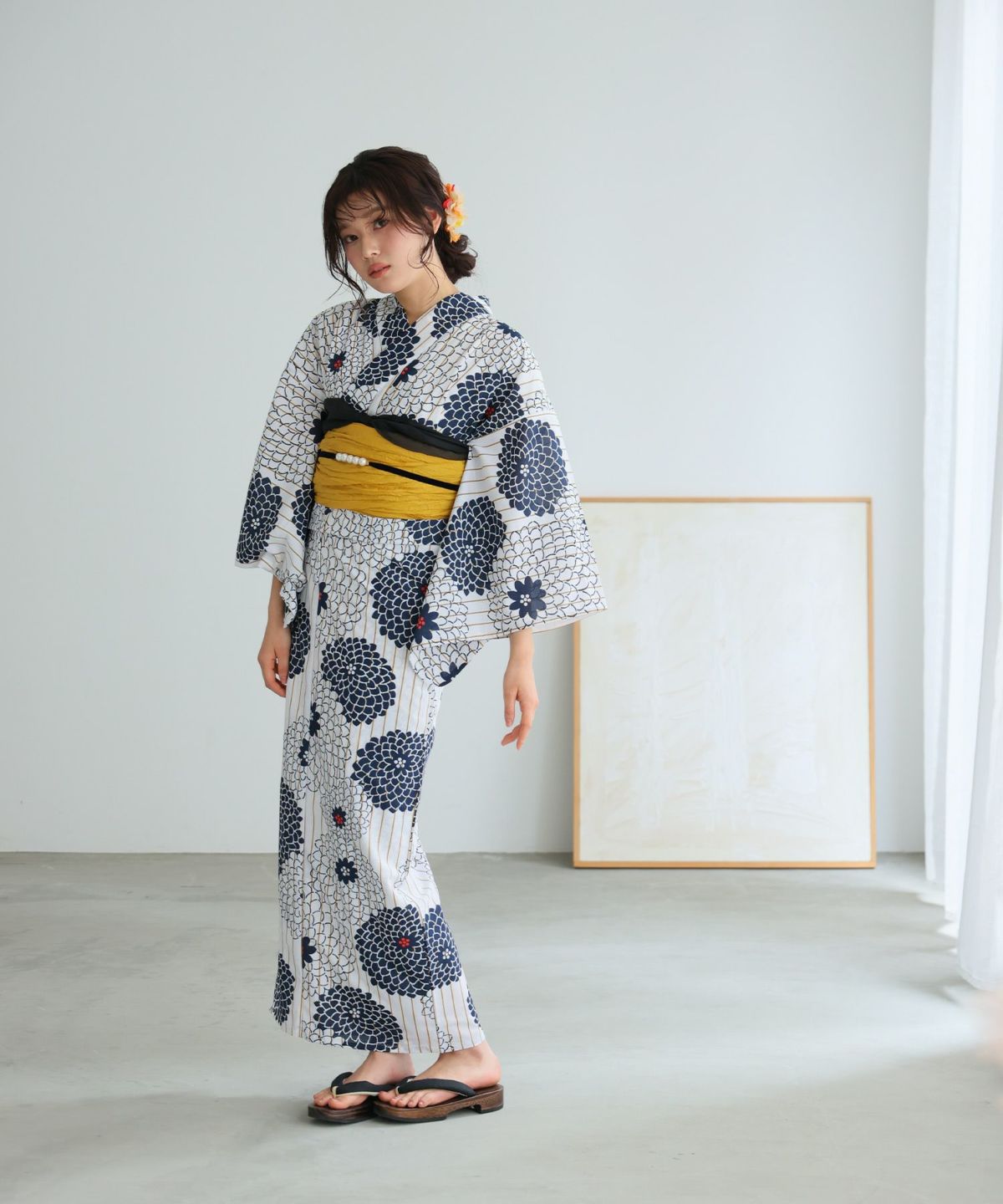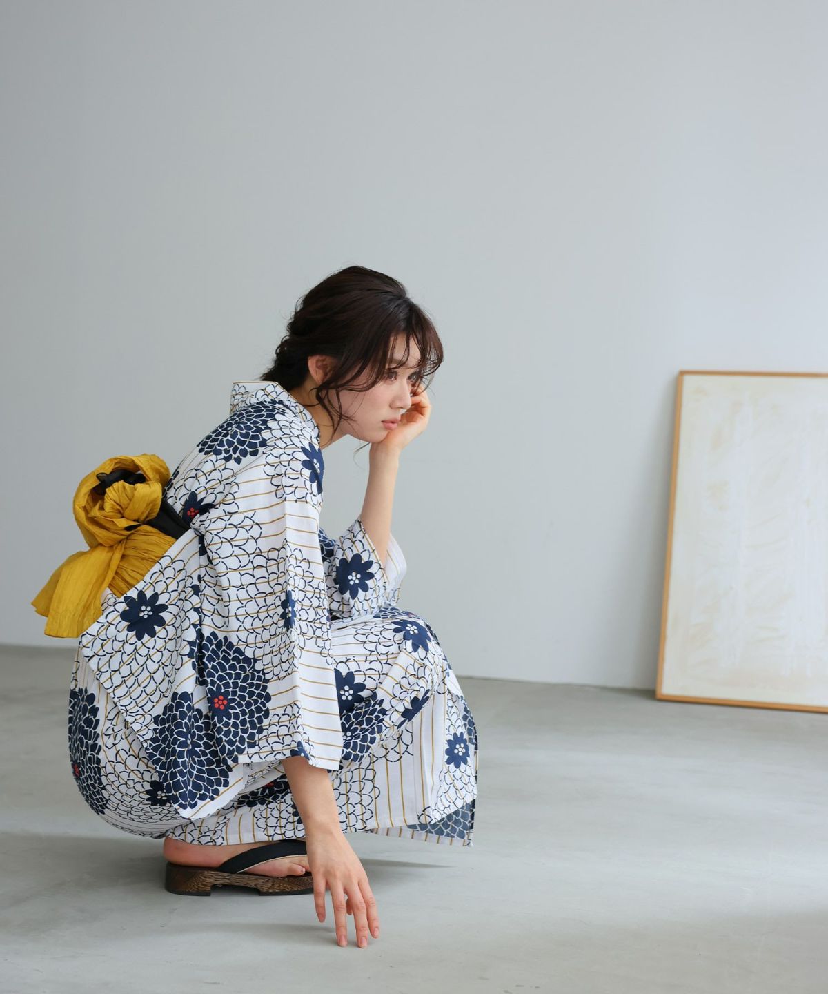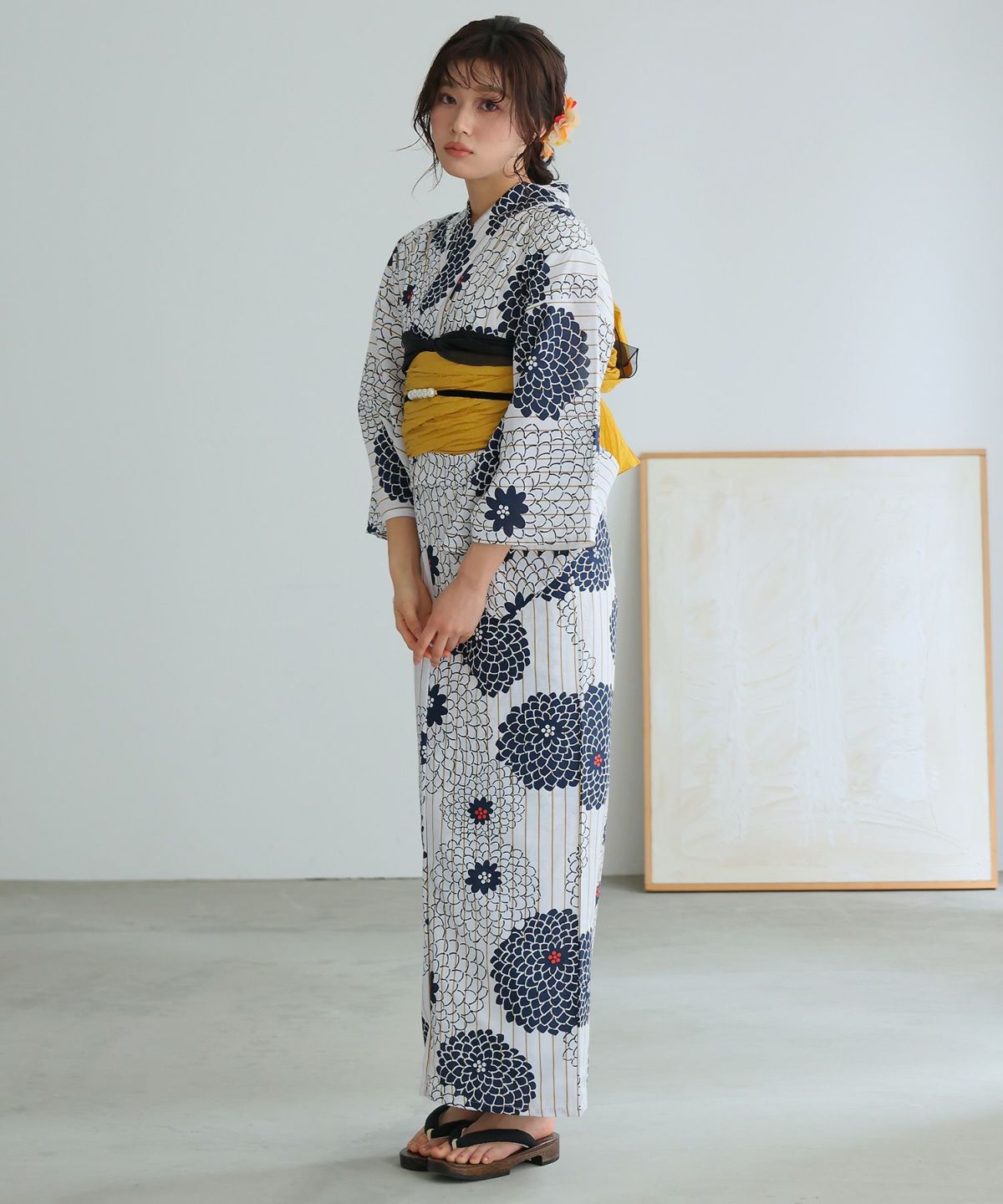 モダンストライプ×ダリア 爽やかダリア 浴衣2点セット(兵児帯)
