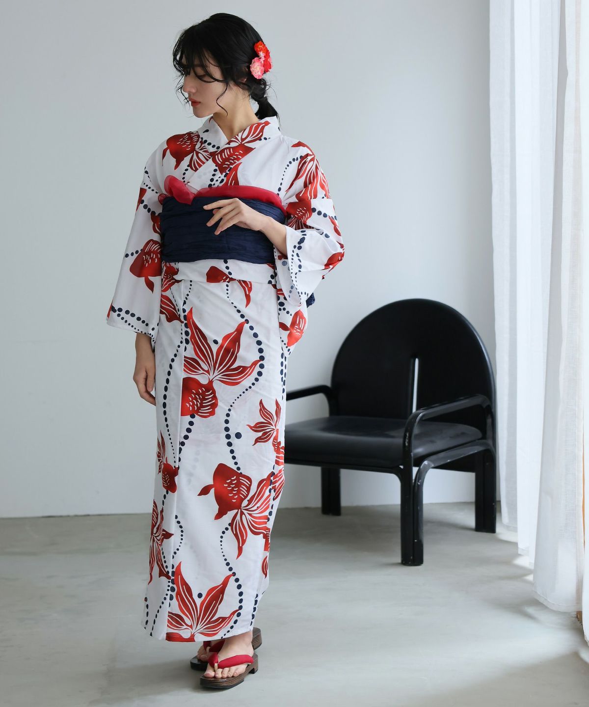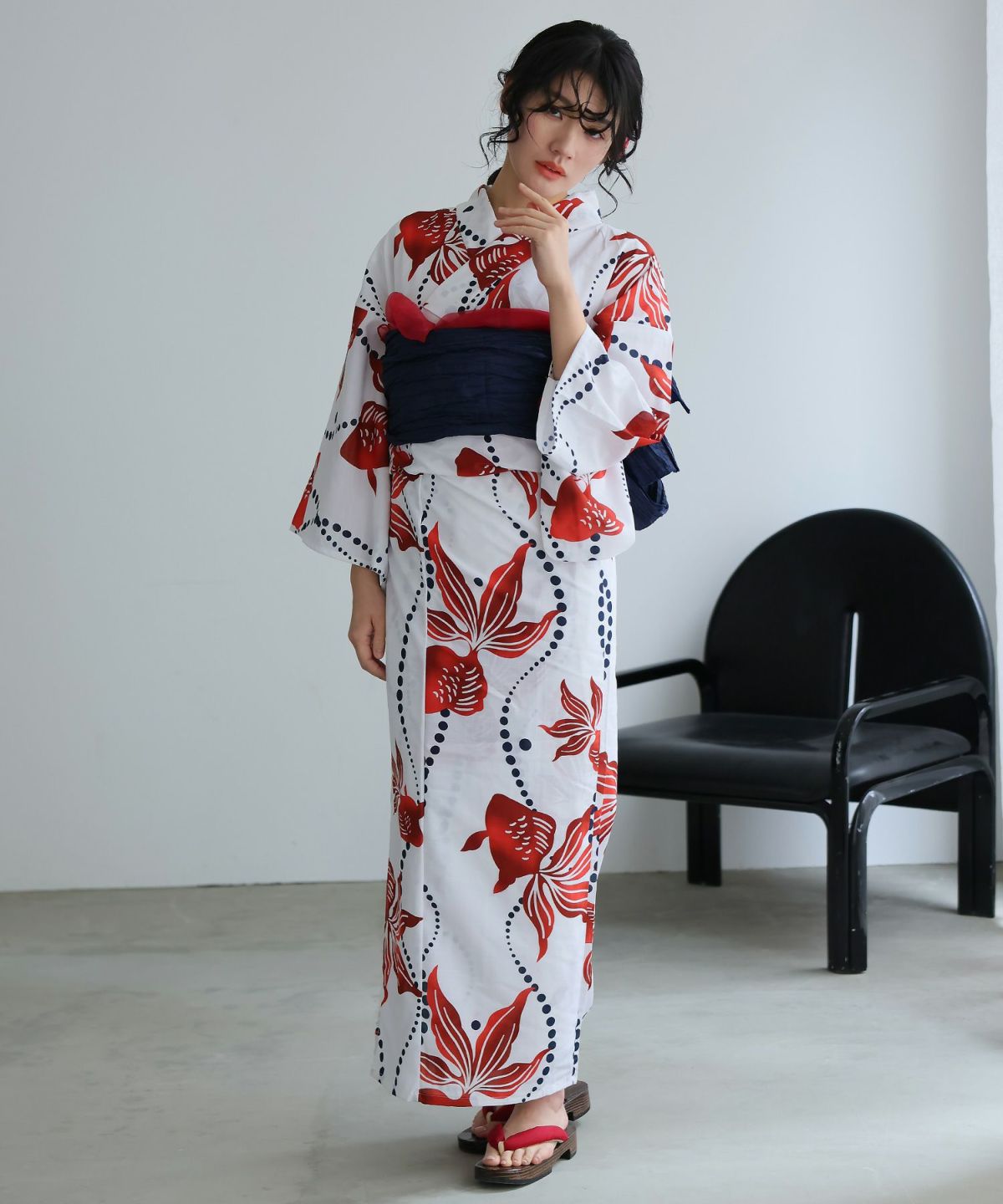 幾何学夏×金魚 夏金魚 浴衣2点セット(兵児帯)