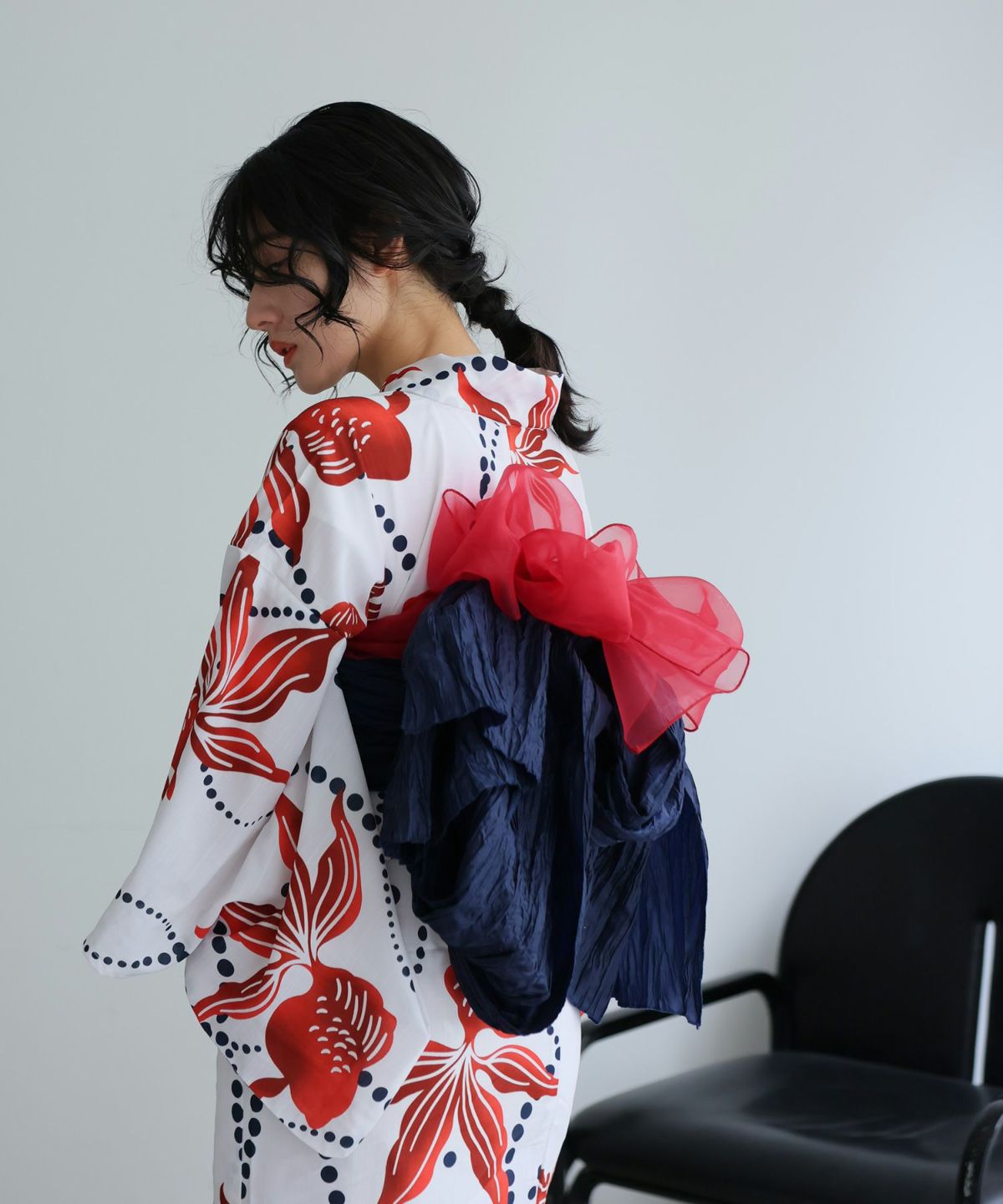 くしゅくしゅした素材の帯は、アレンジ自在の可愛い兵児帯となっています♪