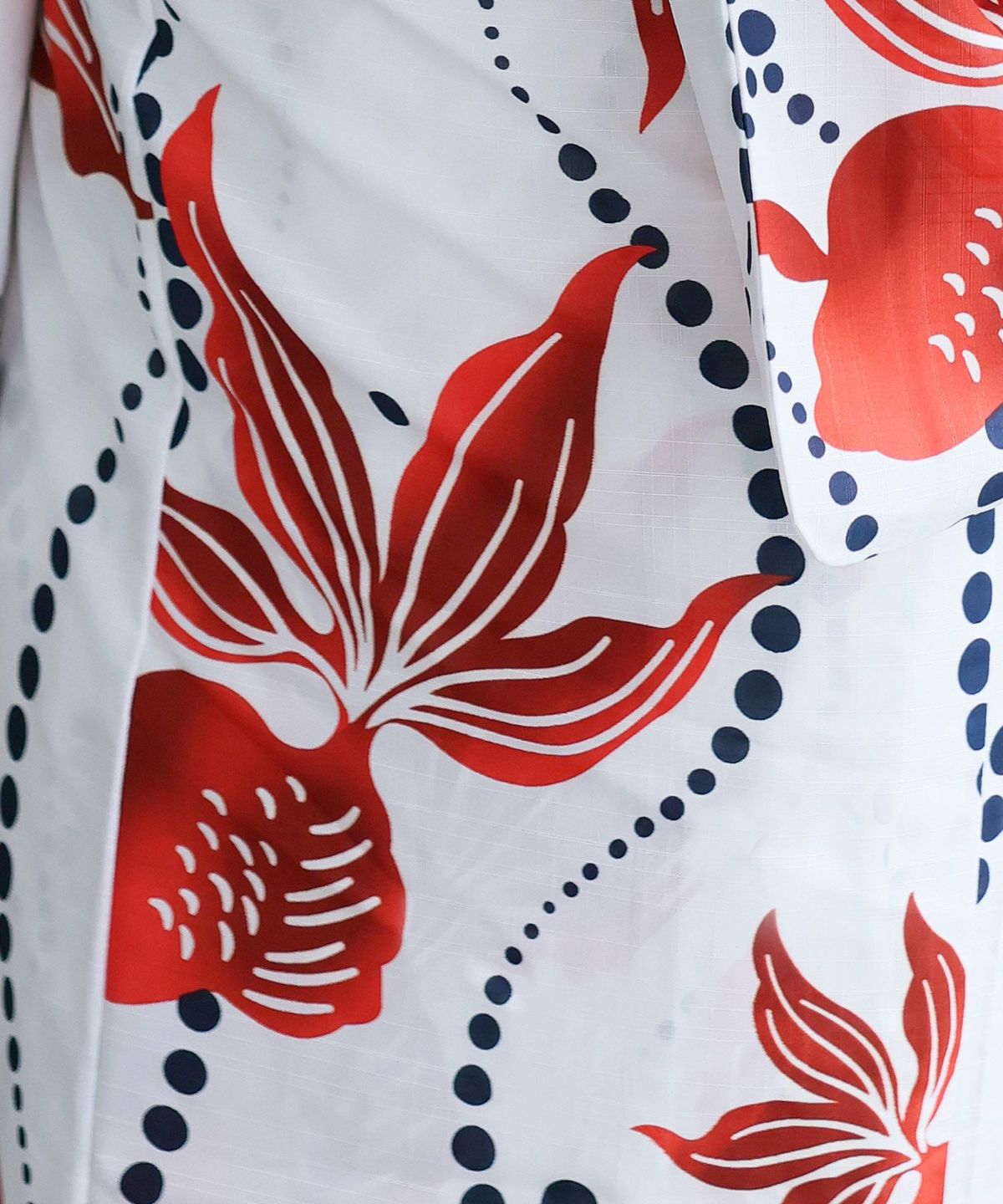 大柄なデザインが白地に上品な印象を与える、夏の着こなし。