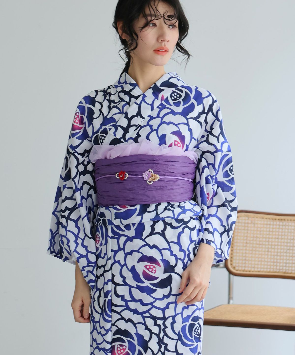 モダン花×花びら 波紋花びら 浴衣2点セット(兵児帯)