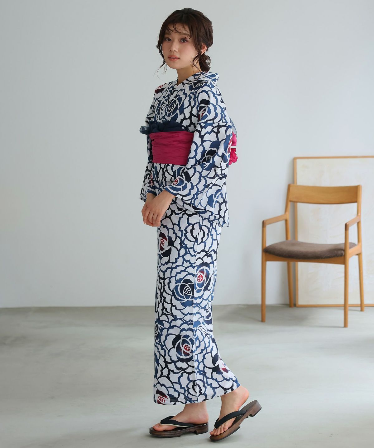モダン×夜道の花 夜道の花びら 浴衣2点セット(兵児帯)