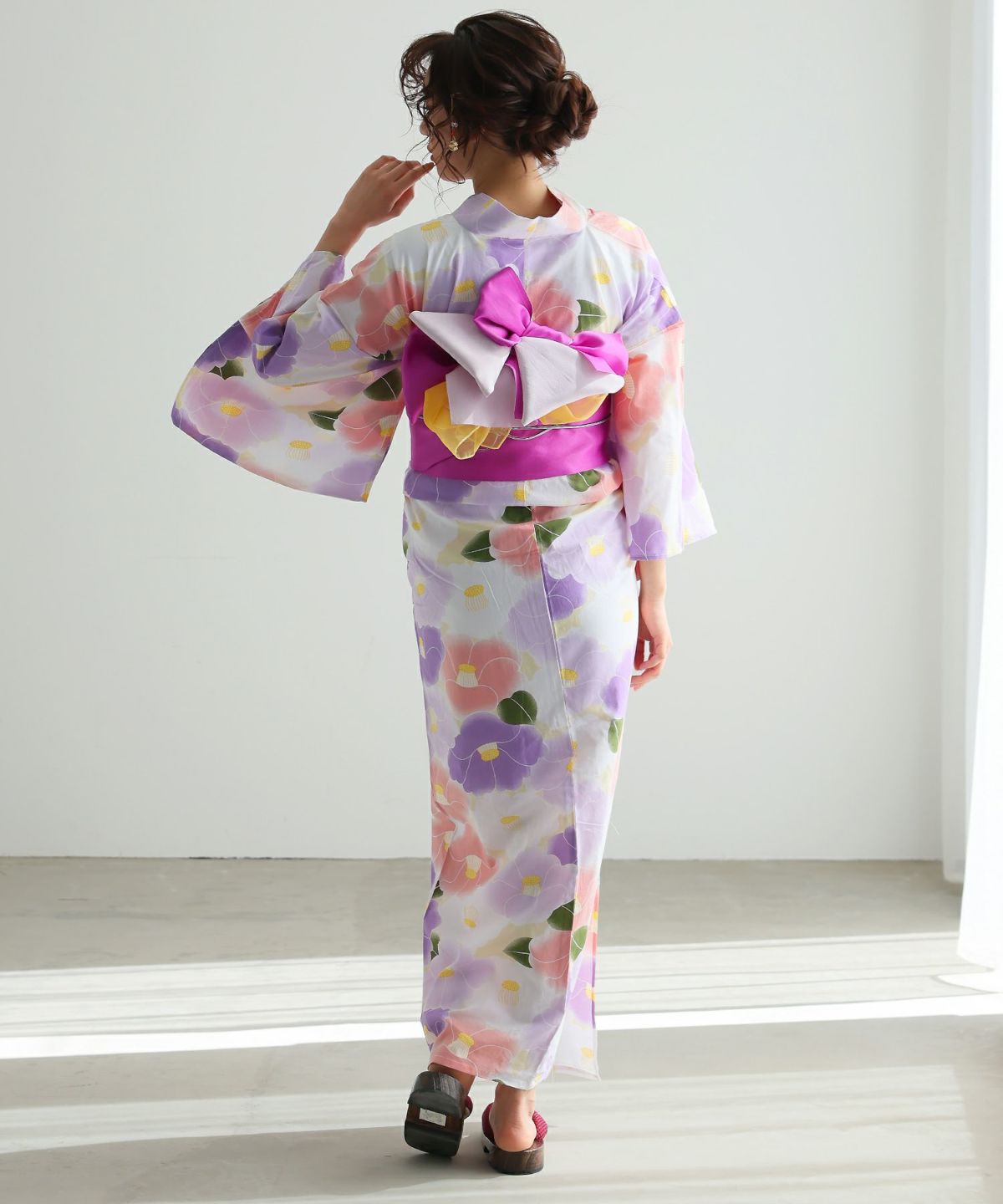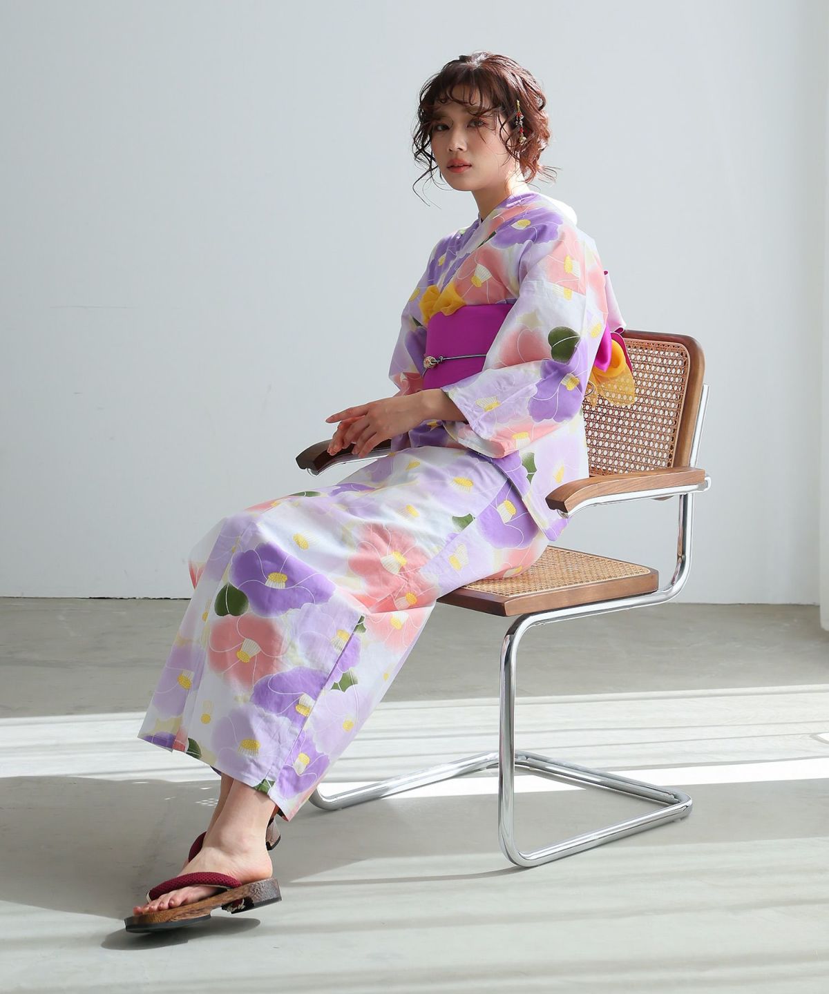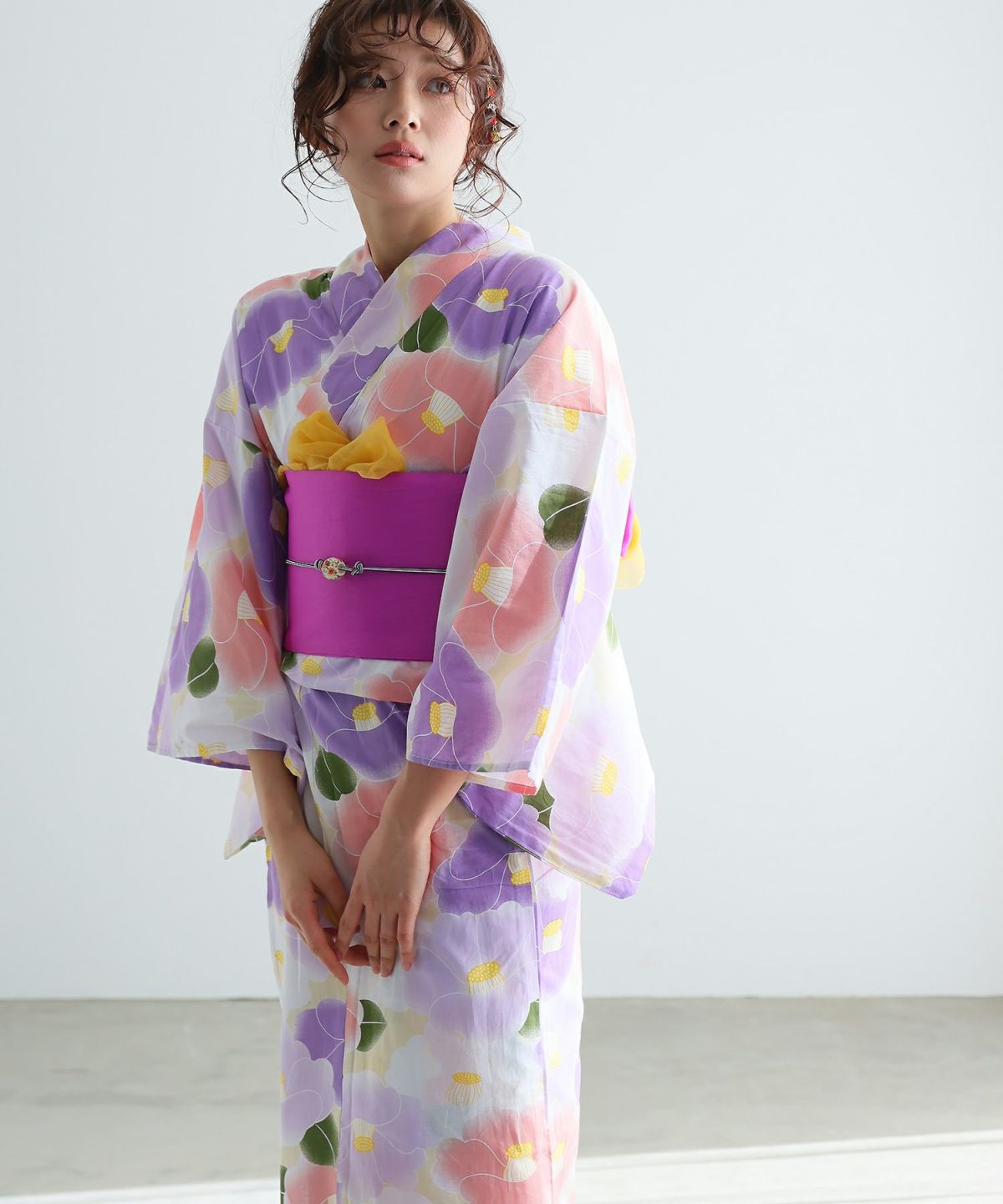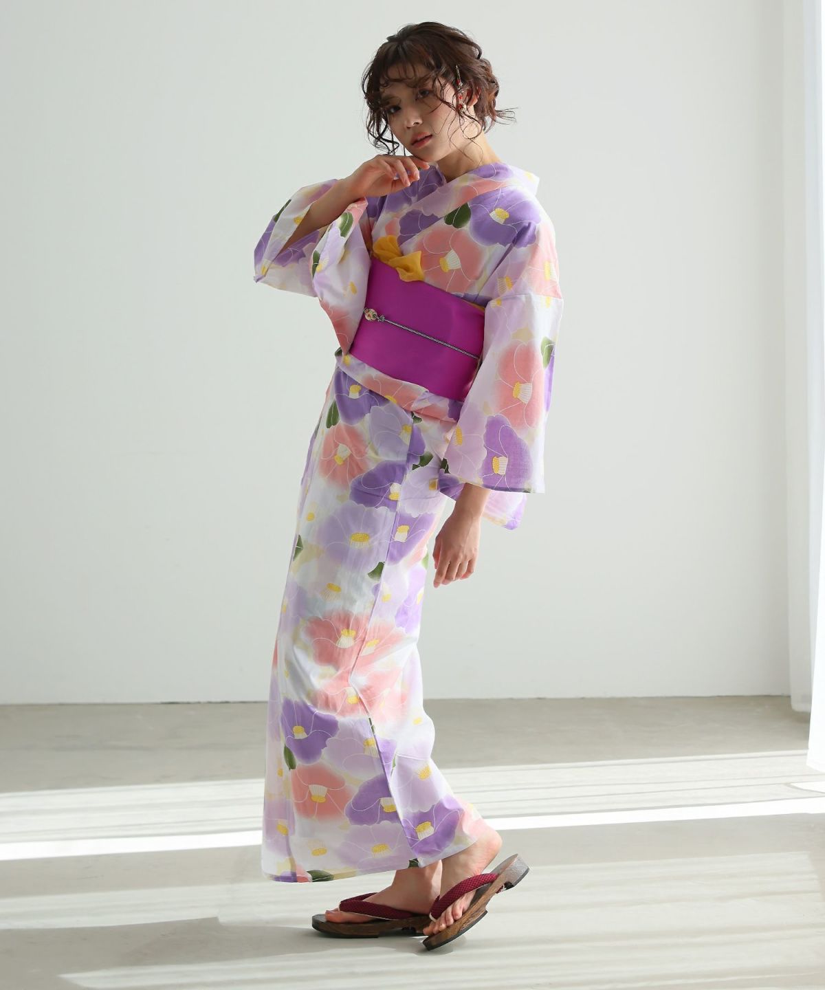 水彩の優美な花が描かれた、大人可愛い浴衣。