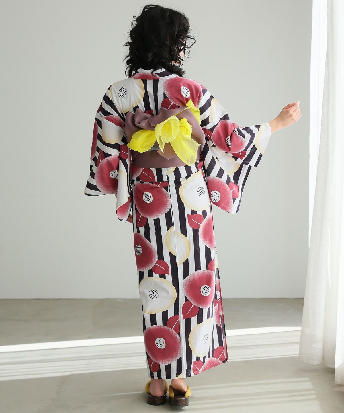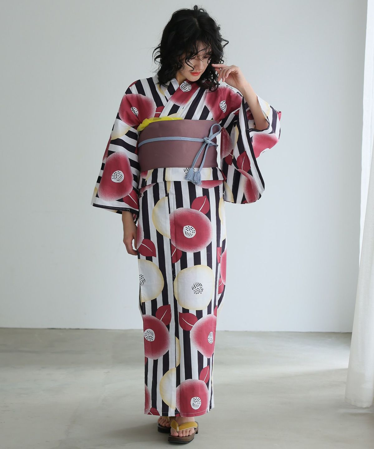 カーニバル×牡丹 縞模様と牡丹 浴衣2点セット(半巾帯)