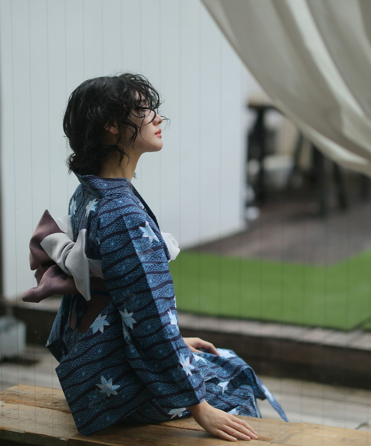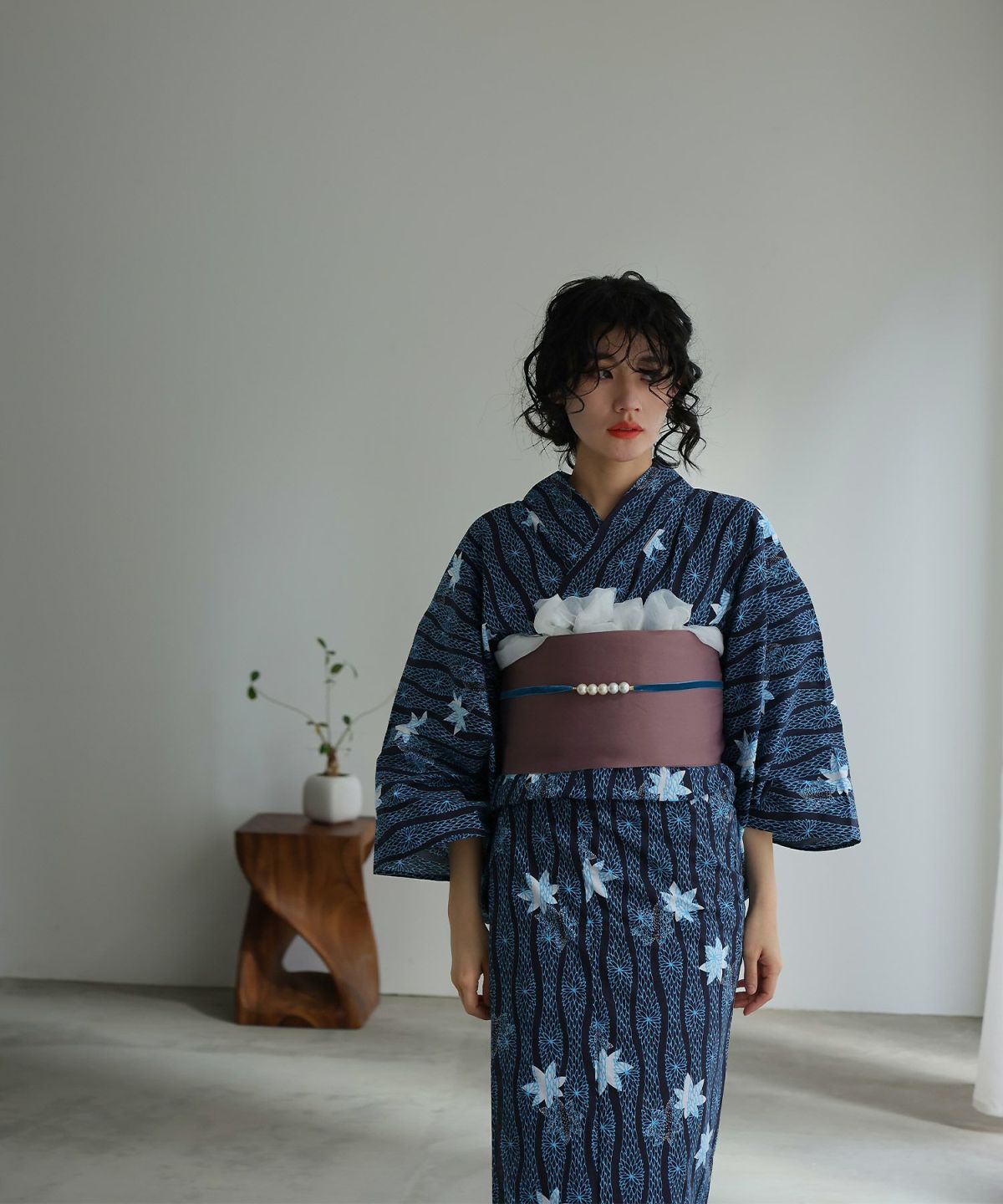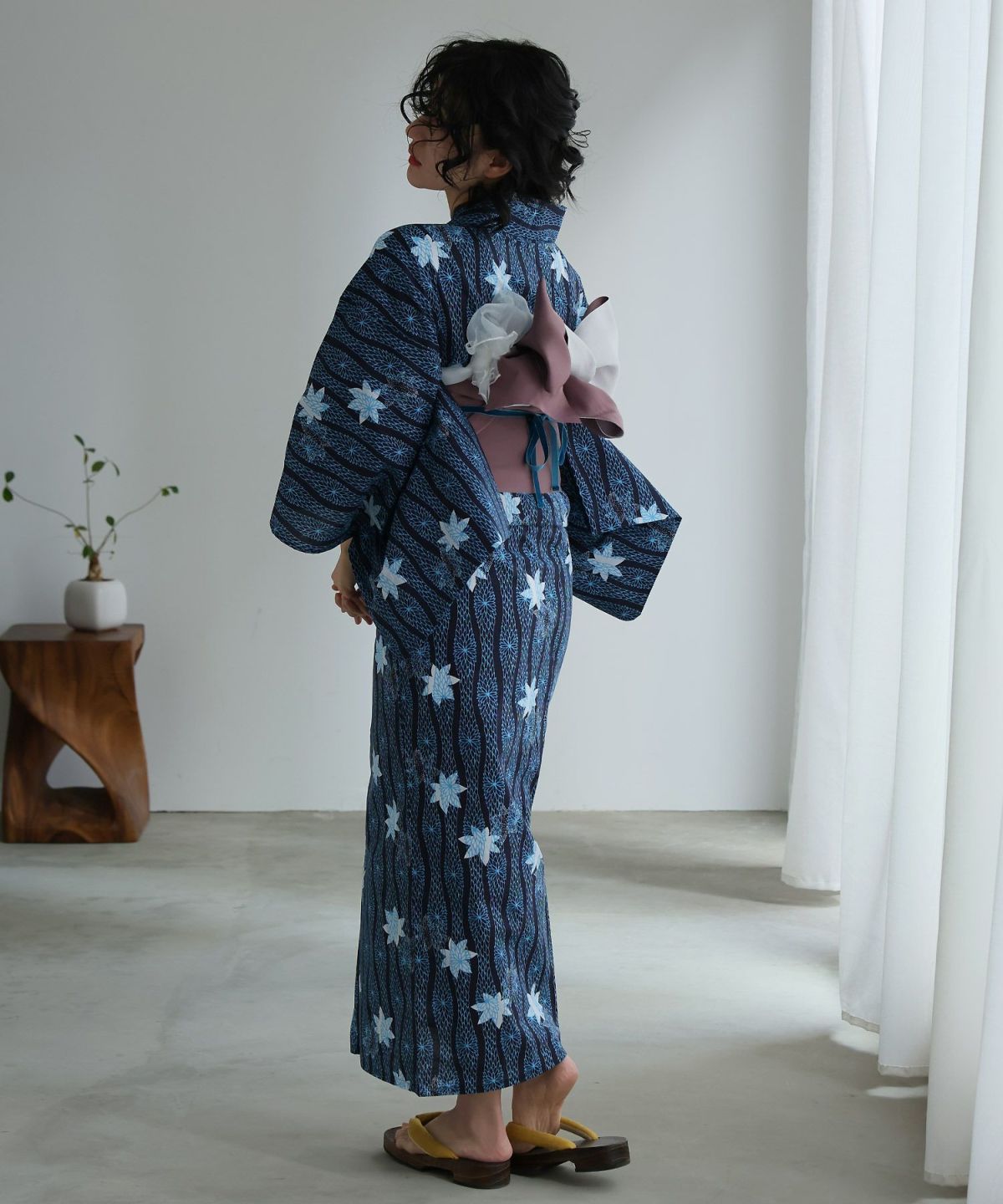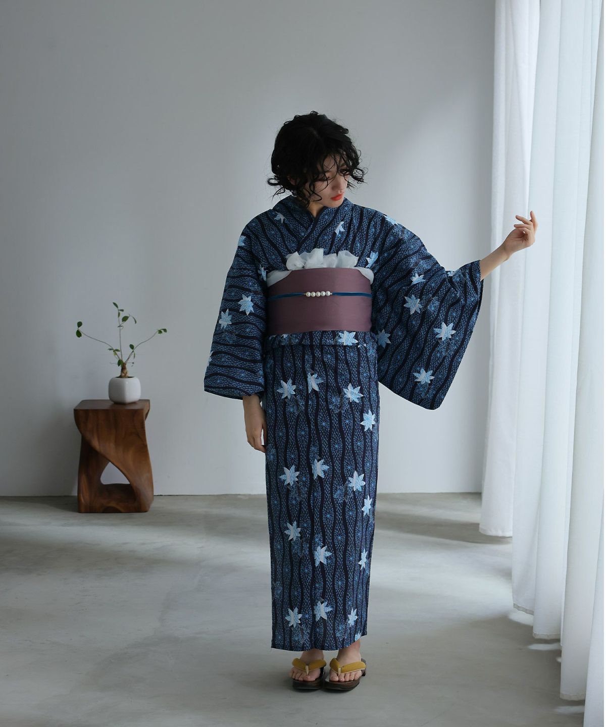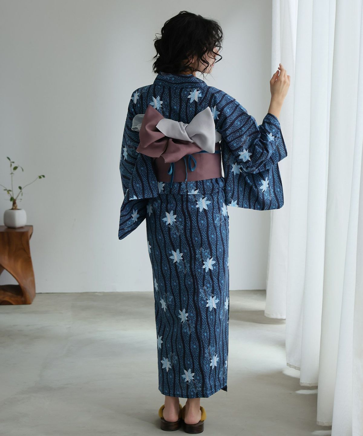 ストライプ×紅葉 水中紅葉 浴衣2点セット(半巾帯)