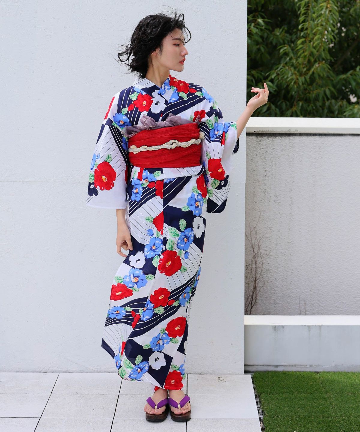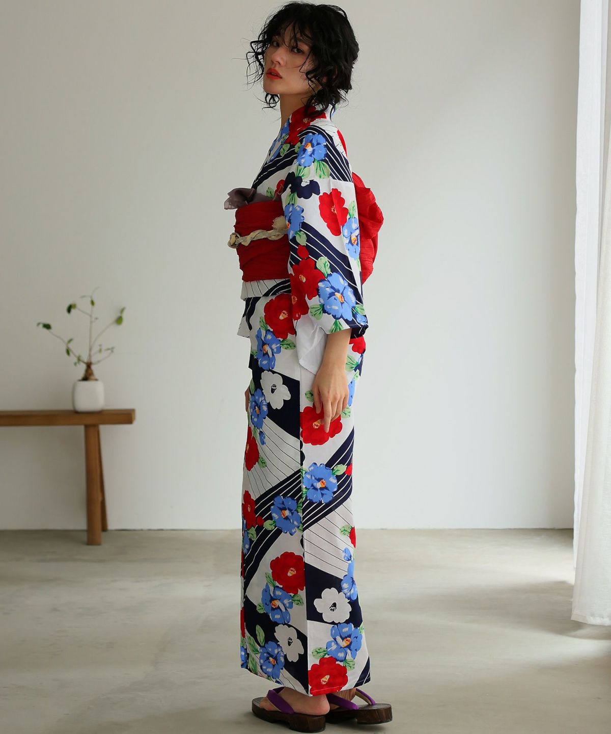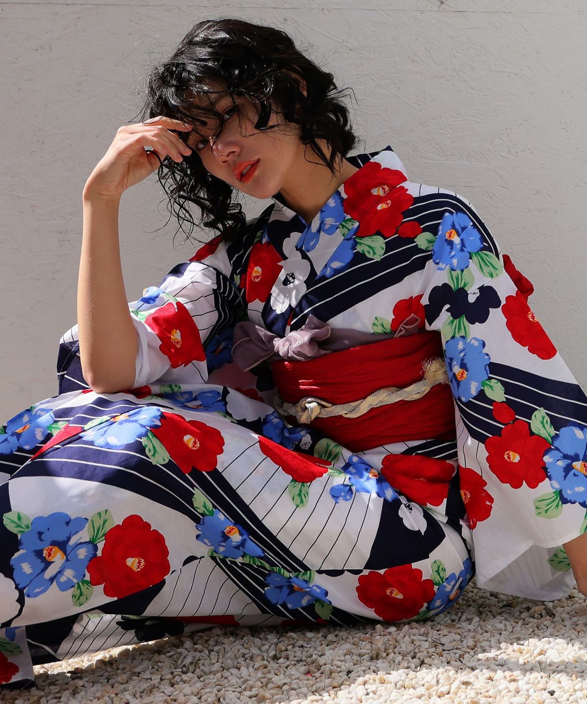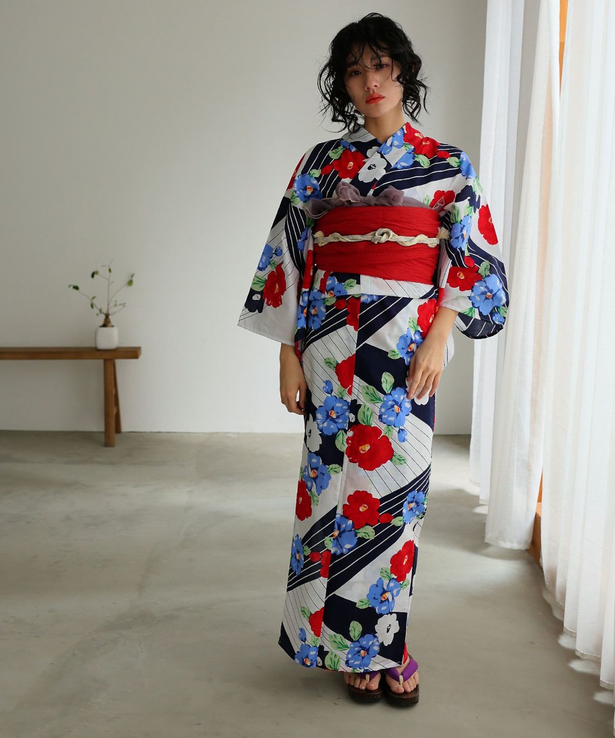 帯の組み合わせで、現代風に息づく浴衣の魅力。
