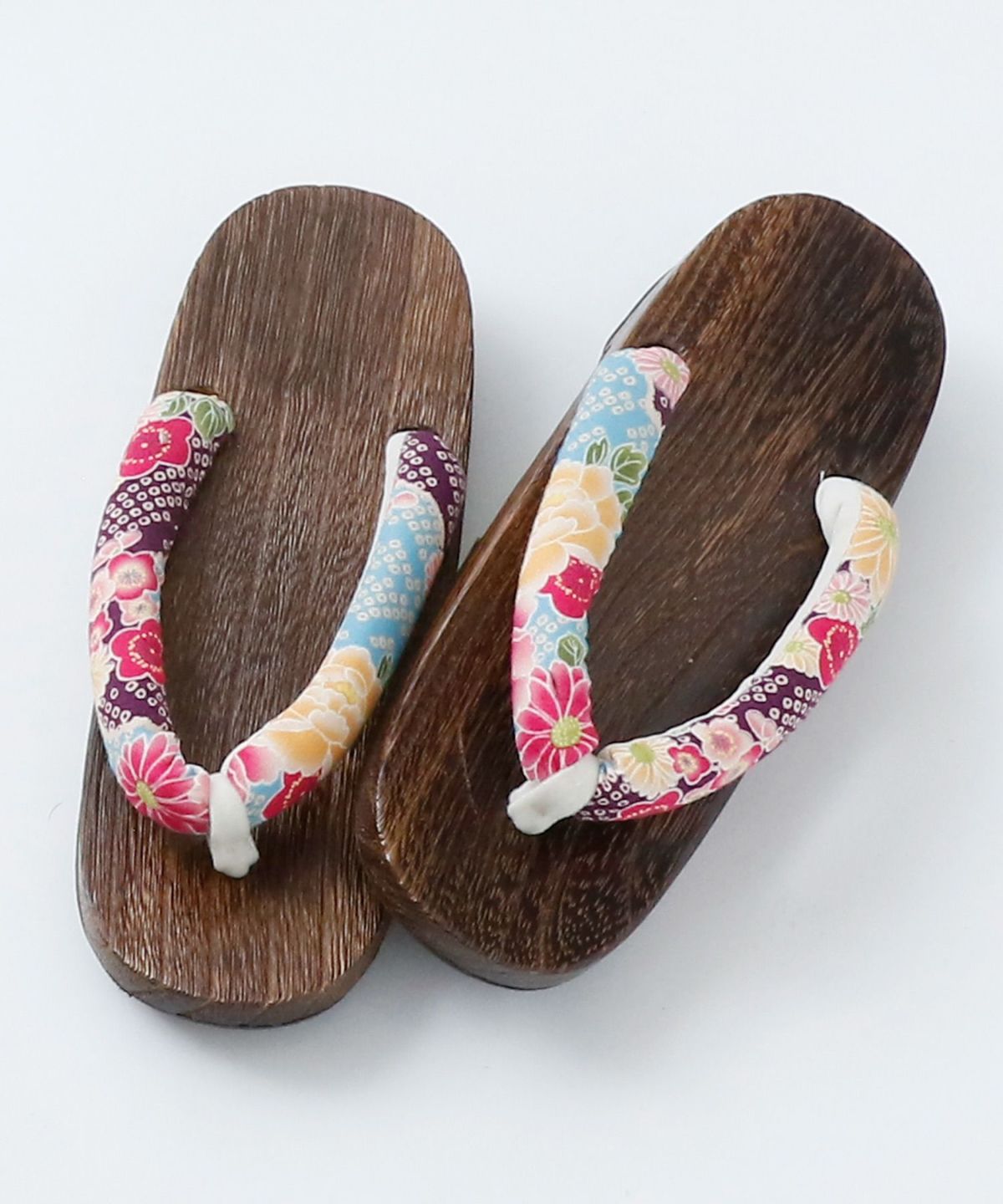 着崩れしないので初心者さんも安心。カラフルな鼻緒の下駄も可愛い♪