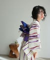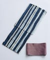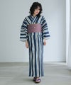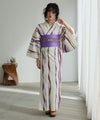 古風な雰囲気に、縦線が彩るセット浴衣。伝統とモダンが融合した、夏の風にたなびく一枚です。