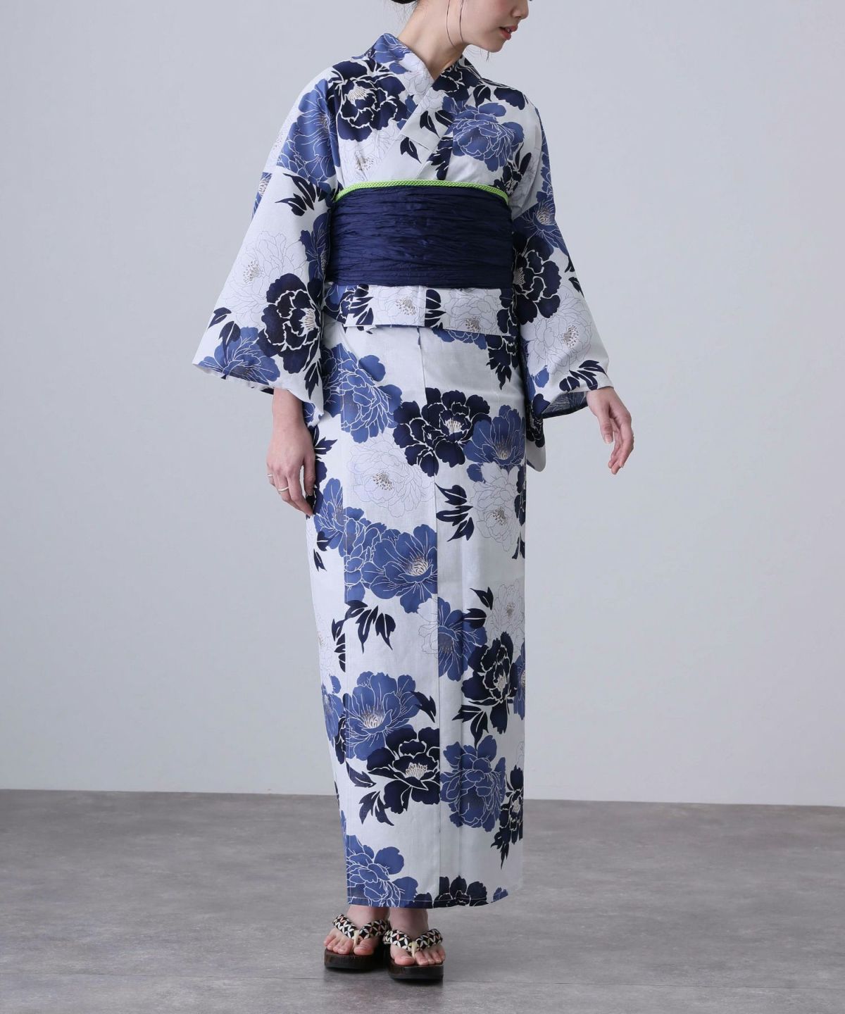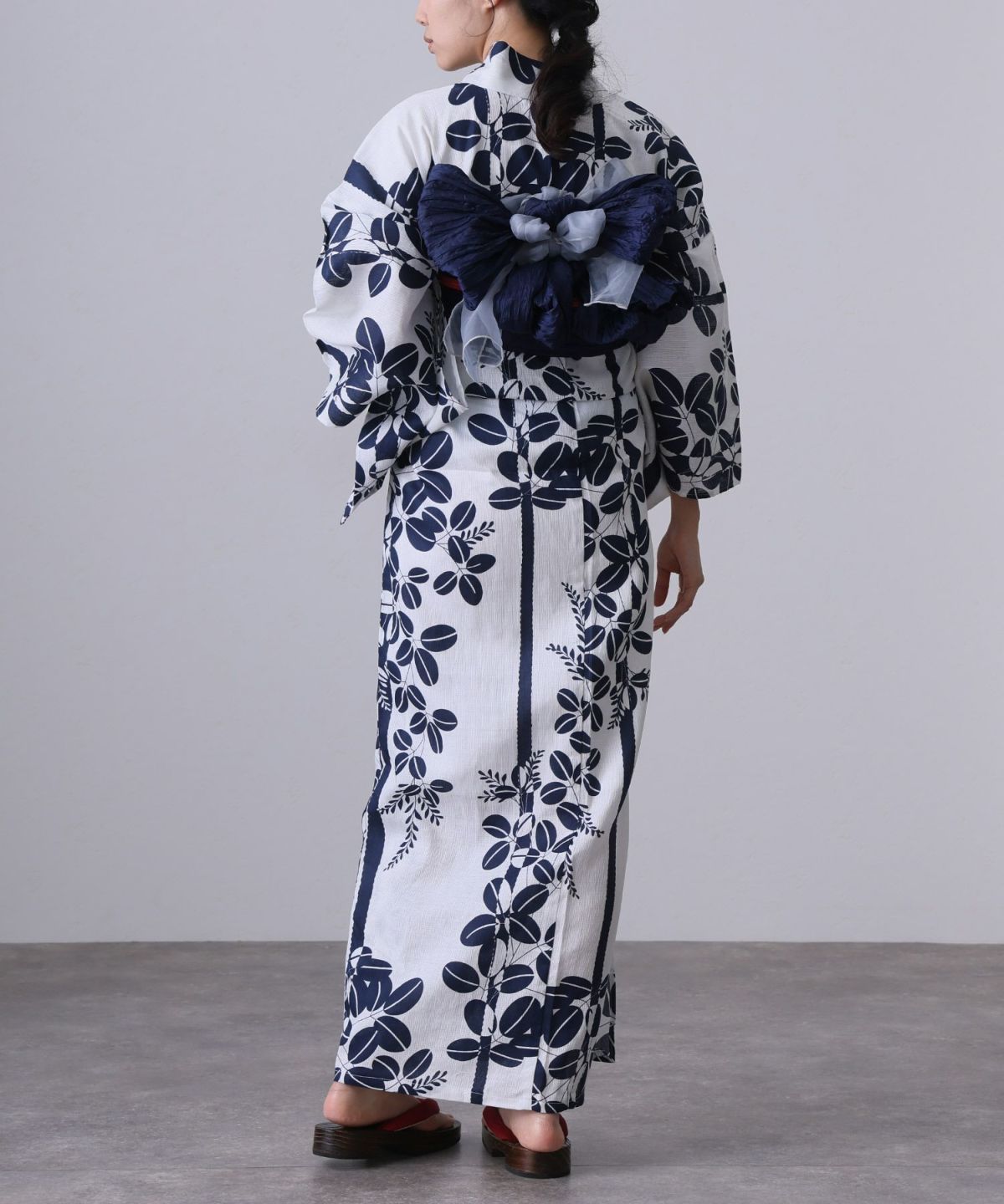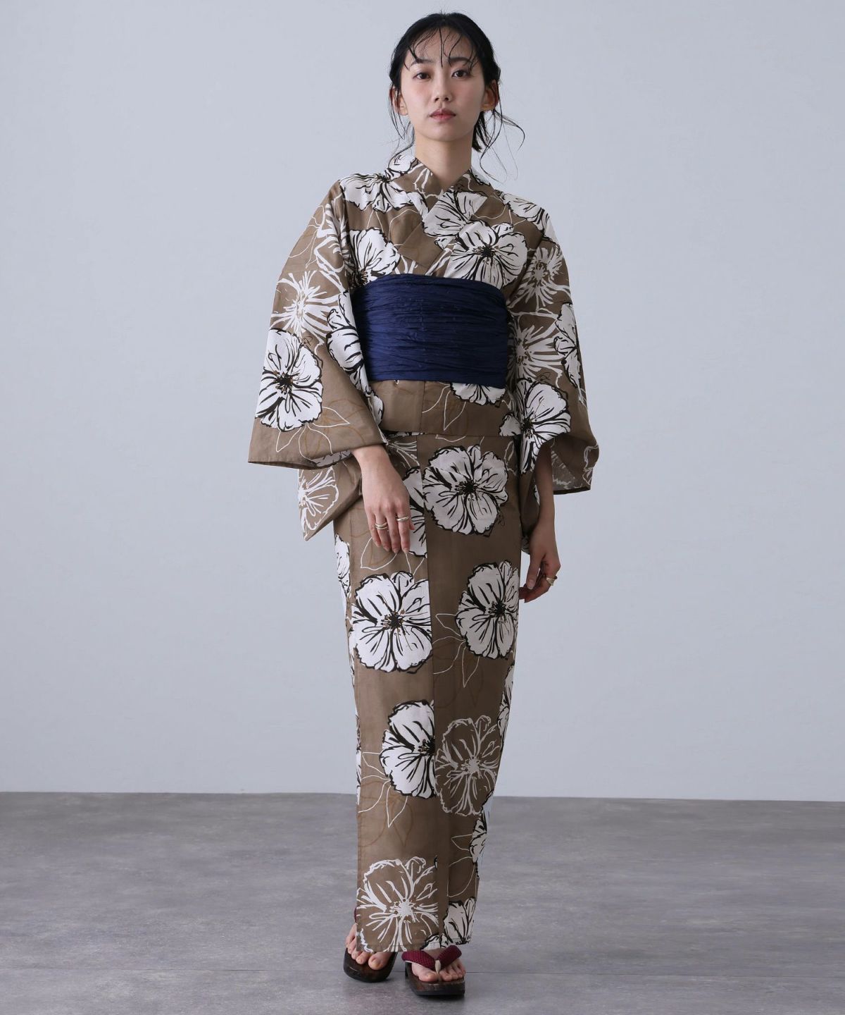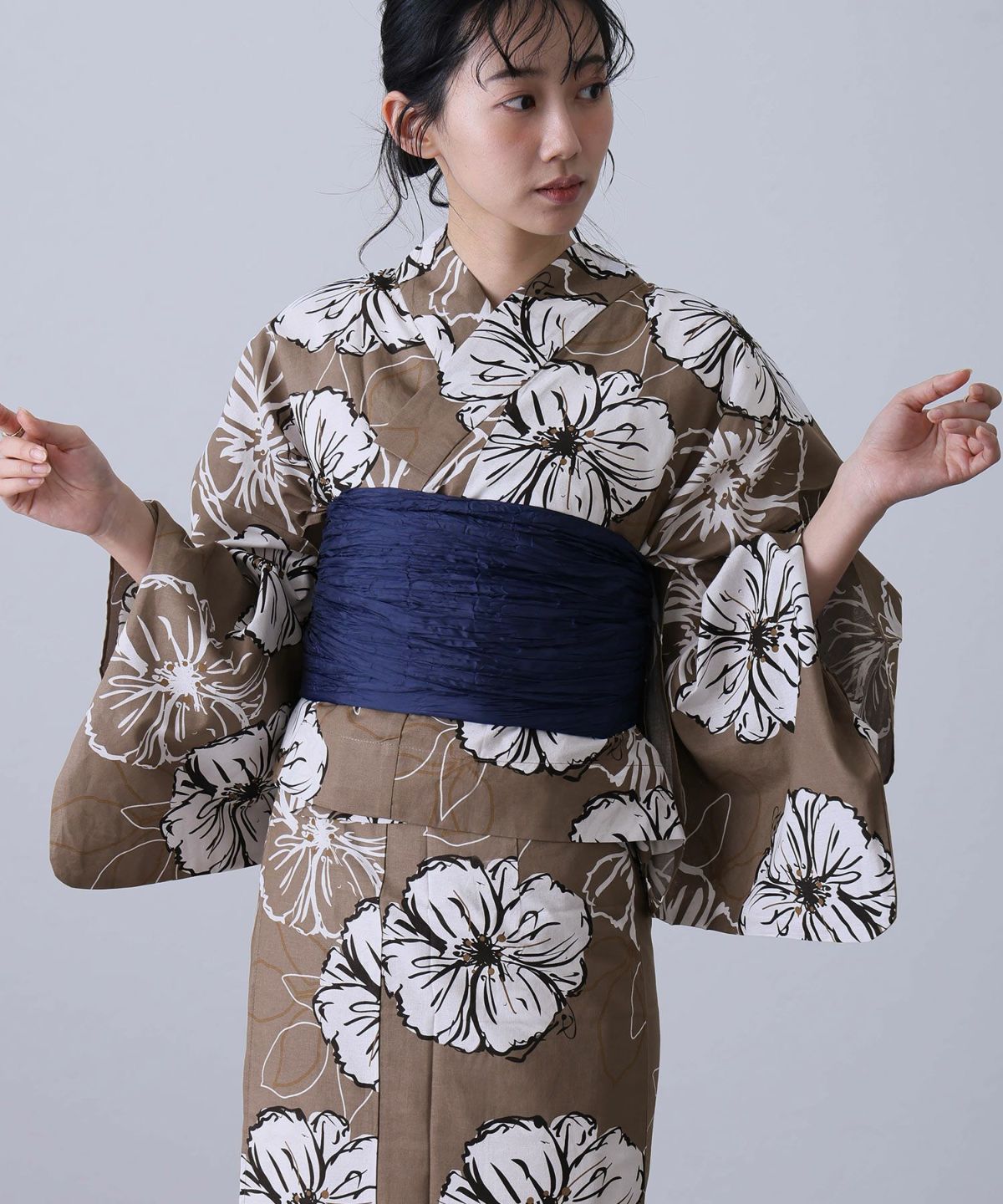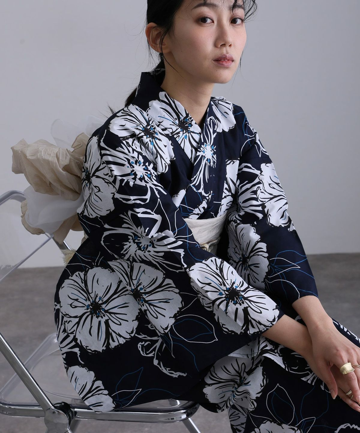 浴衣の王道色として、世代を問わず愛され続ける「紺・ネイビーの浴衣」。凛とした佇まいと知的な印象を与え、日本人の肌色にも美しく映えることから、初めての一着としても、長くご愛用いただく一着としても最適です。 紺・ネイビーの浴衣が持つ最大の魅力は、合わせる帯や小物次第で、多彩な表情を見せるその万能性にあります。例えば、白やシルバー系の帯を合わせれば、清涼感あふれる上品でクールな装いに。クリーム色や生成り色の帯を選べば、硬さが和らぎ、優しく落ち着いた雰囲気を演出できます。