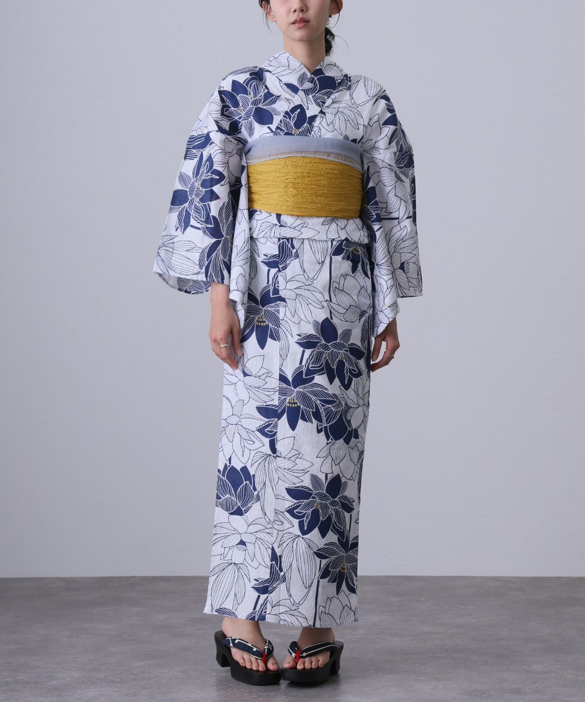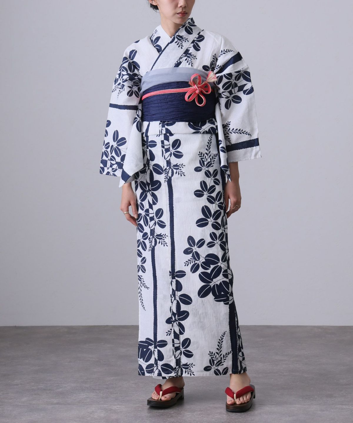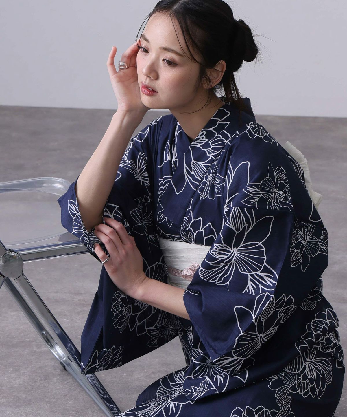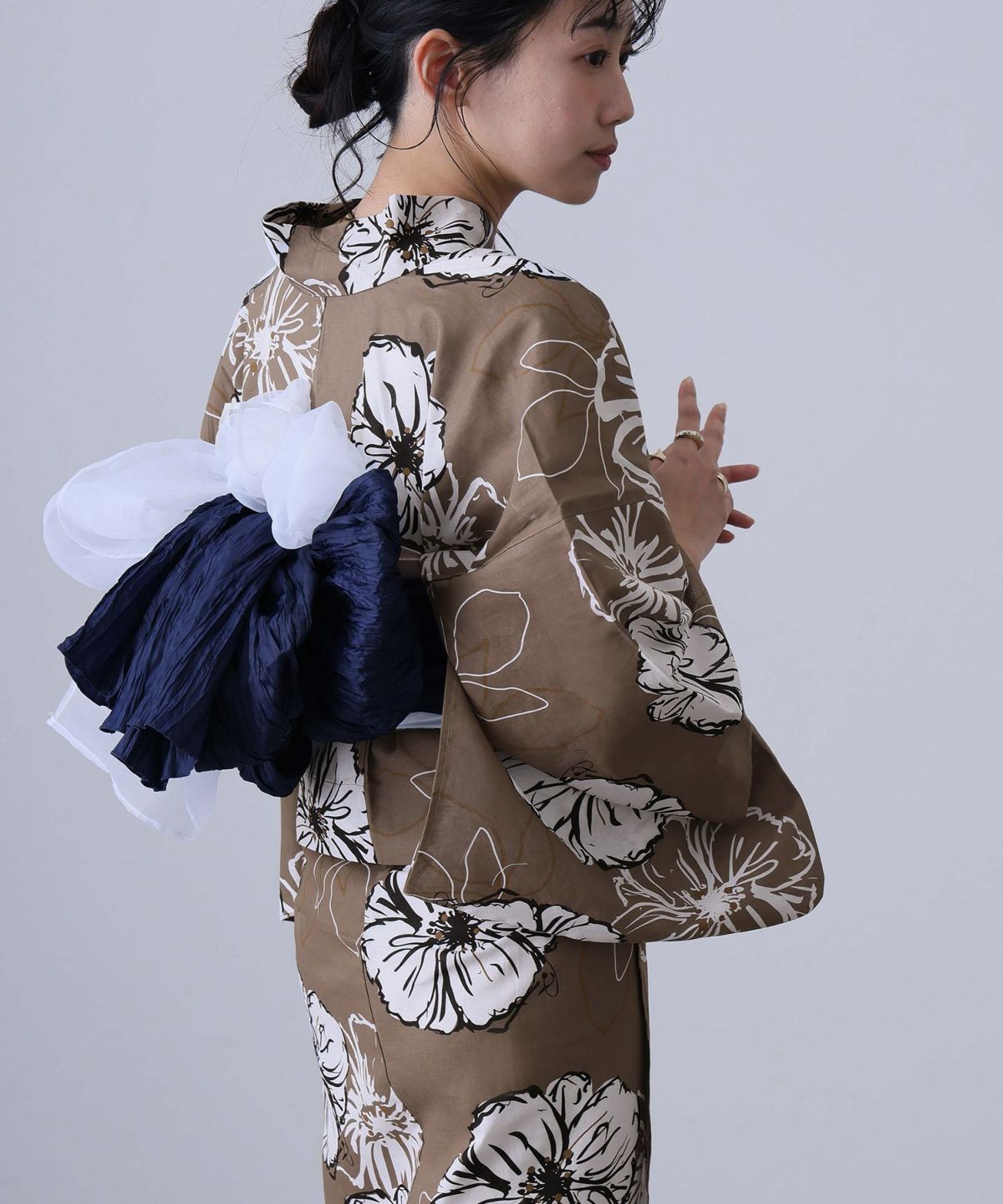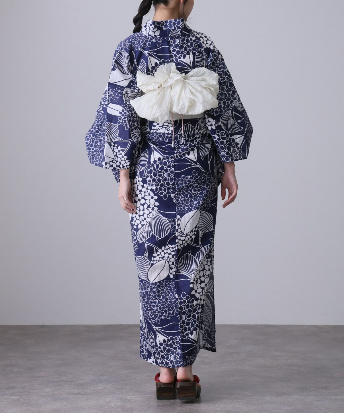 浴衣の王道色として、世代を問わず愛され続ける「紺・ネイビーの浴衣」。凛とした佇まいと知的な印象を与え、日本人の肌色にも美しく映えることから、初めての一着としても、長くご愛用いただく一着としても最適です。 紺・ネイビーの浴衣が持つ最大の魅力は、合わせる帯や小物次第で、多彩な表情を見せるその万能性にあります。例えば、白やシルバー系の帯を合わせれば、清涼感あふれる上品でクールな装いに。クリーム色や生成り色の帯を選べば、硬さが和らぎ、優しく落ち着いた雰囲気を演出できます。