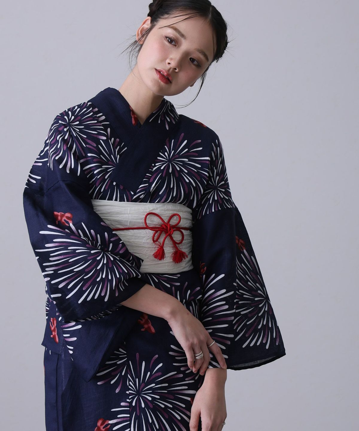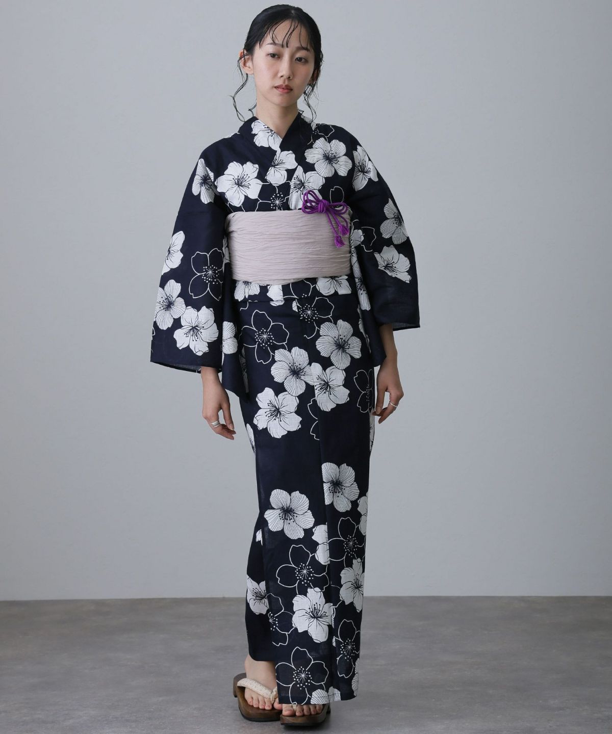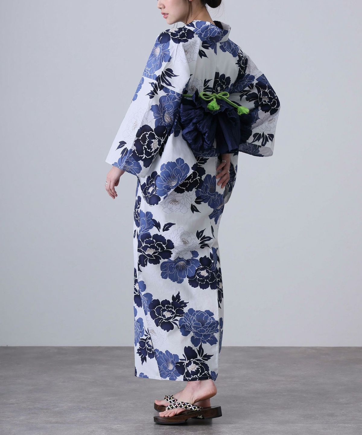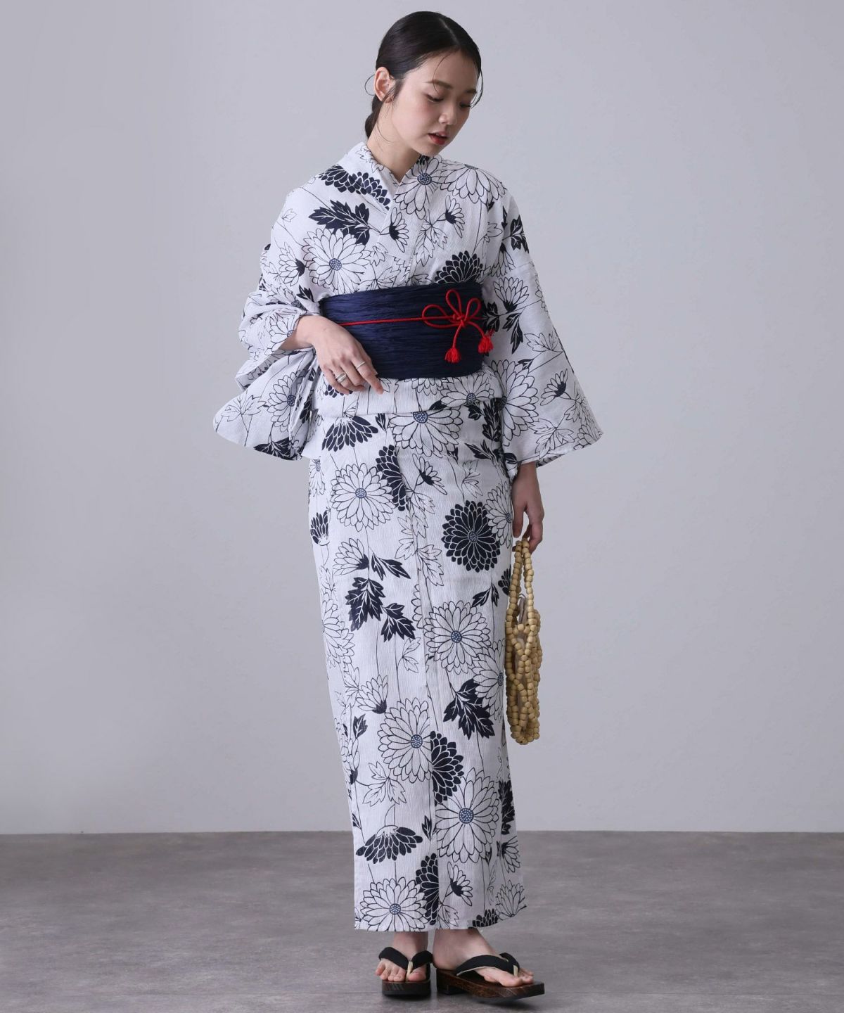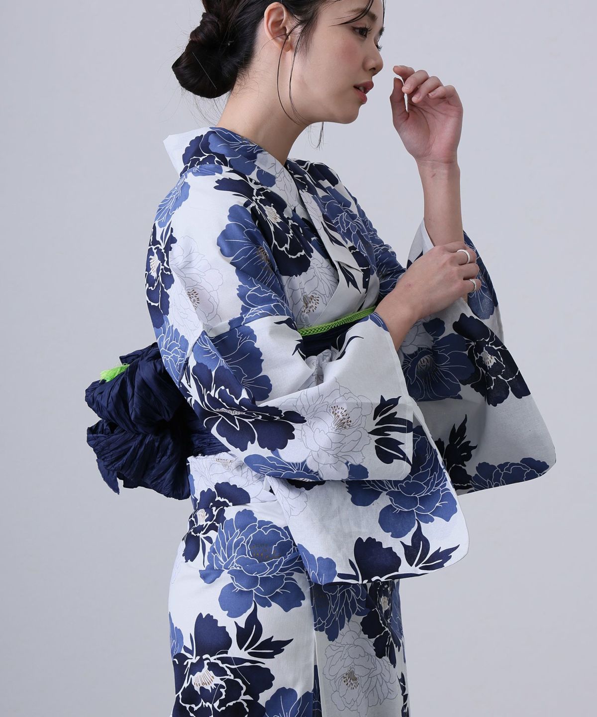 浴衣の王道色として、世代を問わず愛され続ける「紺・ネイビーの浴衣」。凛とした佇まいと知的な印象を与え、日本人の肌色にも美しく映えることから、初めての一着としても、長くご愛用いただく一着としても最適です。 紺・ネイビーの浴衣が持つ最大の魅力は、合わせる帯や小物次第で、多彩な表情を見せるその万能性にあります。例えば、白やシルバー系の帯を合わせれば、清涼感あふれる上品でクールな装いに。クリーム色や生成り色の帯を選べば、硬さが和らぎ、優しく落ち着いた雰囲気を演出できます。