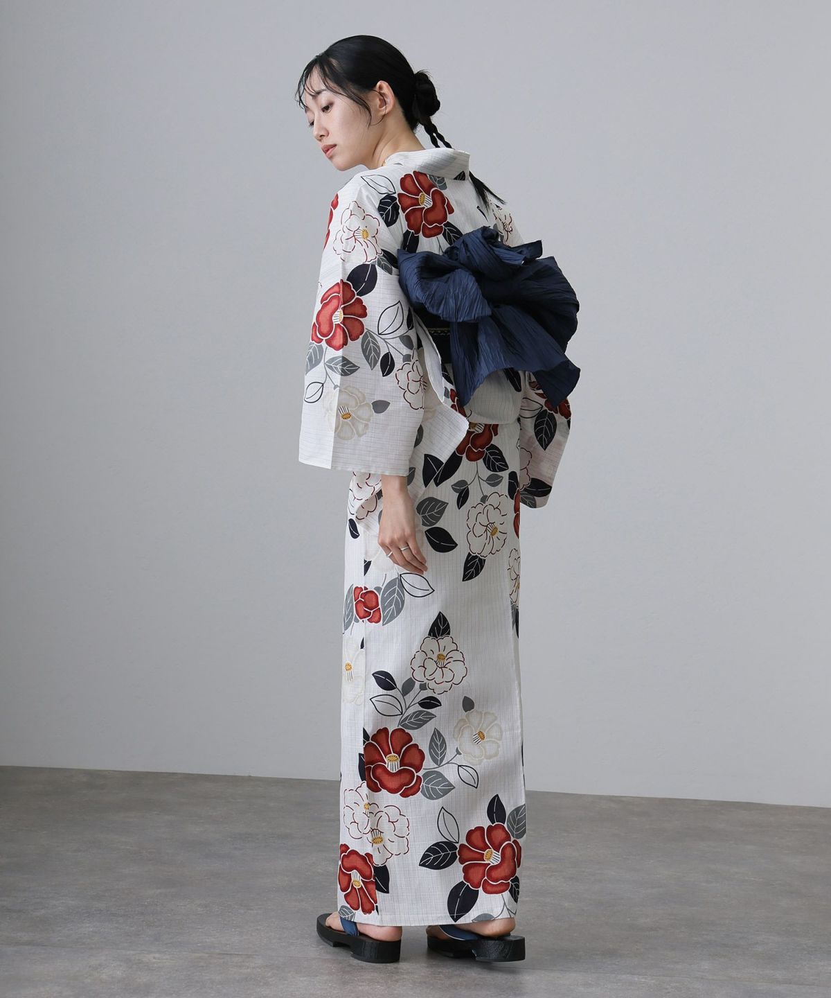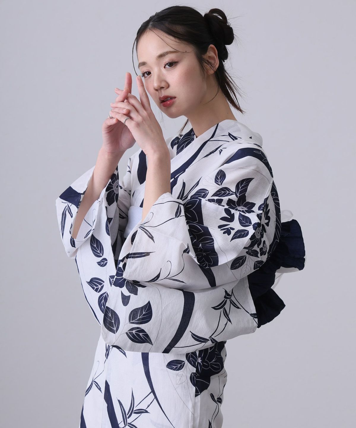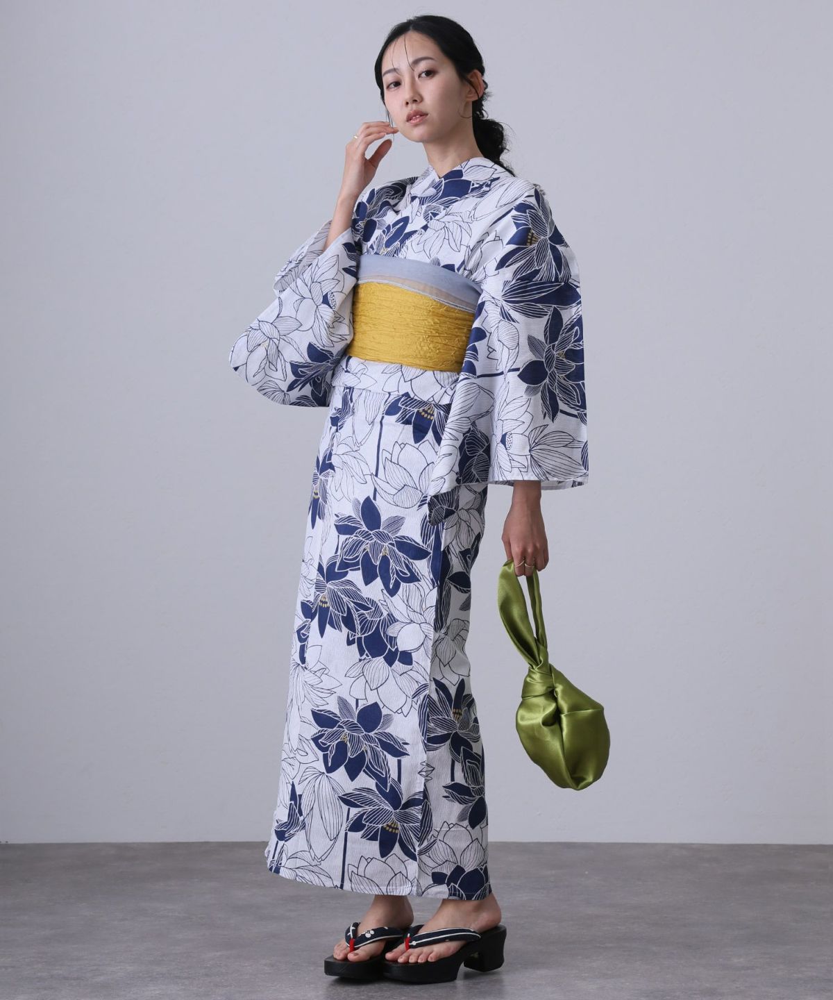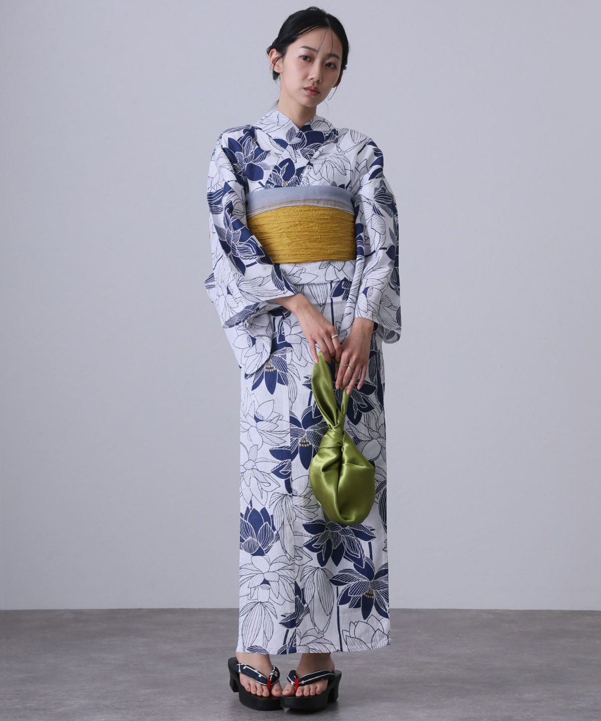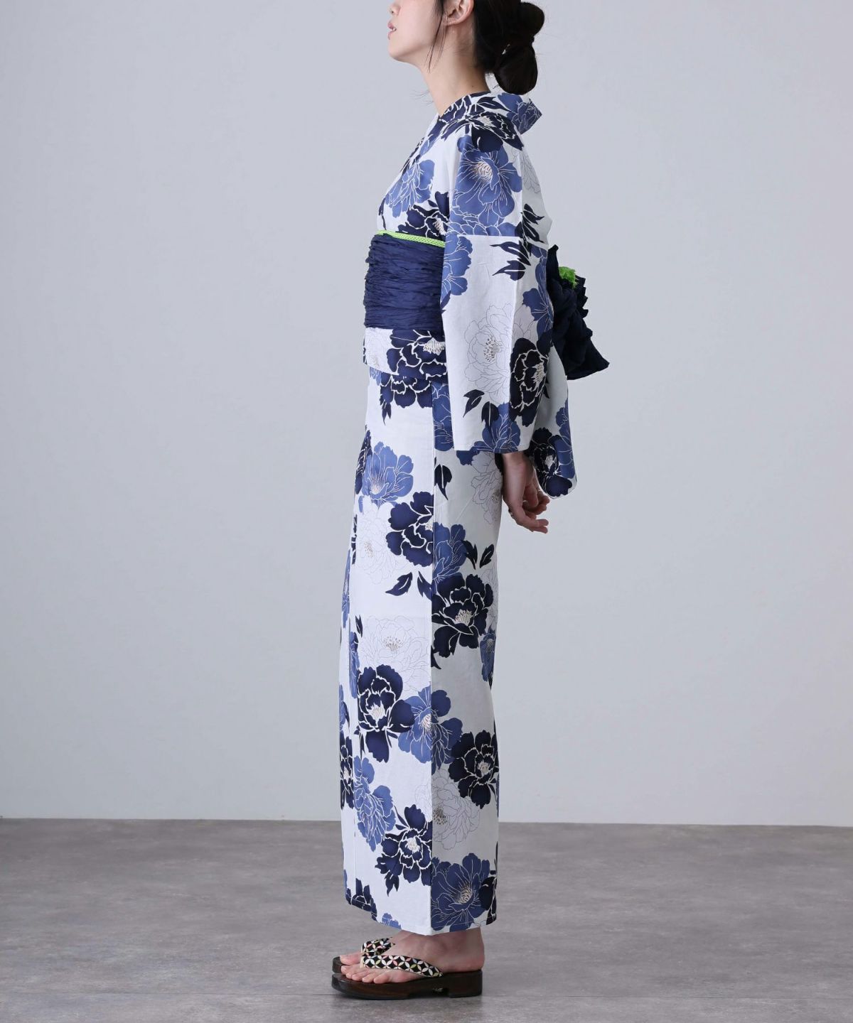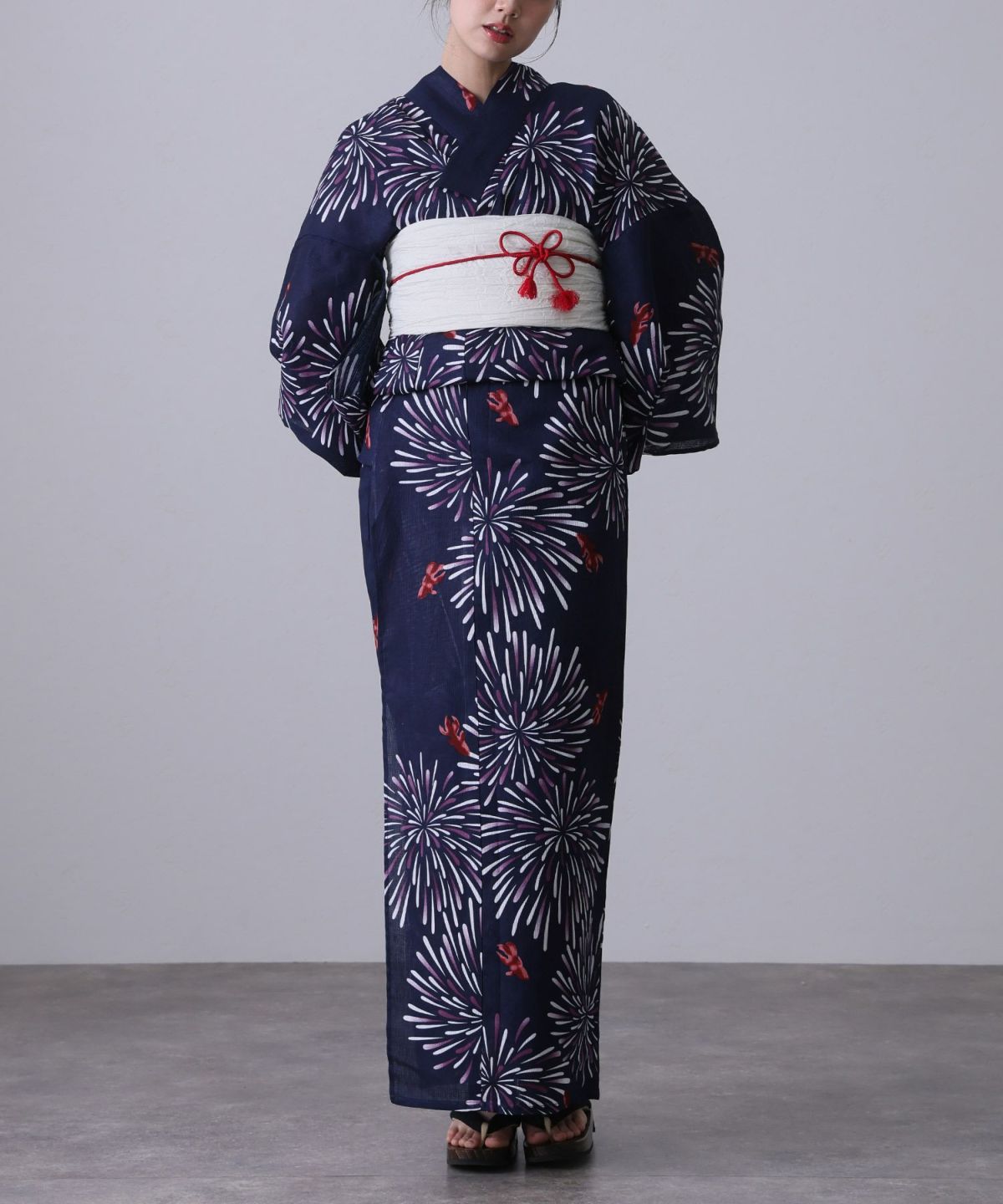 浴衣の王道色として、世代を問わず愛され続ける「紺・ネイビーの浴衣」。凛とした佇まいと知的な印象を与え、日本人の肌色にも美しく映えることから、初めての一着としても、長くご愛用いただく一着としても最適です。 紺・ネイビーの浴衣が持つ最大の魅力は、合わせる帯や小物次第で、多彩な表情を見せるその万能性にあります。例えば、白やシルバー系の帯を合わせれば、清涼感あふれる上品でクールな装いに。クリーム色や生成り色の帯を選べば、硬さが和らぎ、優しく落ち着いた雰囲気を演出できます。