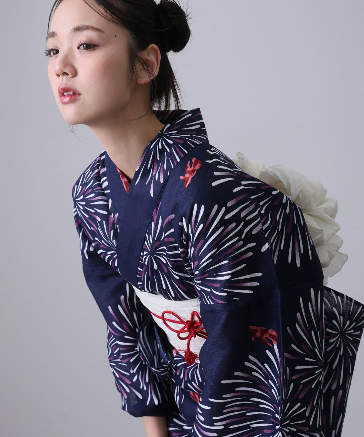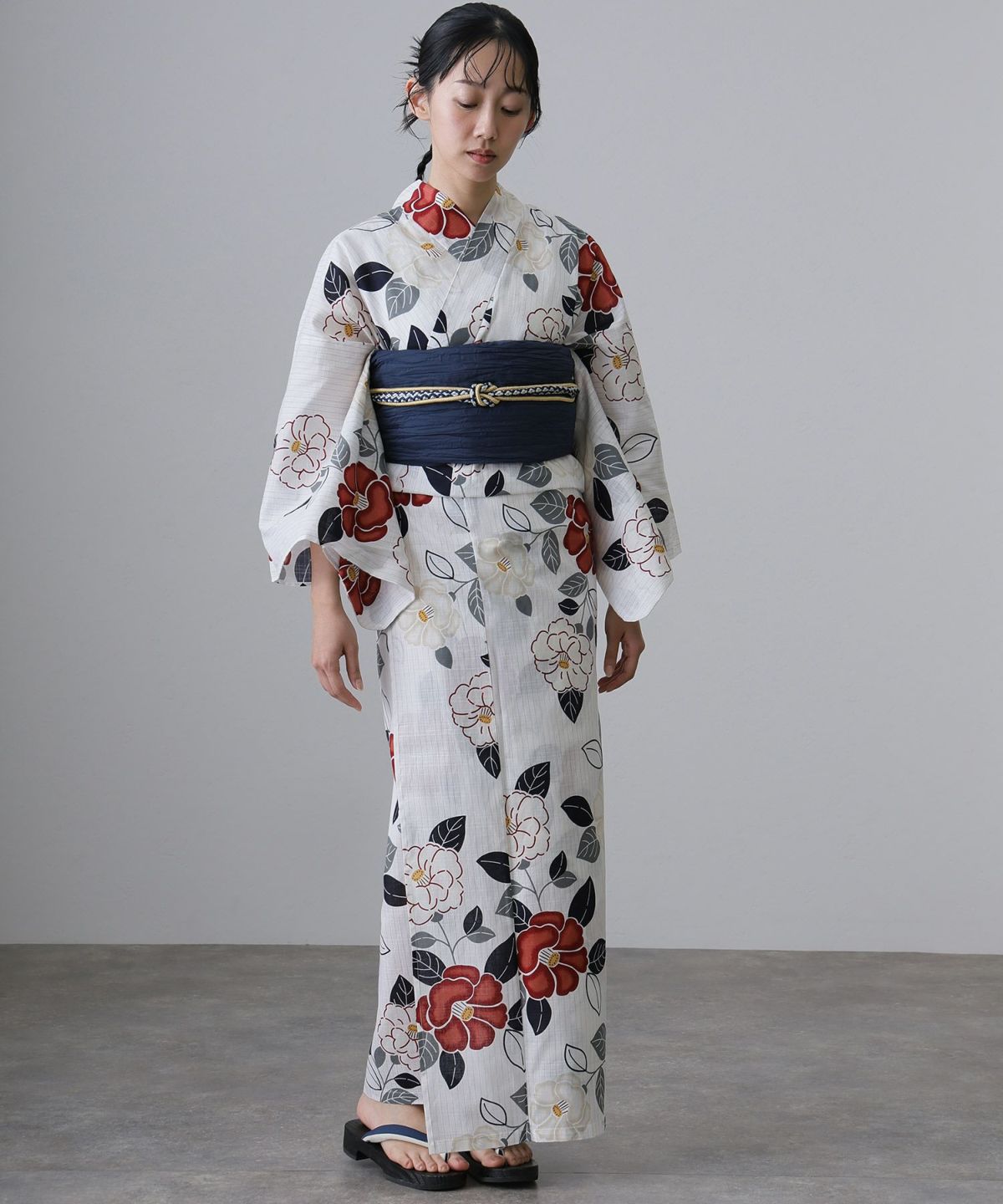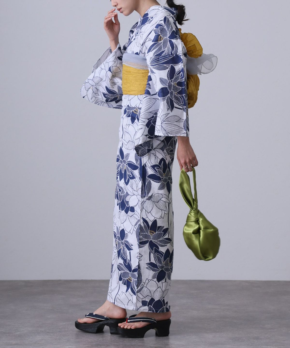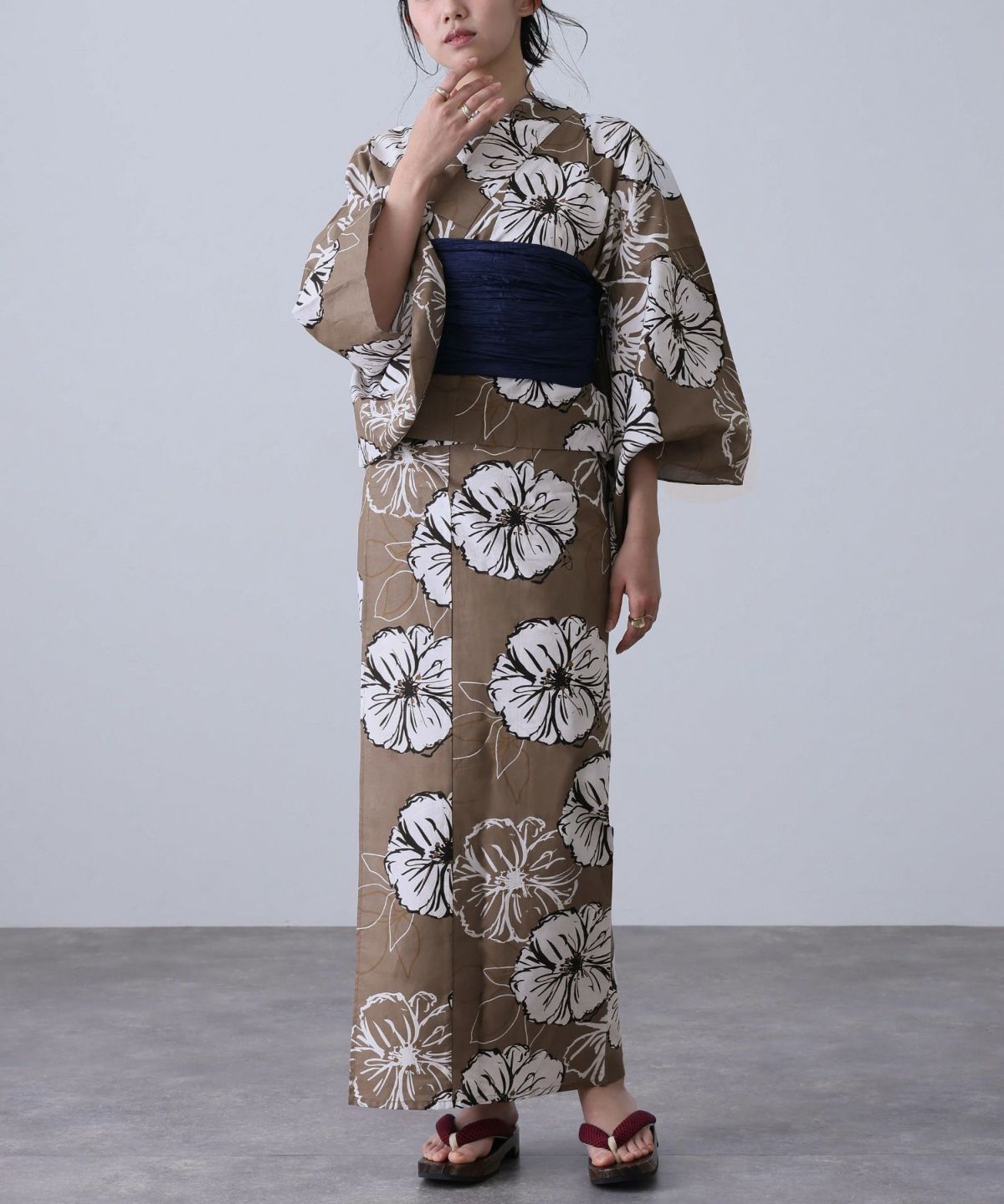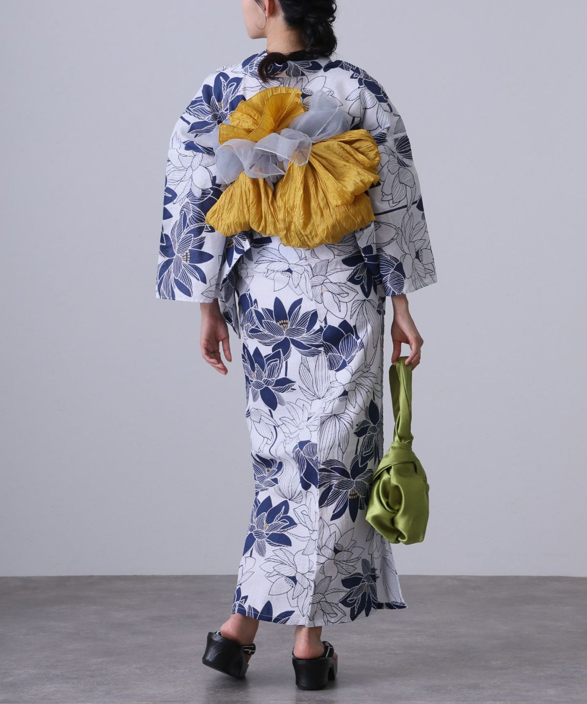 浴衣の王道色として、世代を問わず愛され続ける「紺・ネイビーの浴衣」。凛とした佇まいと知的な印象を与え、日本人の肌色にも美しく映えることから、初めての一着としても、長くご愛用いただく一着としても最適です。 紺・ネイビーの浴衣が持つ最大の魅力は、合わせる帯や小物次第で、多彩な表情を見せるその万能性にあります。例えば、白やシルバー系の帯を合わせれば、清涼感あふれる上品でクールな装いに。クリーム色や生成り色の帯を選べば、硬さが和らぎ、優しく落ち着いた雰囲気を演出できます。