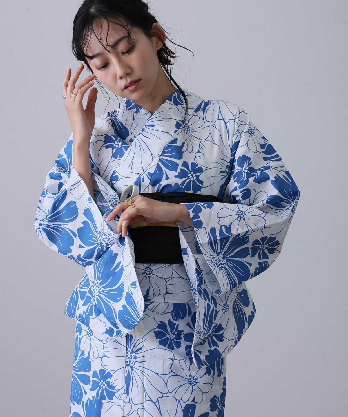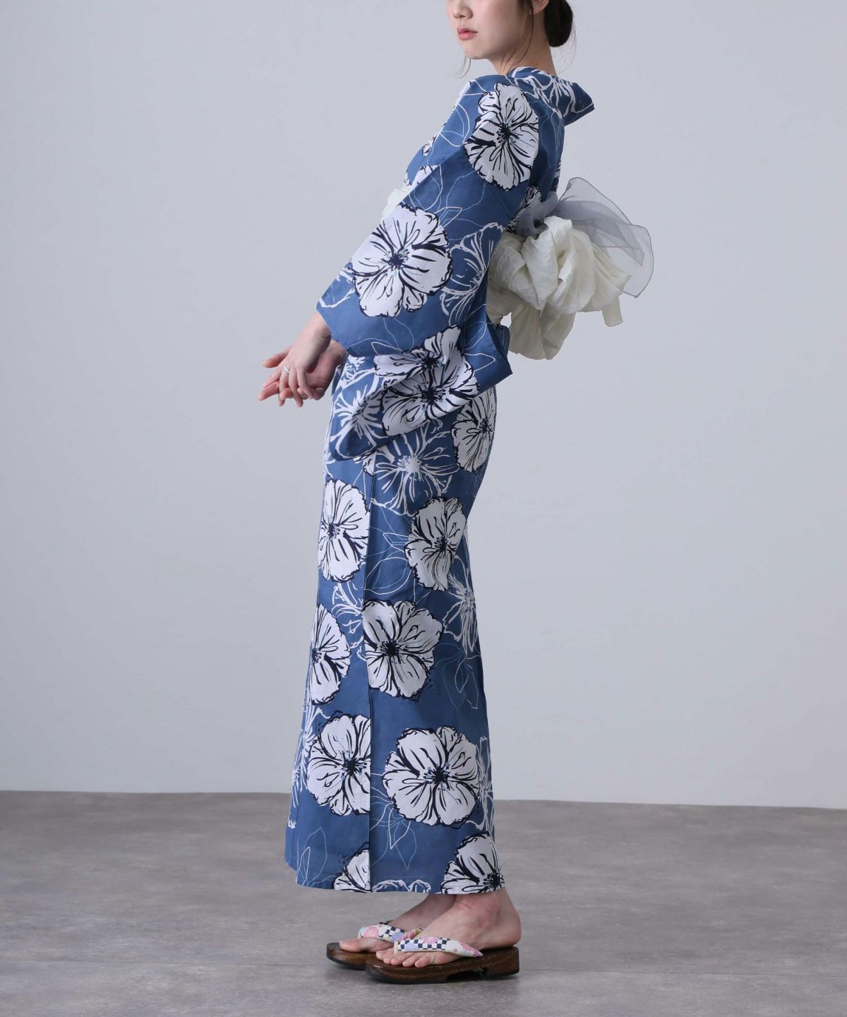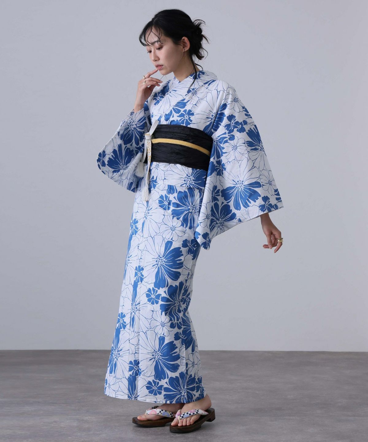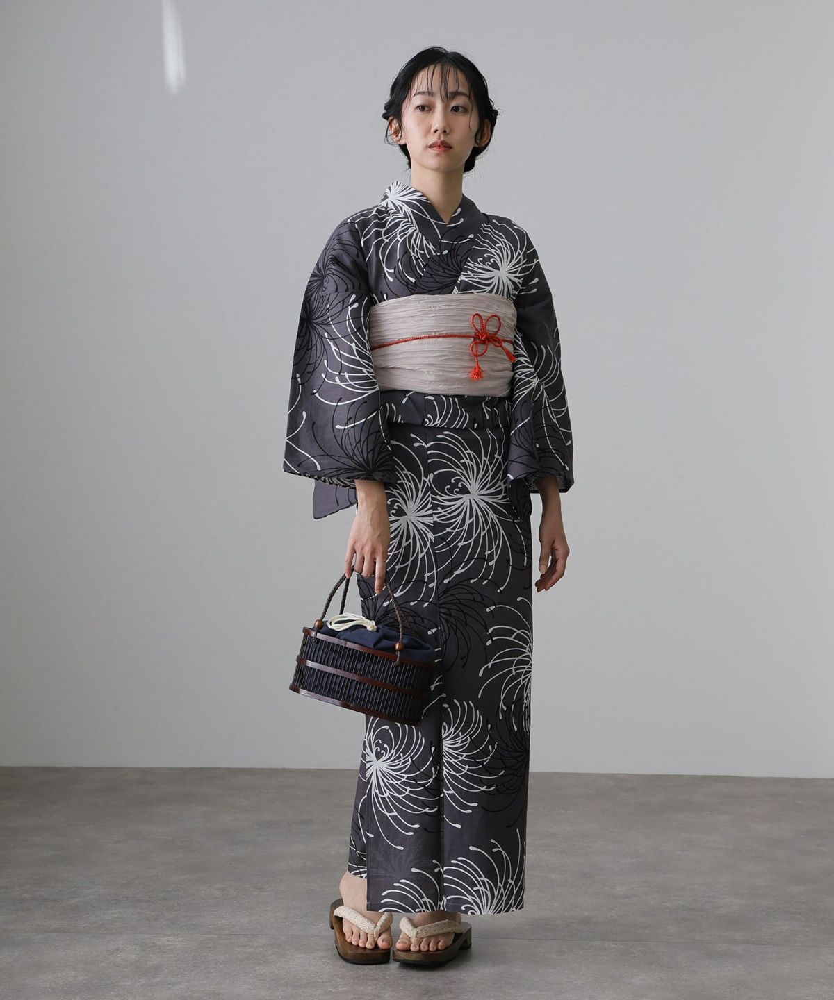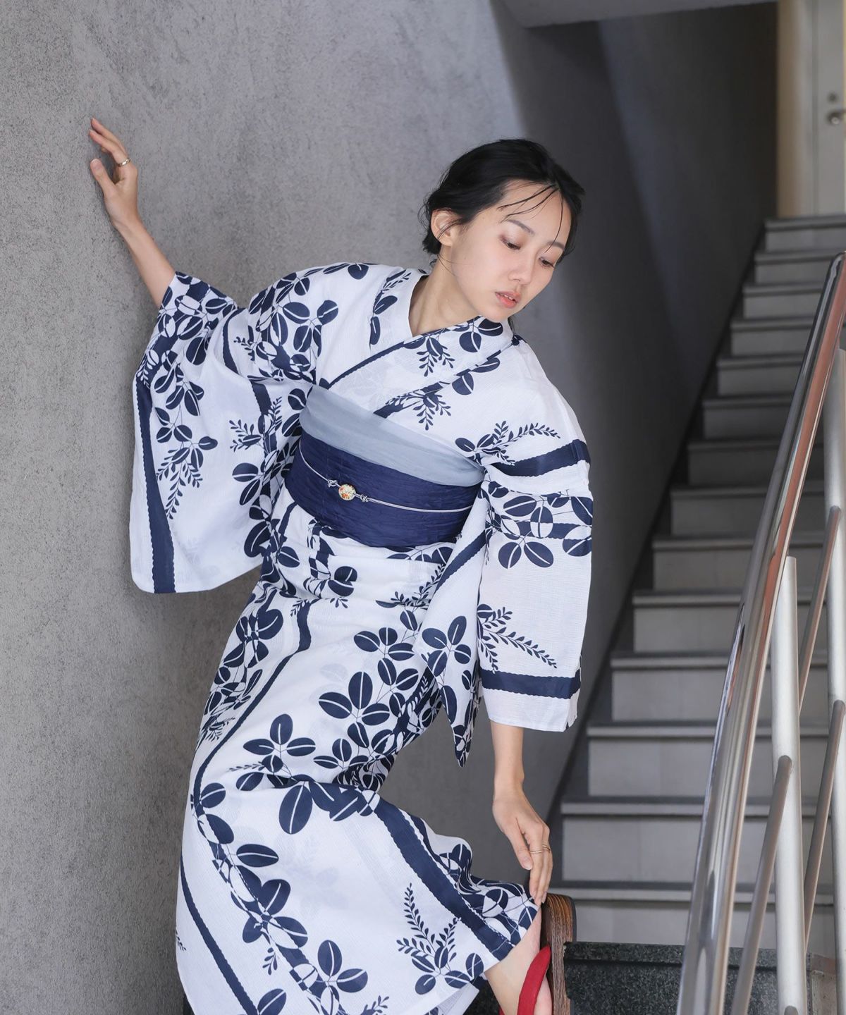 浴衣の王道色として、世代を問わず愛され続ける「紺・ネイビーの浴衣」。凛とした佇まいと知的な印象を与え、日本人の肌色にも美しく映えることから、初めての一着としても、長くご愛用いただく一着としても最適です。 紺・ネイビーの浴衣が持つ最大の魅力は、合わせる帯や小物次第で、多彩な表情を見せるその万能性にあります。例えば、白やシルバー系の帯を合わせれば、清涼感あふれる上品でクールな装いに。クリーム色や生成り色の帯を選べば、硬さが和らぎ、優しく落ち着いた雰囲気を演出できます。