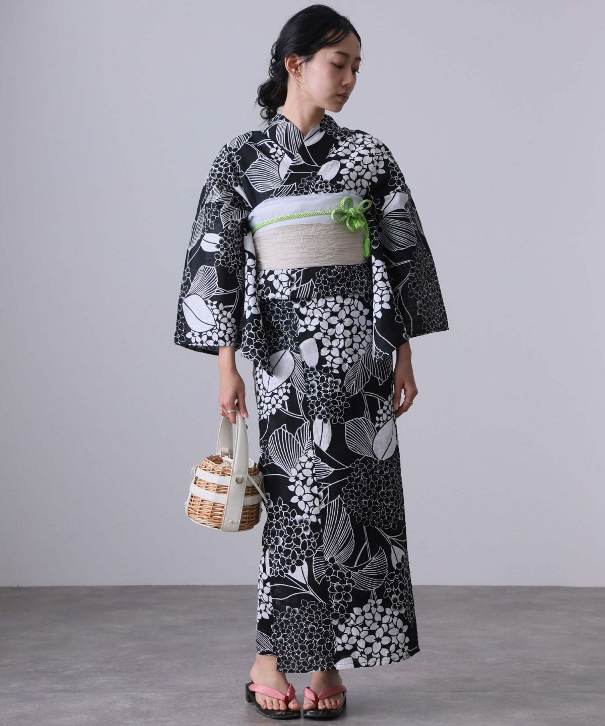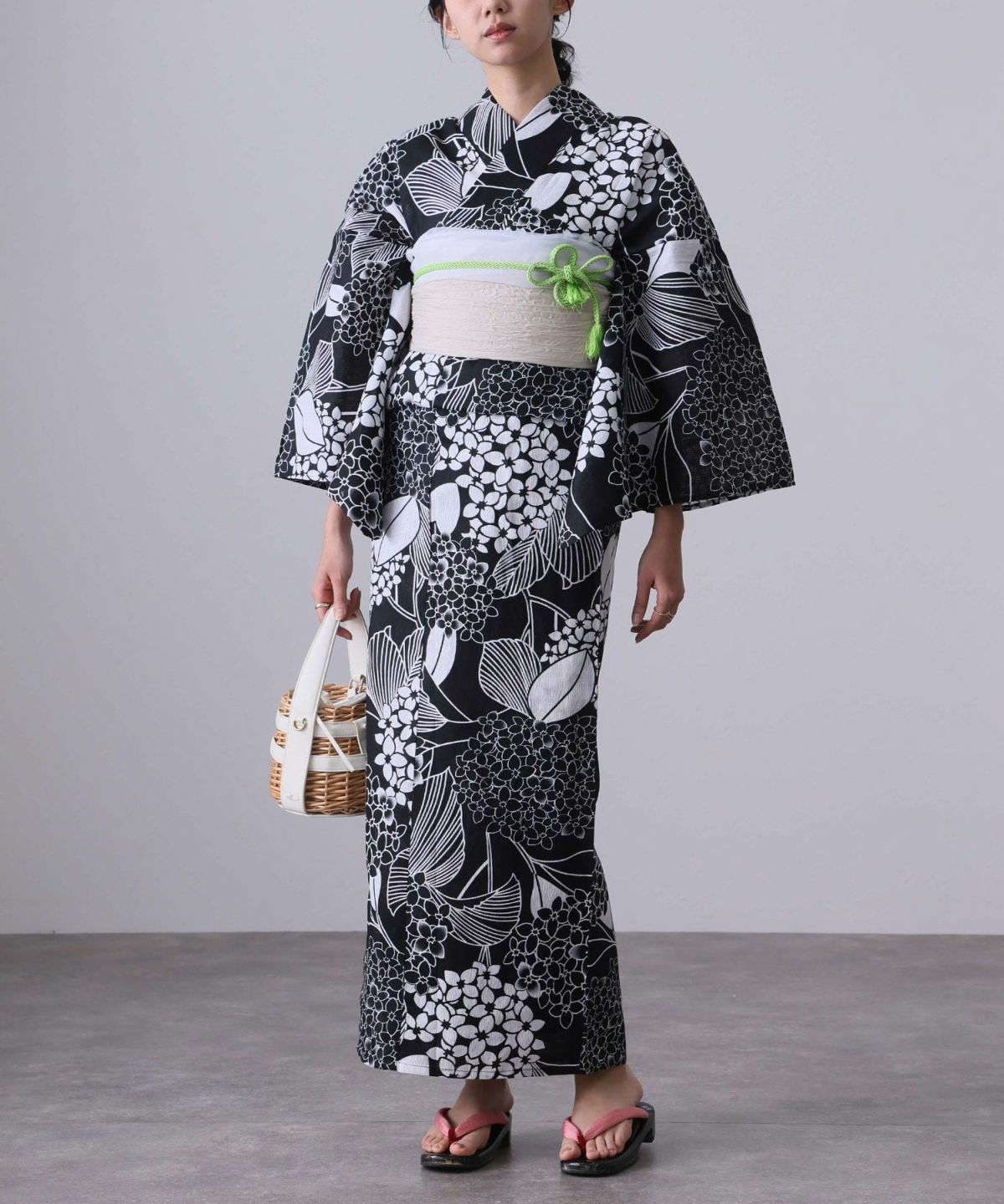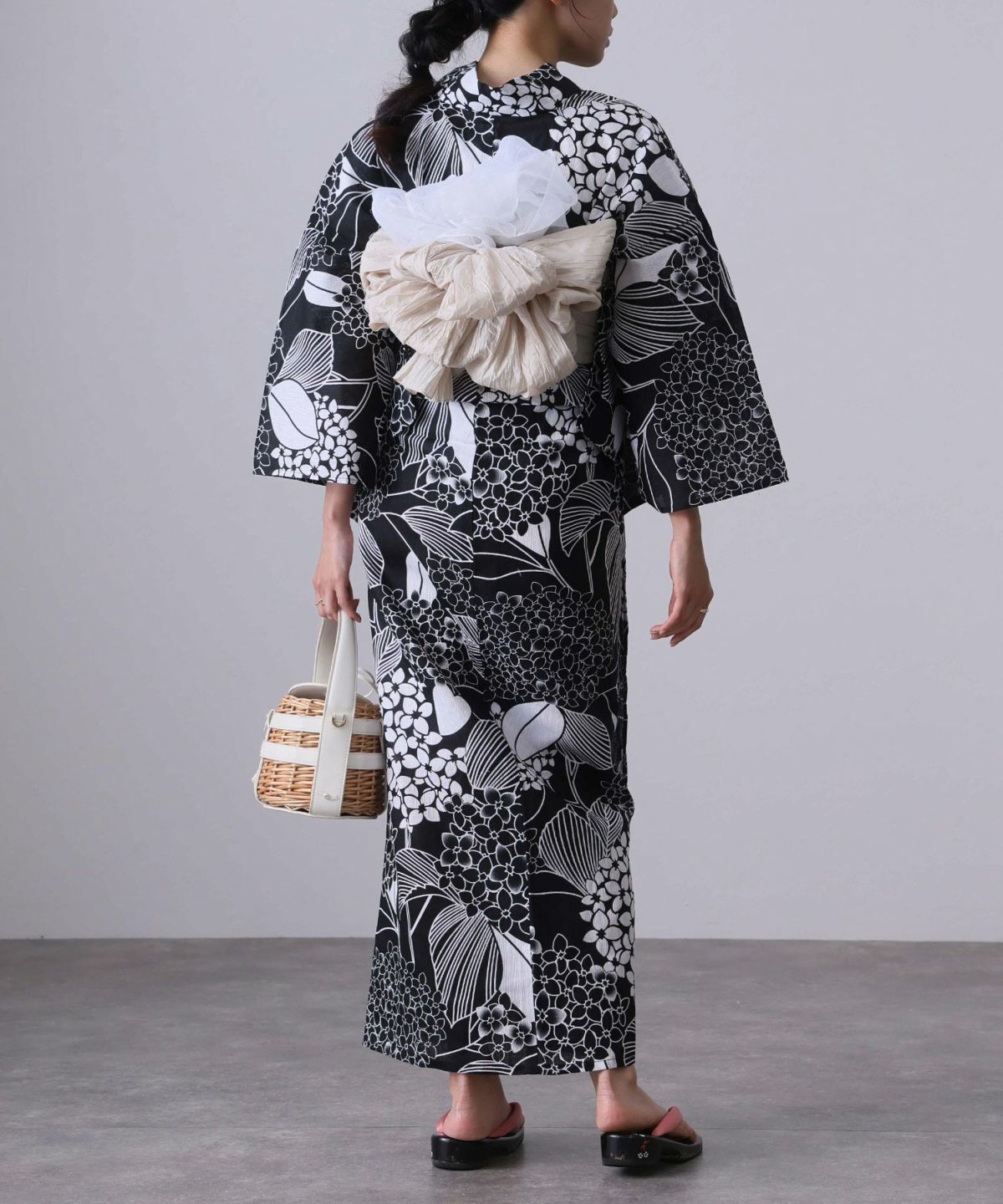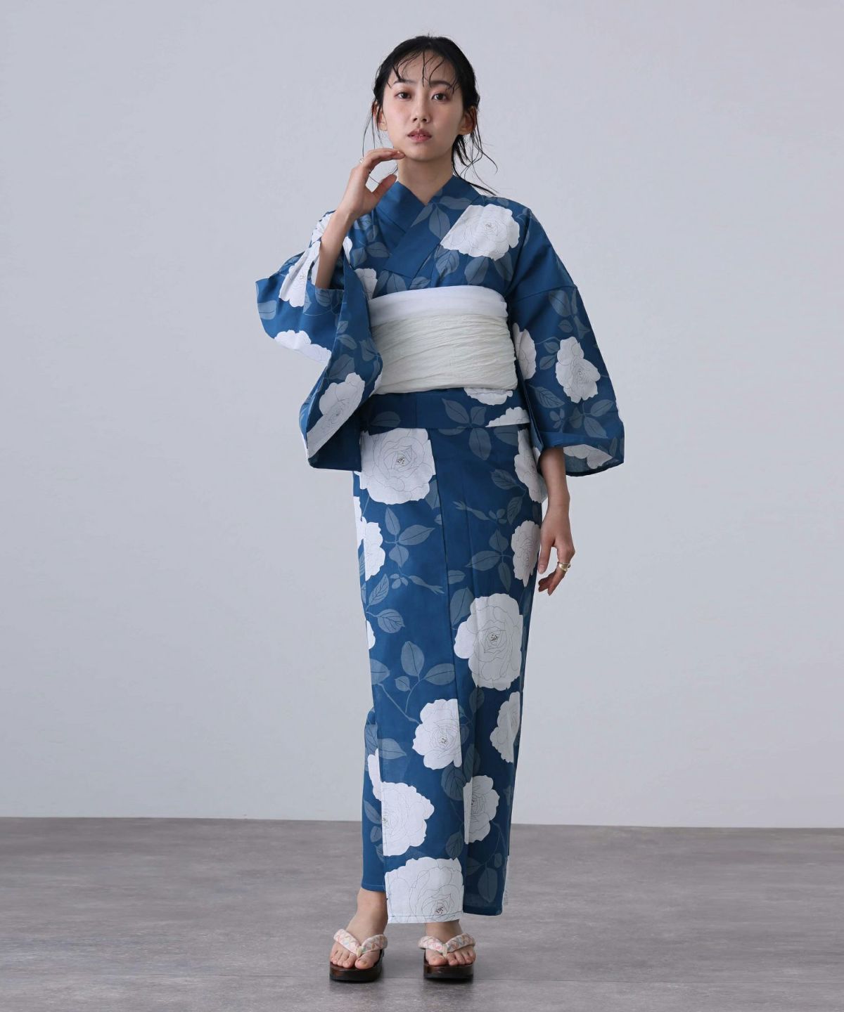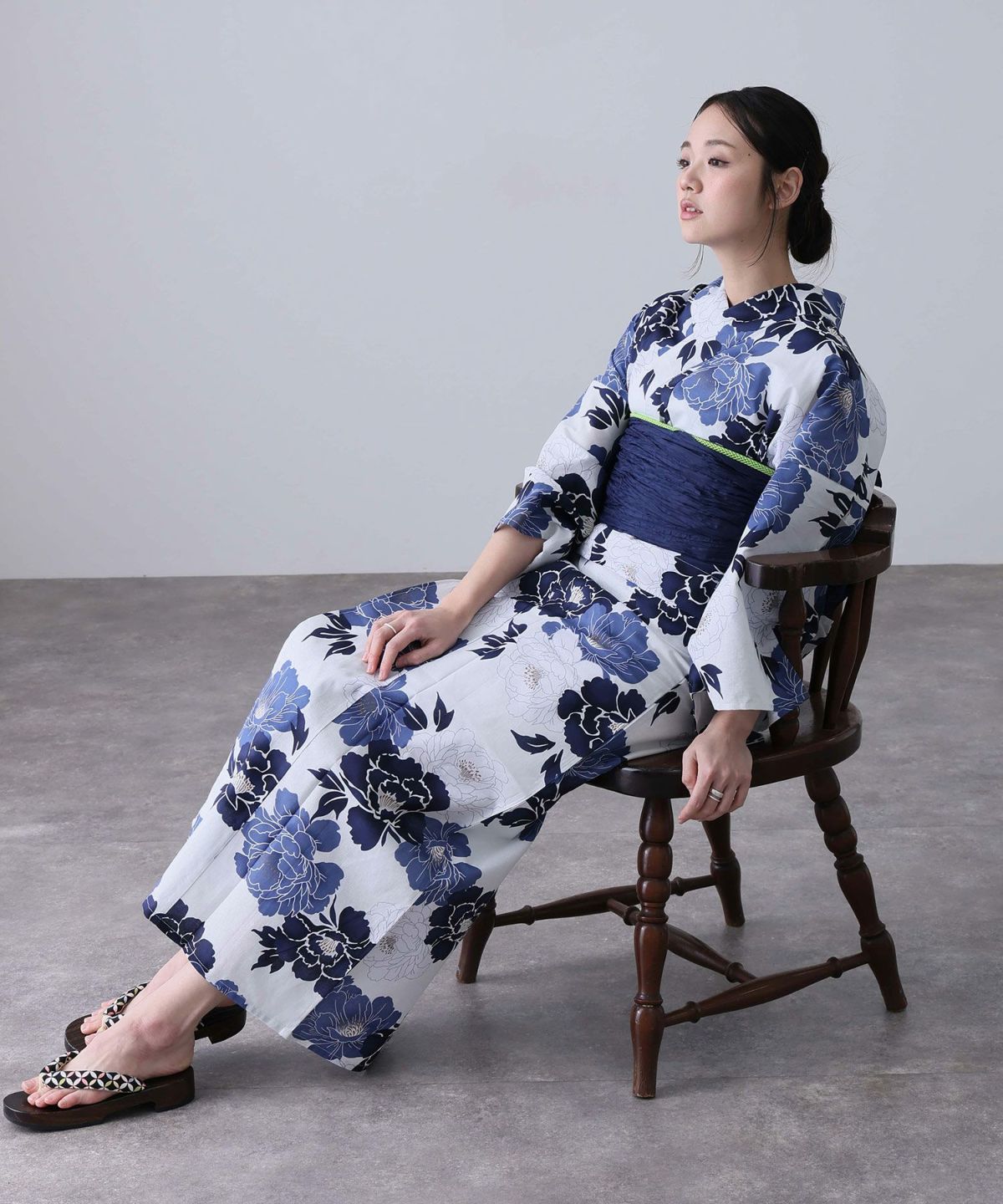 浴衣の王道色として、世代を問わず愛され続ける「紺・ネイビーの浴衣」。凛とした佇まいと知的な印象を与え、日本人の肌色にも美しく映えることから、初めての一着としても、長くご愛用いただく一着としても最適です。 紺・ネイビーの浴衣が持つ最大の魅力は、合わせる帯や小物次第で、多彩な表情を見せるその万能性にあります。例えば、白やシルバー系の帯を合わせれば、清涼感あふれる上品でクールな装いに。クリーム色や生成り色の帯を選べば、硬さが和らぎ、優しく落ち着いた雰囲気を演出できます。