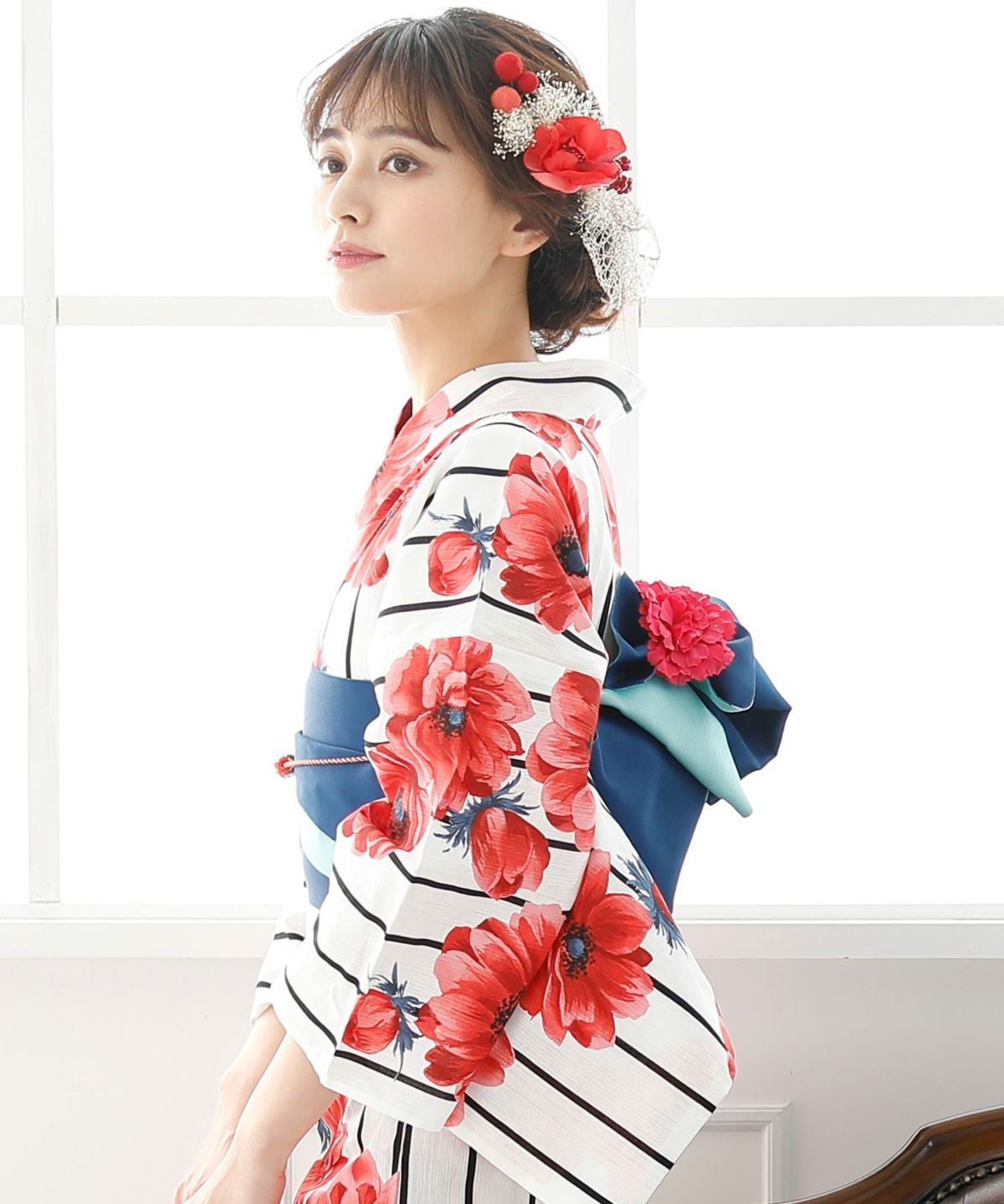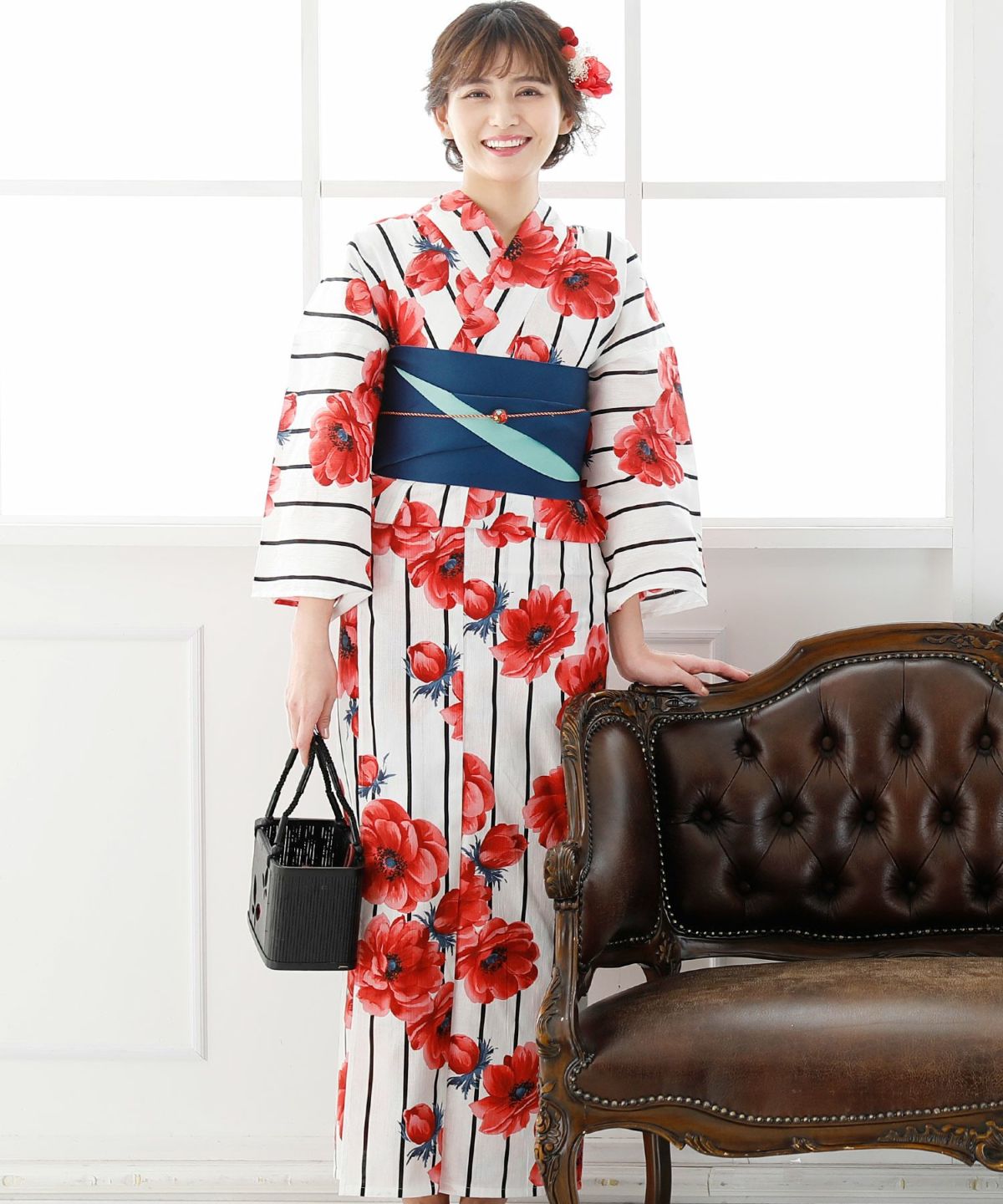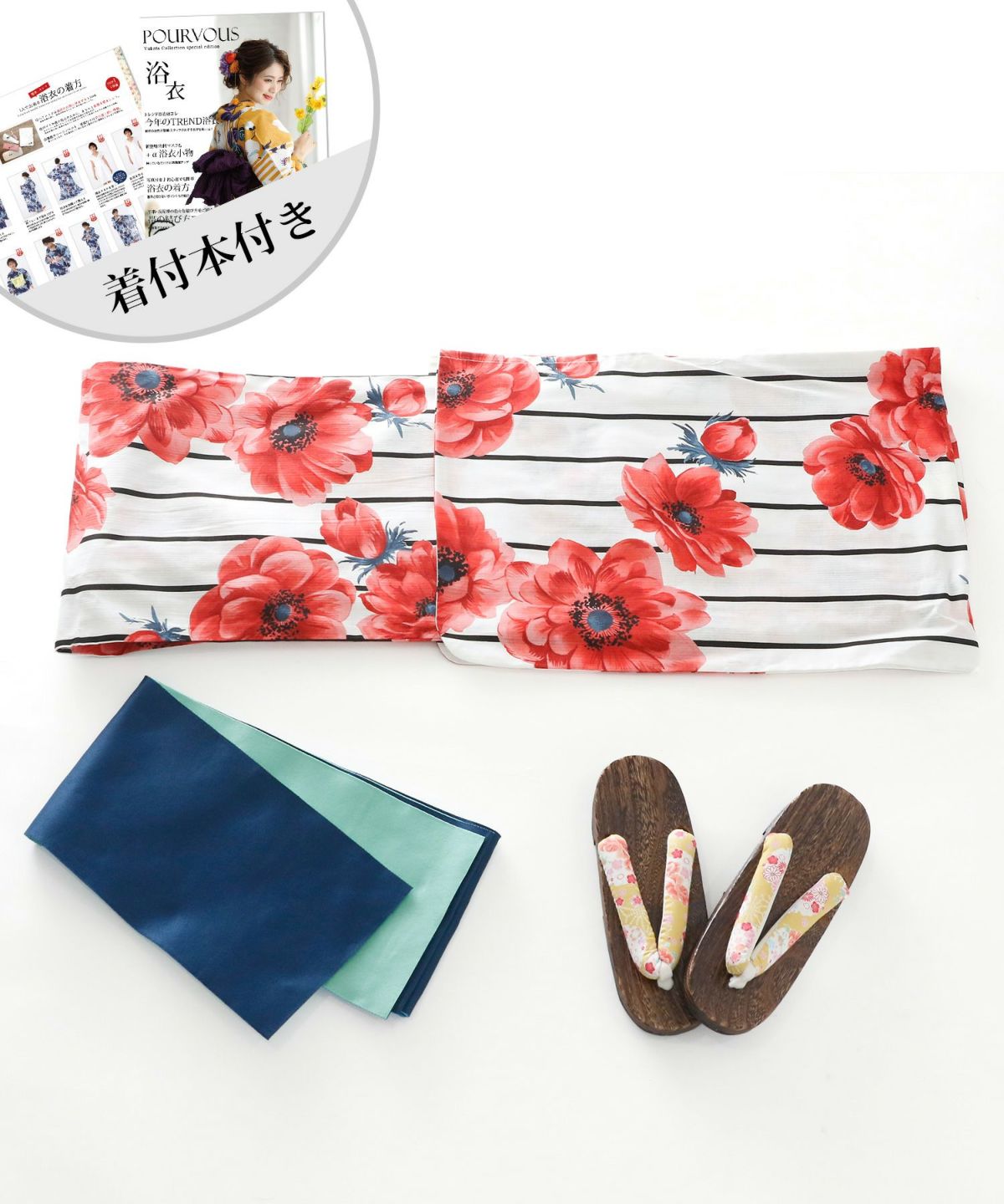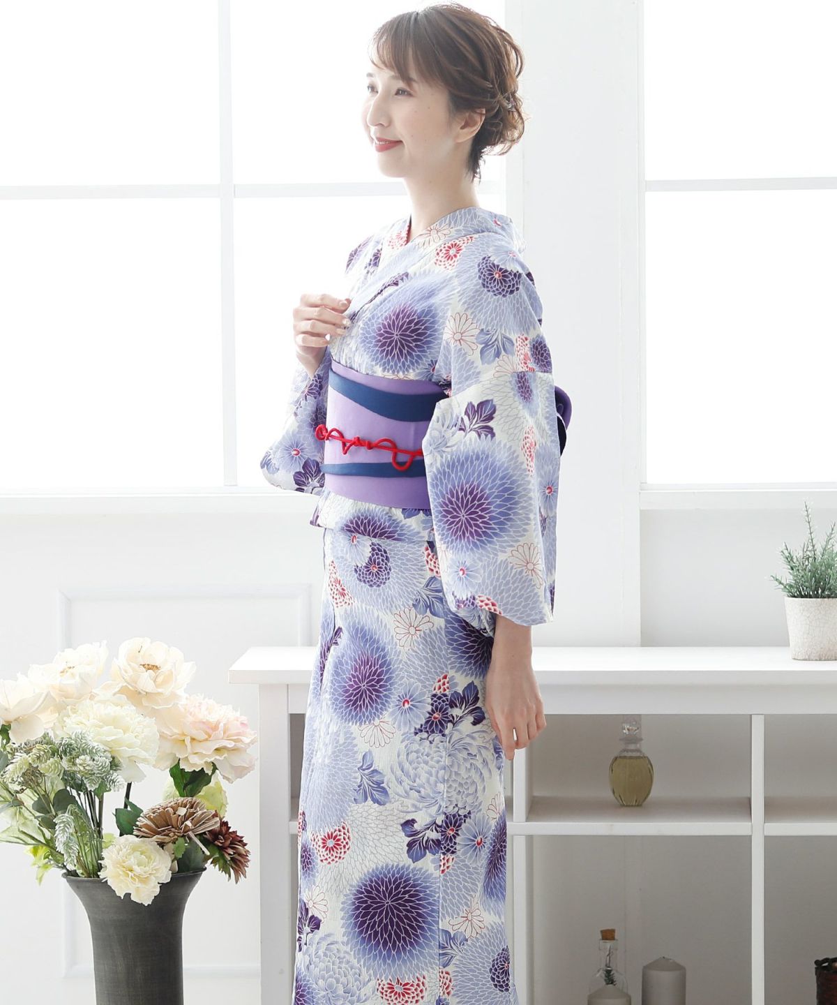 アネモネに惹かれる アネモネルージュ 浴衣4点セット(半巾帯)