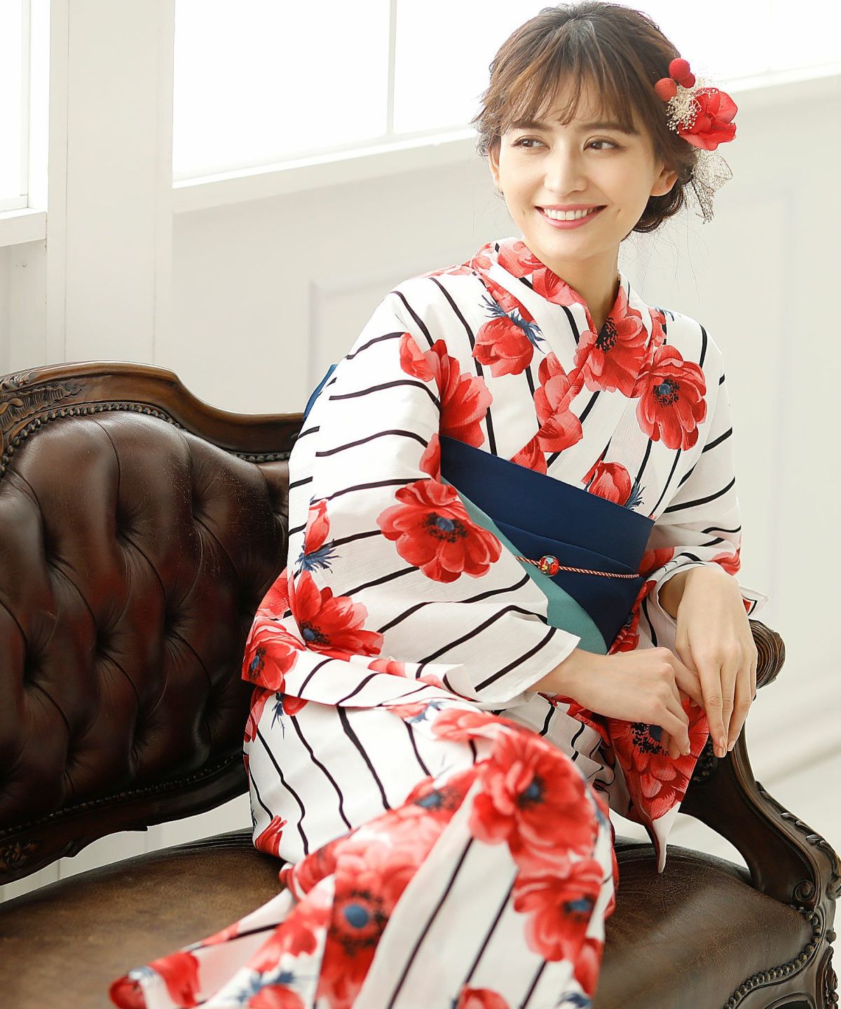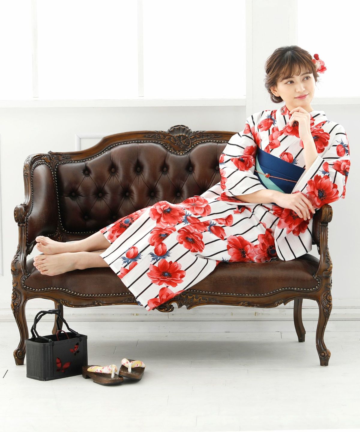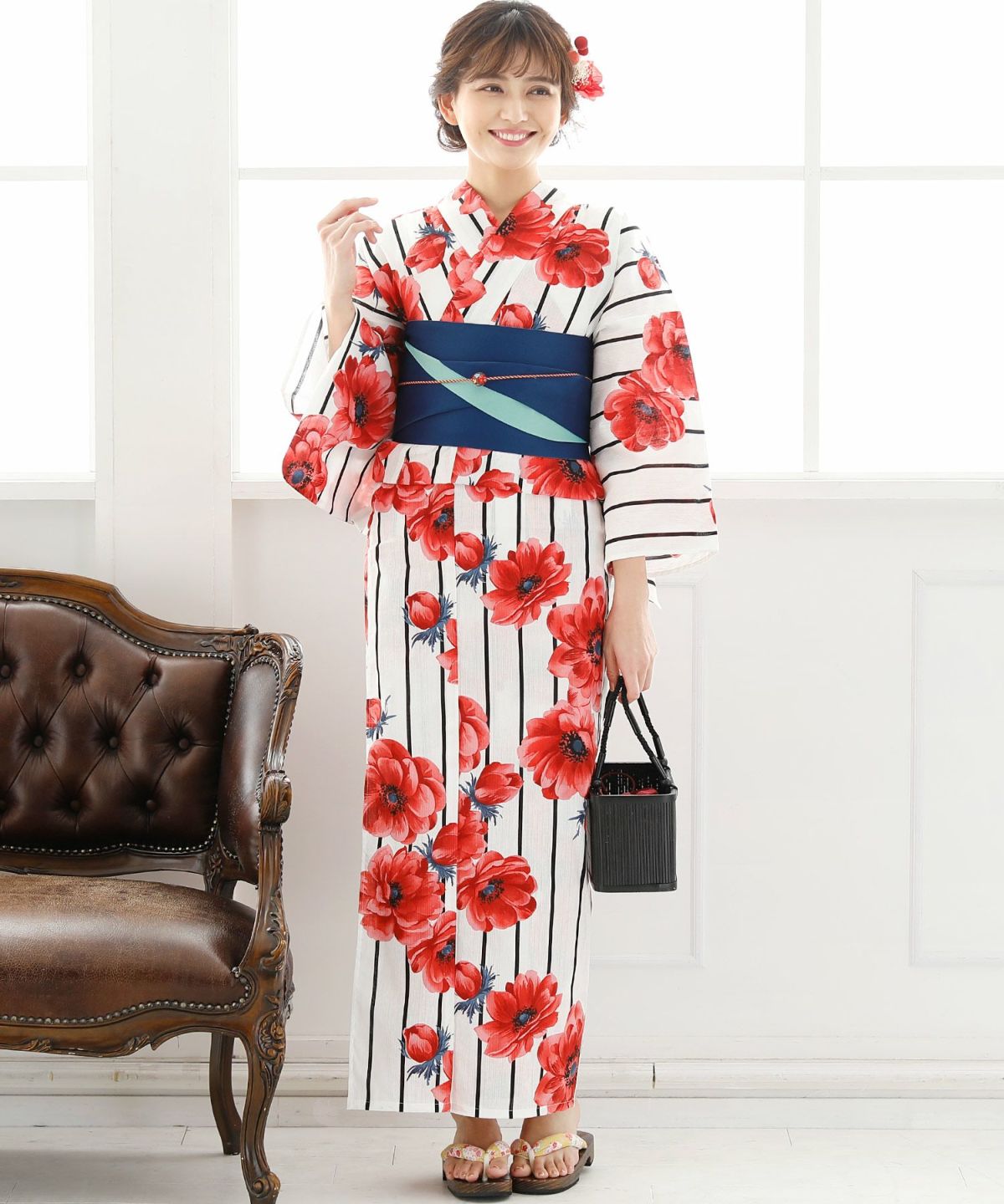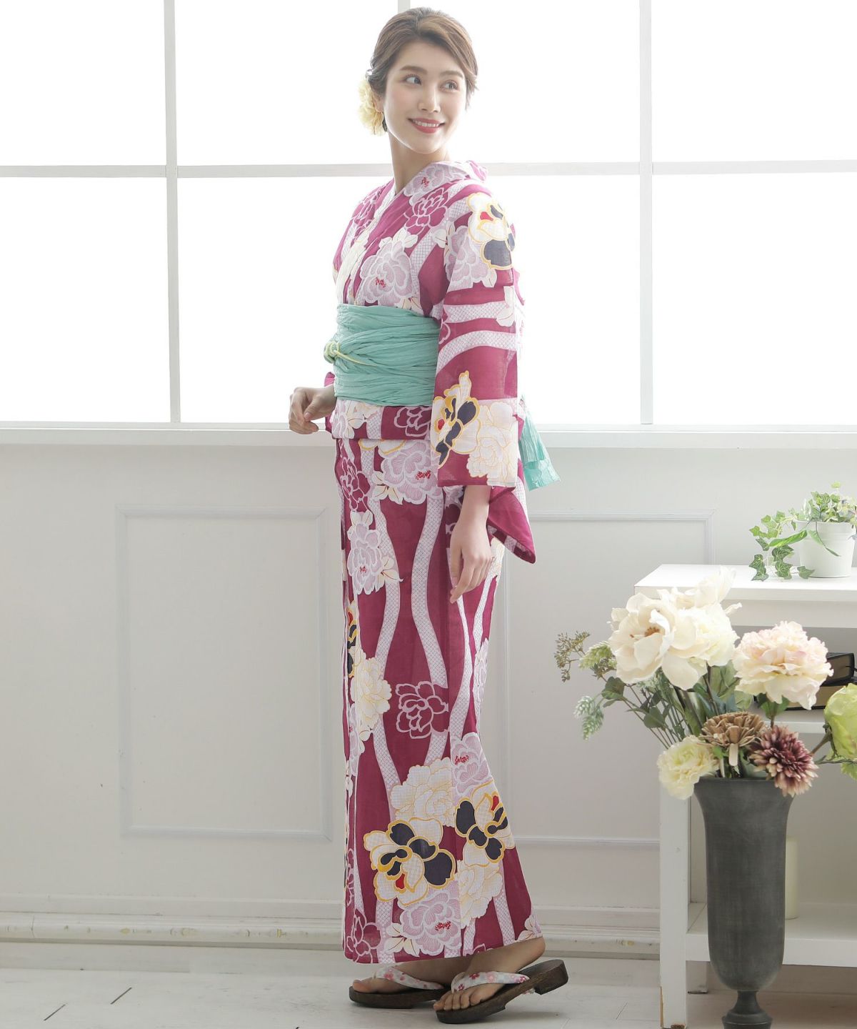 アネモネに惹かれる アネモネルージュ 浴衣4点セット(半巾帯)