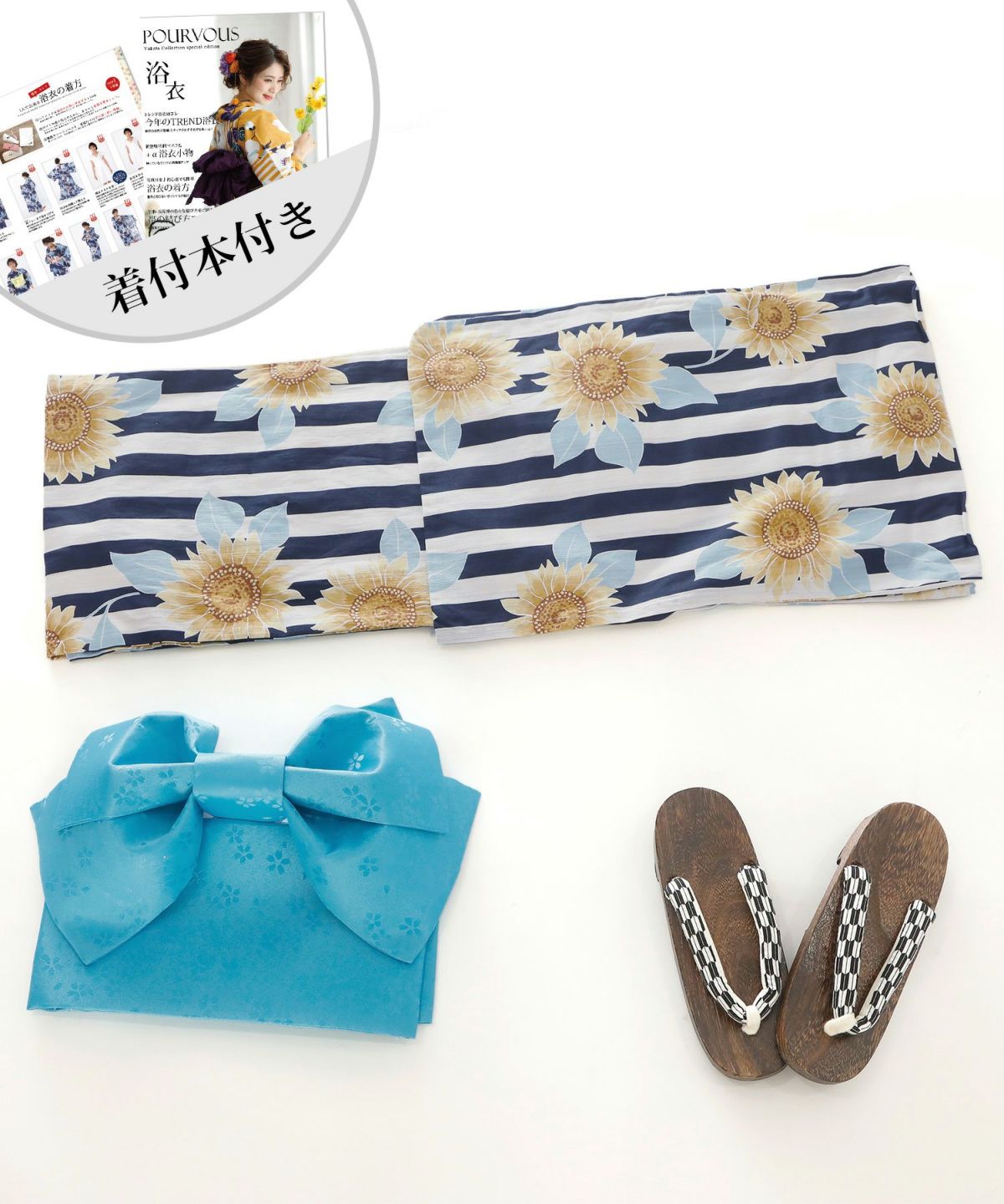 向日葵で夏の主役に 夕焼けのひまわり 浴衣4点セット(兵児帯)