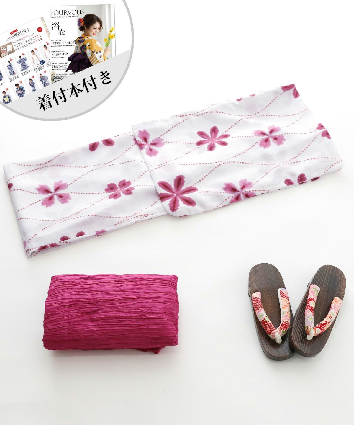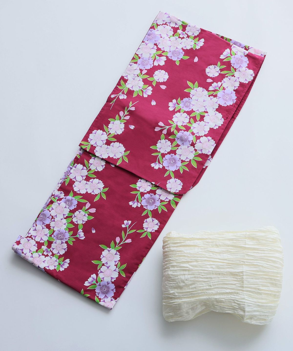 シンプル可愛い桜 桃色桜 浴衣4点セット(兵児帯)
