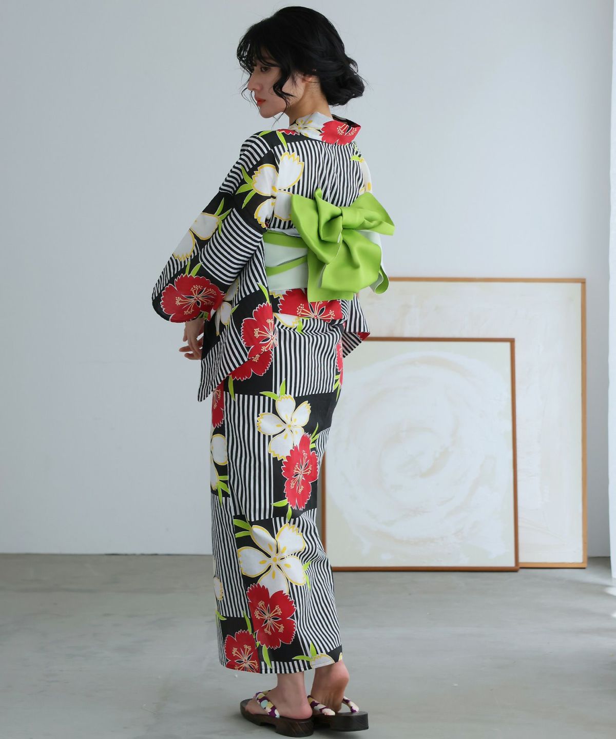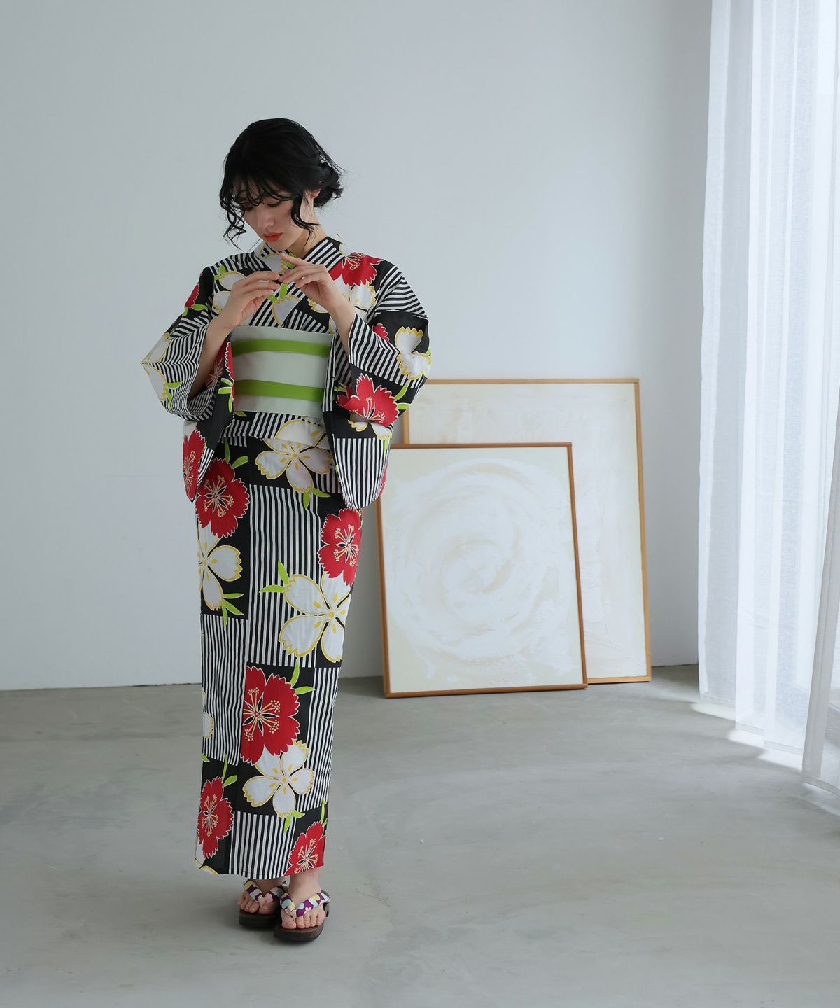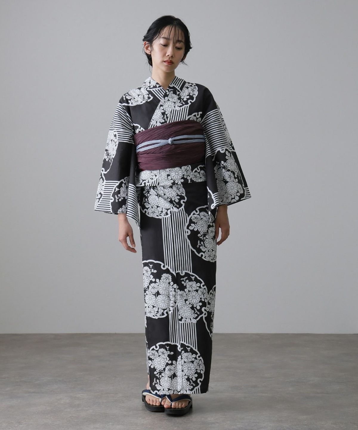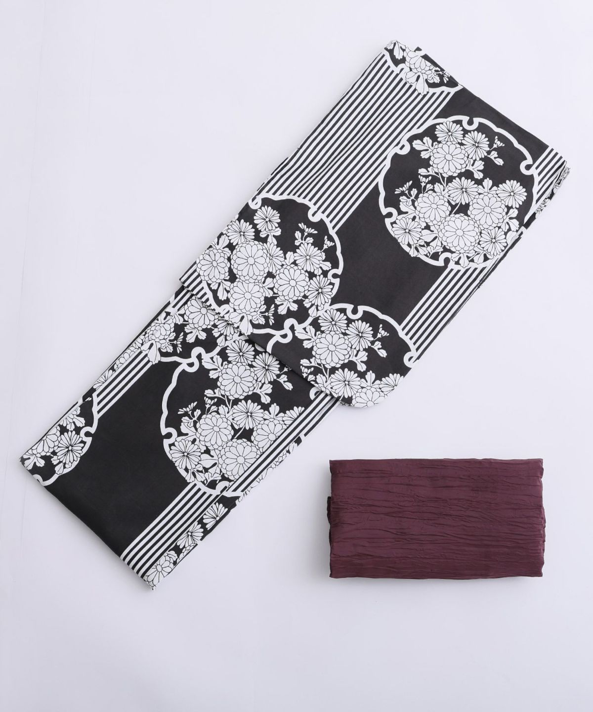 モダンストライプ×ダリアと縞模様 ダリアと縞模様 浴衣2点セット(兵児帯)